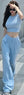 KYLTHOMASW - 2024 Summer Blue Bow Lace Up Women Loose Shirt Sets Flare Sleeve V Neck Female Crop Top A Line Short Mini Skirt Suits