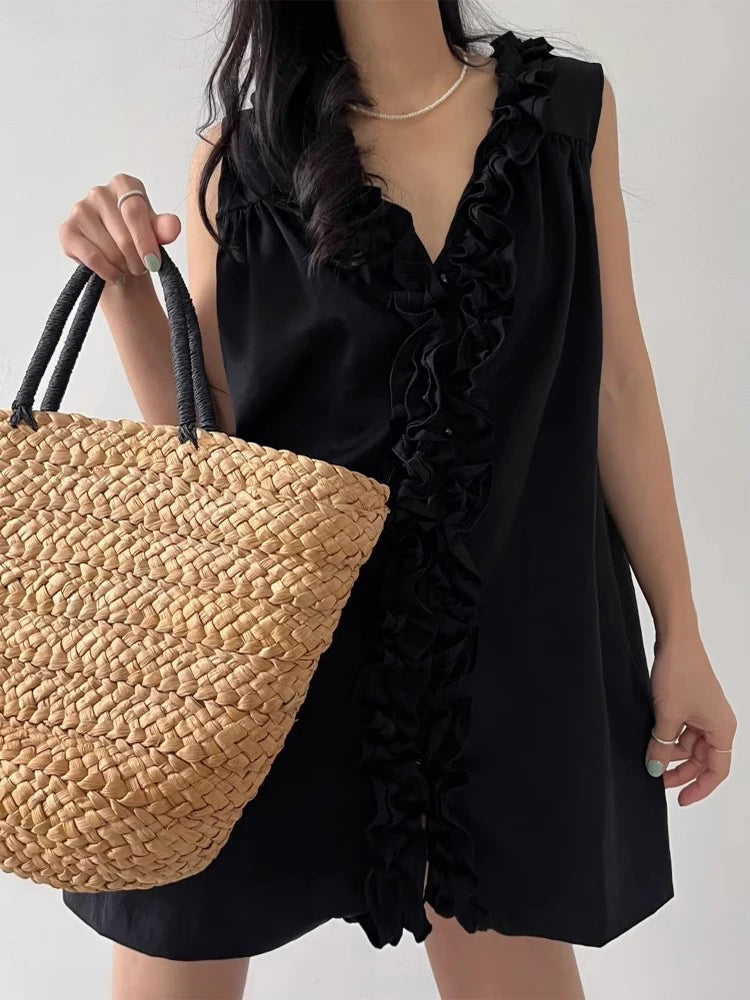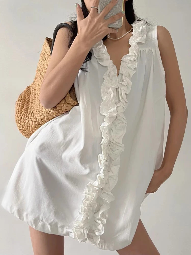 KYLETHOMASW - 2025 3D Fungus Lace Vest Shirt Women Summer New Design Niche Loose Sleeveless Top Elegant Loose Tank
