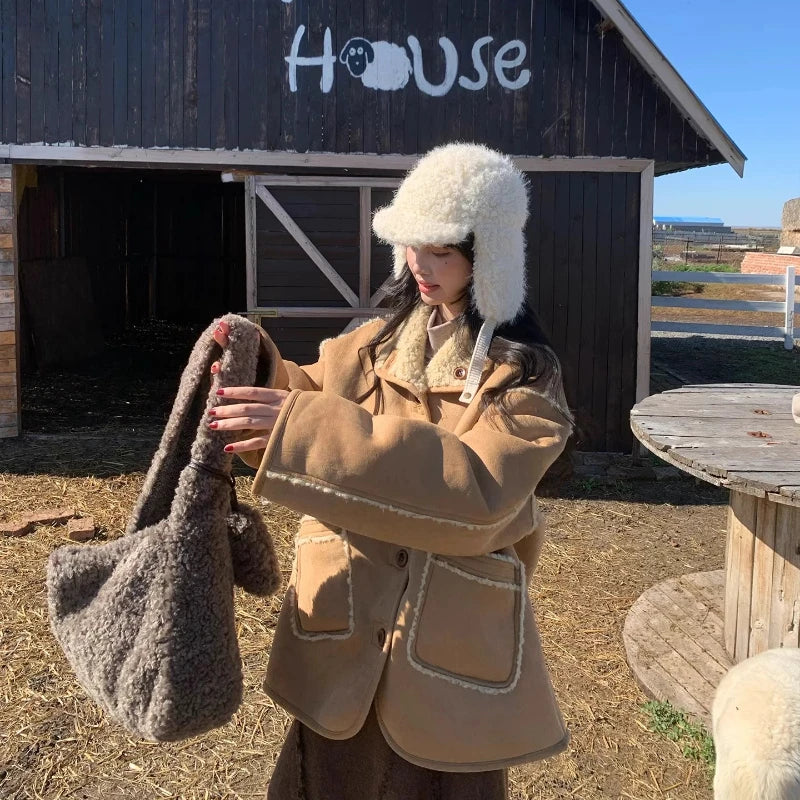KYLETHOMASW - High-capacity Kawaii Grunge Underarm Bag All Match Lamb Wool Y2k Aesthetic Shoulder Handbags Fashion Streetwear Top-Handle Bags