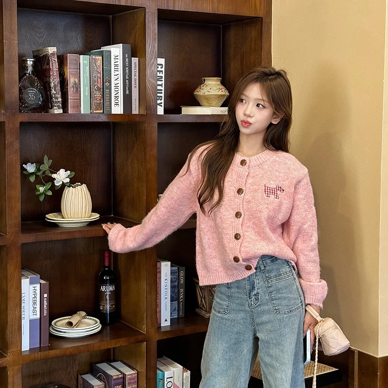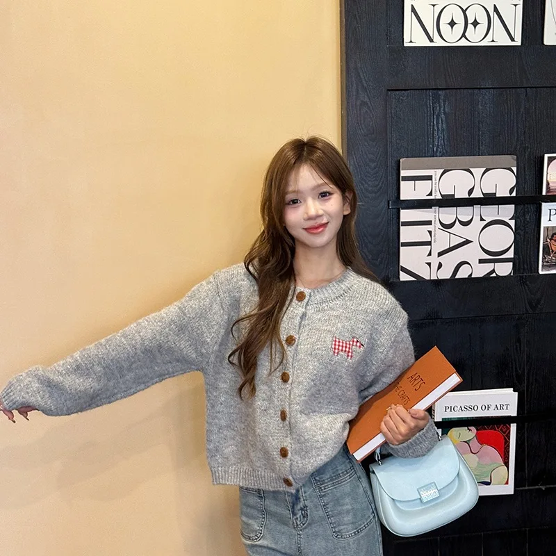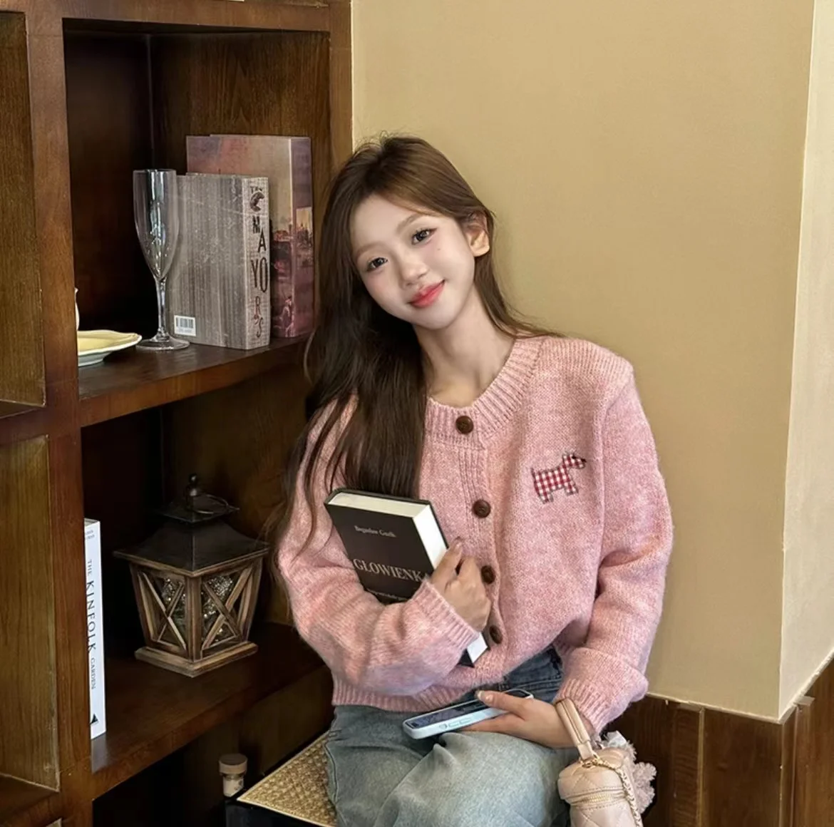 KYLETHOMASW - Korean Fashion Women Elegant Print O Neck Long Sleeve Cardigan Sweater Autumn Winter Retro Single Breasted Knitwear Tops Popular