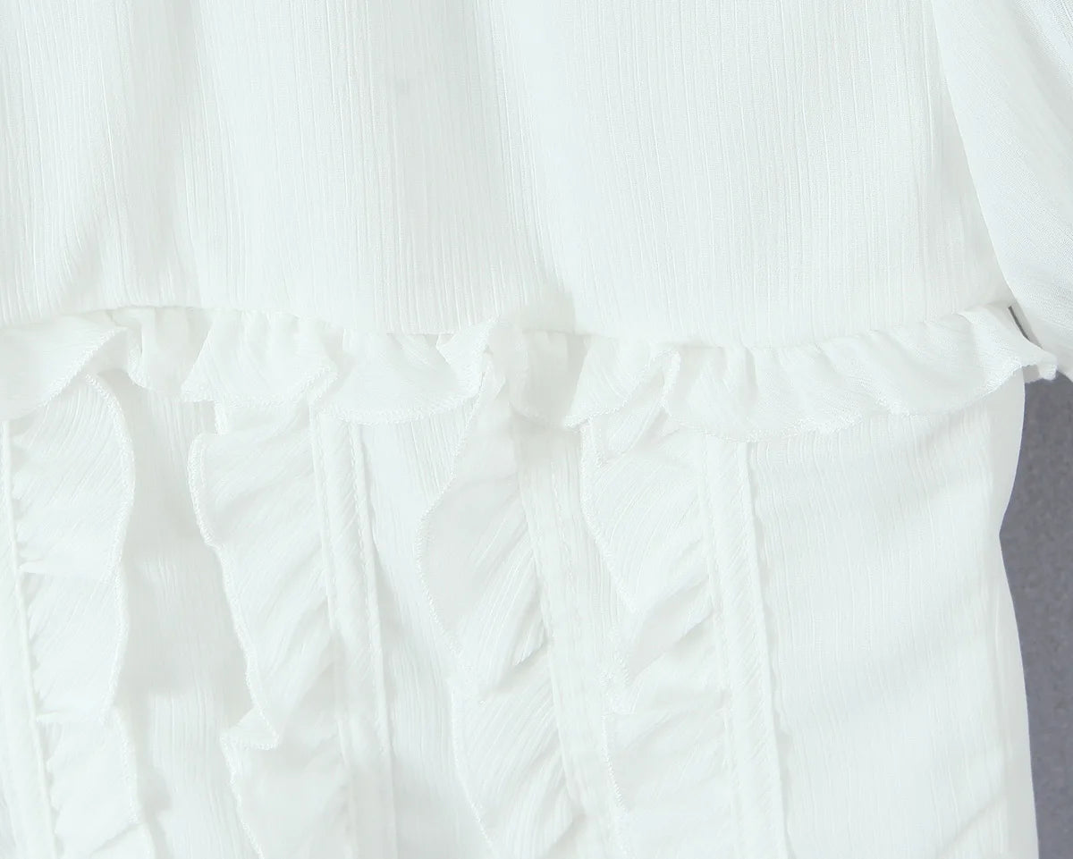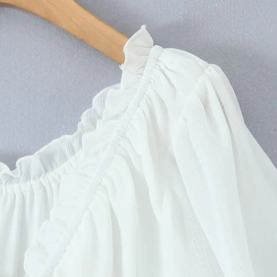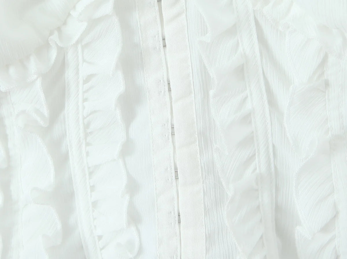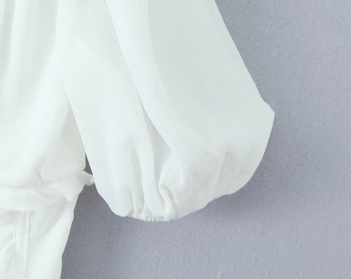 KYLETHOMASW  -  Sweet White Embroidery Hollow Out Hole Splice Lace Elastic U Collar Short Sleeve Shirt Women Center Buttons Slim Crop Tops