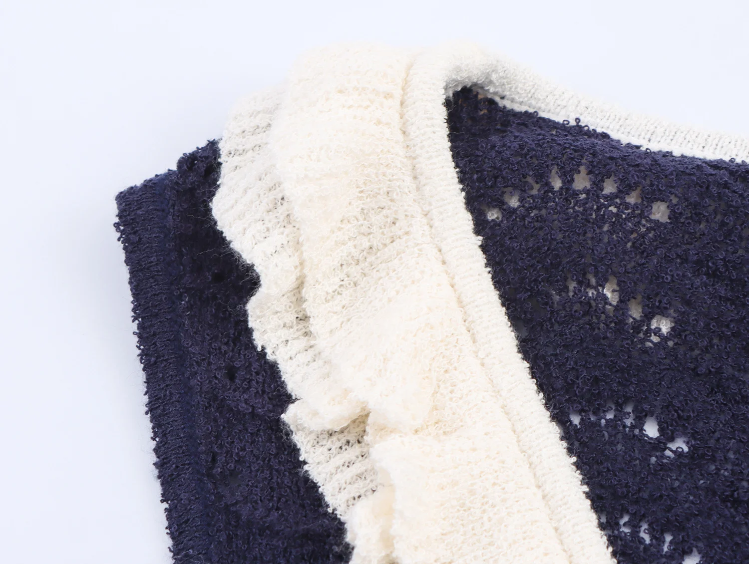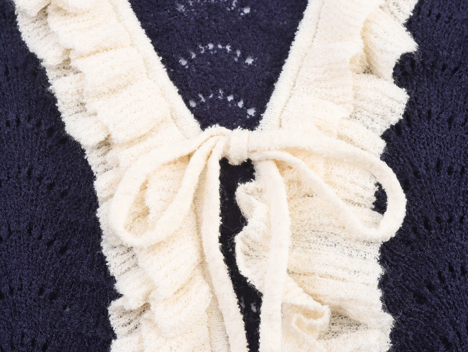 KYLETHOMASW - Women Contrasting Ruffle Knit Tank Tops Sexy V Neck Front Tie Holiday Casual Summer Crop Top