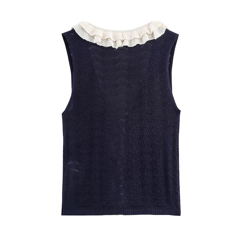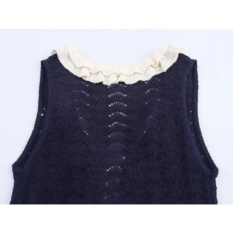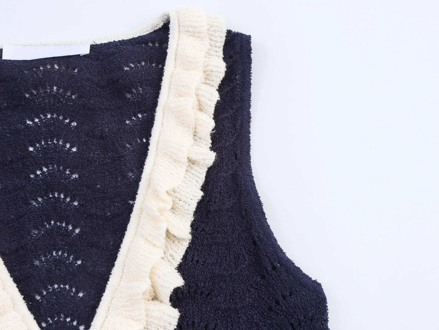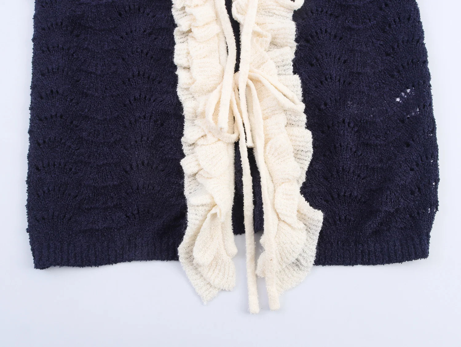 KYLETHOMASW  -  Women Contrasting Ruffle Knit Tank Tops Sexy V Neck Front Tie Holiday Casual Summer Crop Top