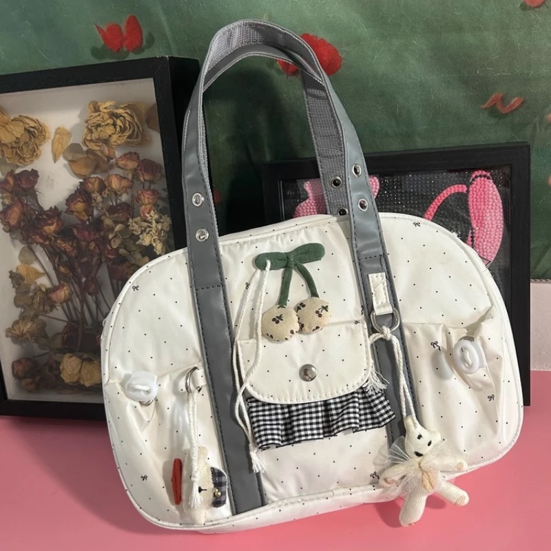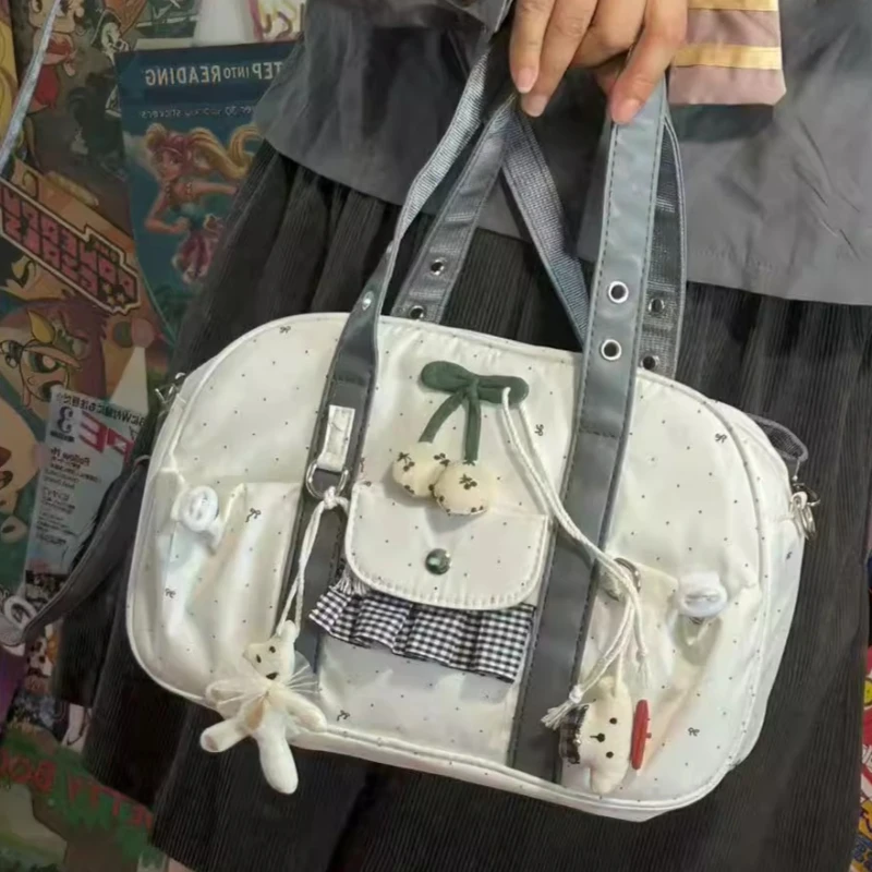 KYLETHOMASW - Y2k Aesthetic Women Kawaii Dots Top-Handle Bags Fashion Transparent Plaid Patchwork Shoulder Handbags Streetwear Trendy Ita Bag