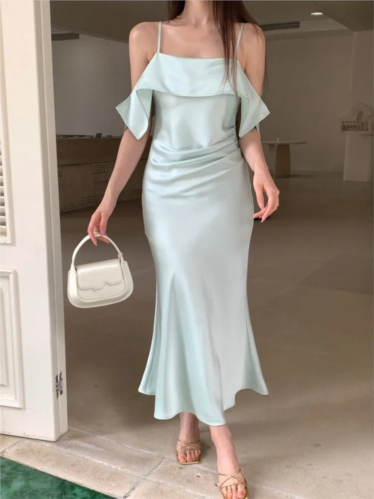 KYLETHOMASW - Summer Elegant Women Spaghetti Strap Dress Solid Y2K Sleeveless A-Line Princess Prom Wedding Evening Pirty Backless Clothes