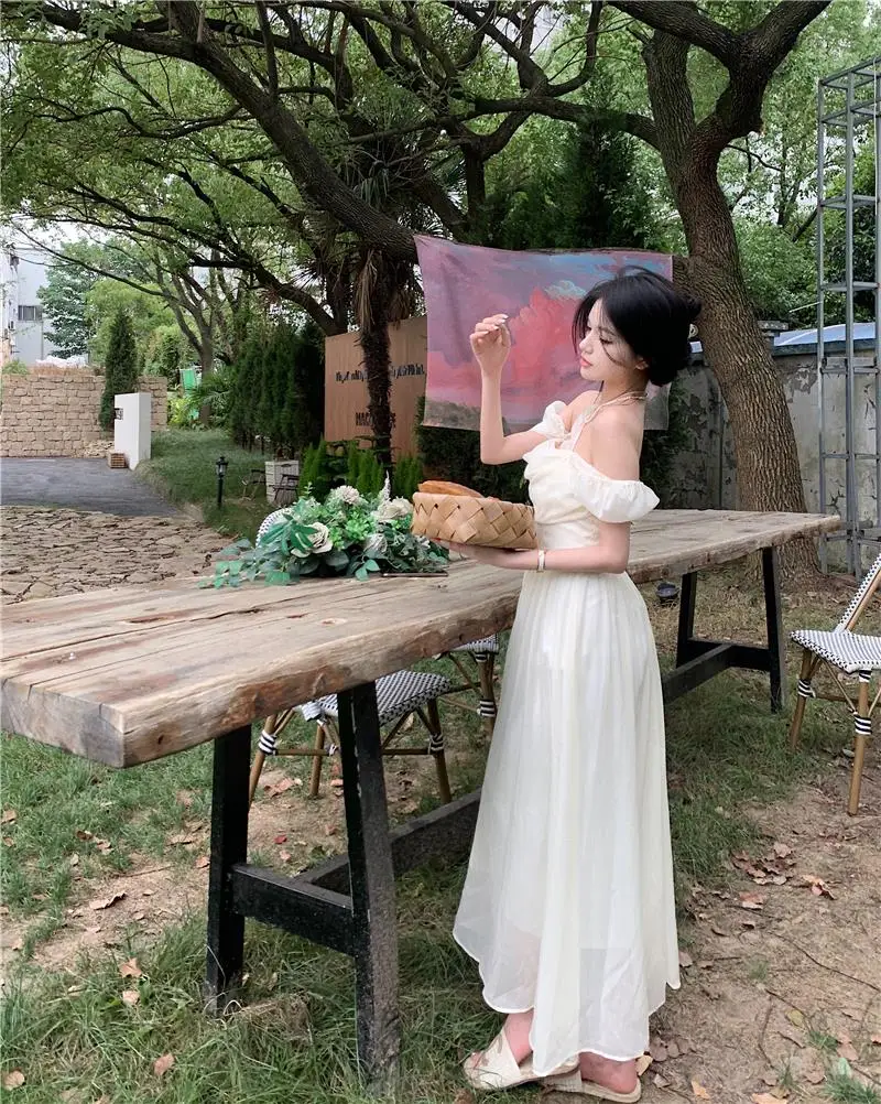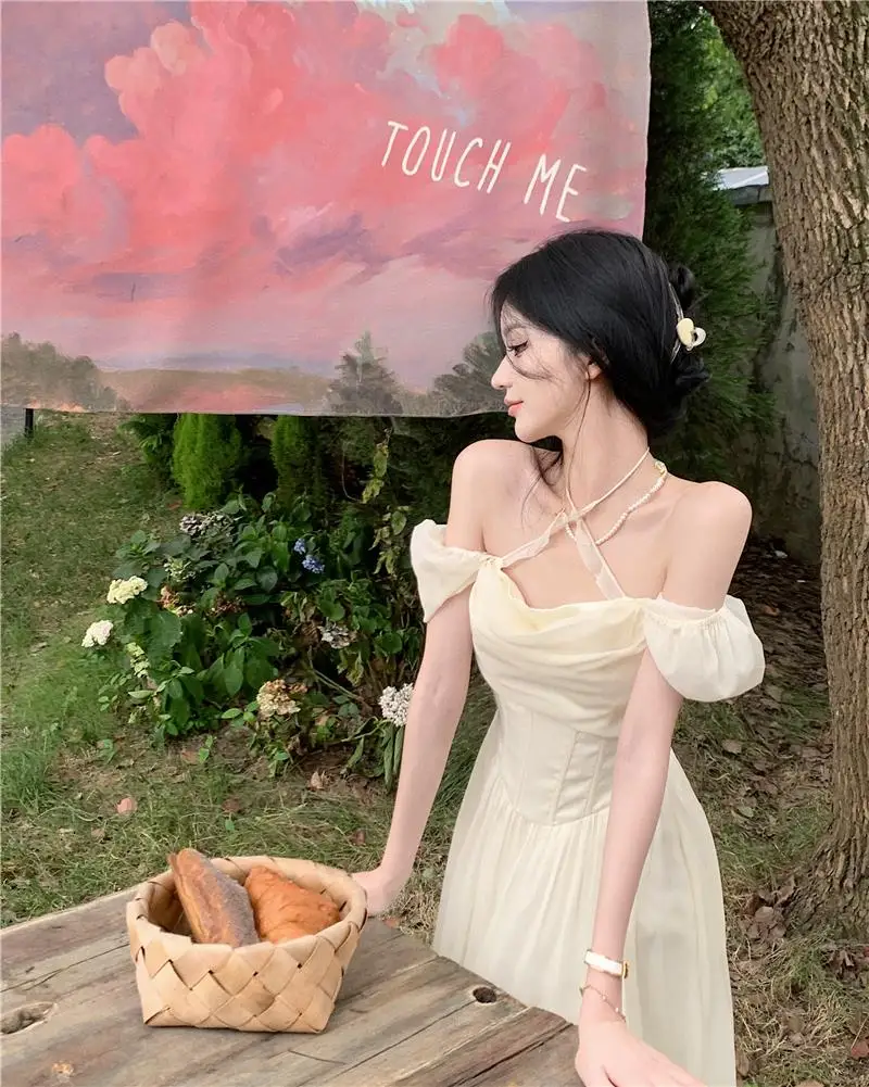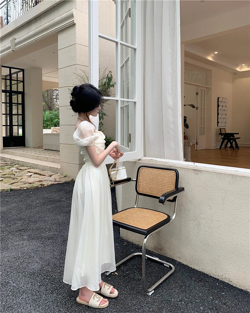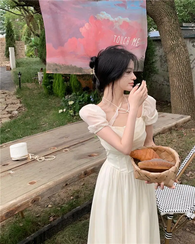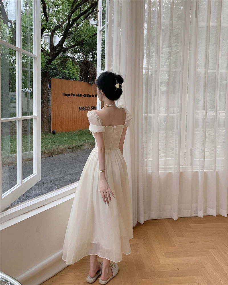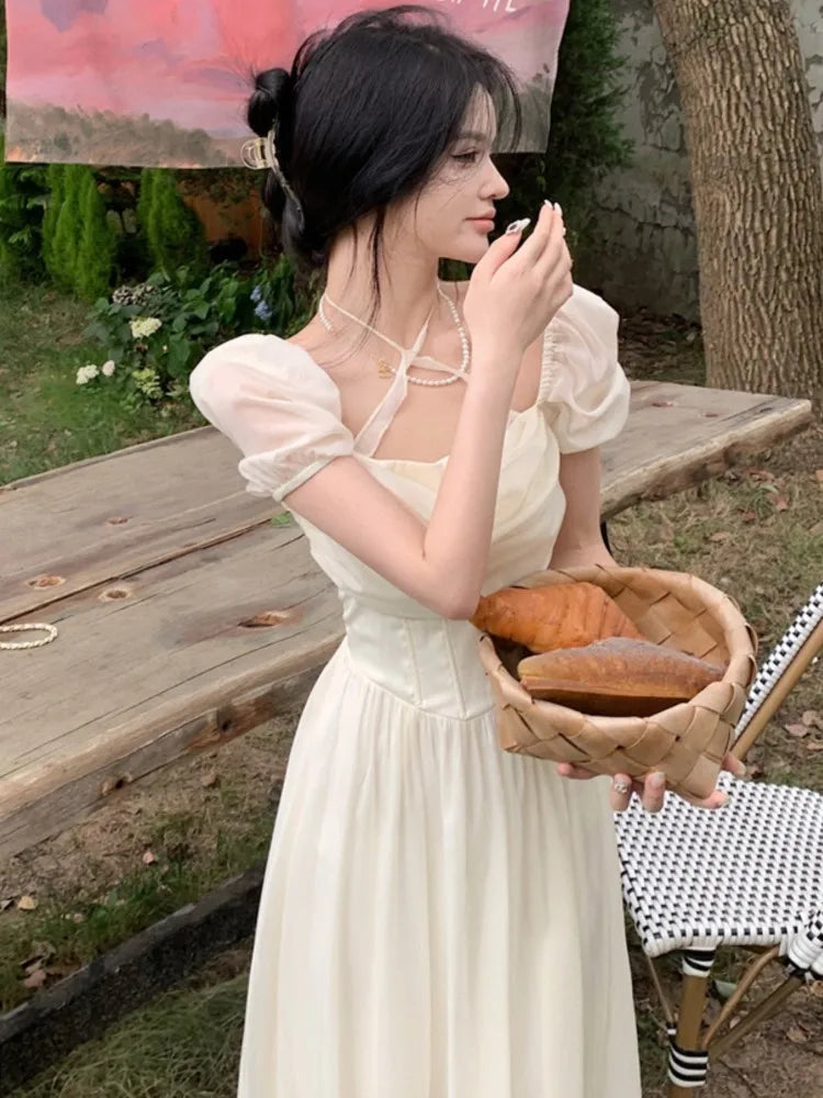 KYLETHOMASW - Summer Women Halter Midi Dress Elegant Female Chiffon Square Neck Party One Pieces Dresses French Solid New Vestidos Robe