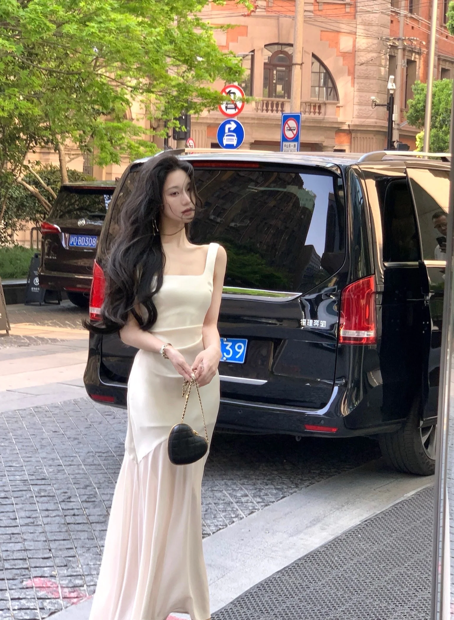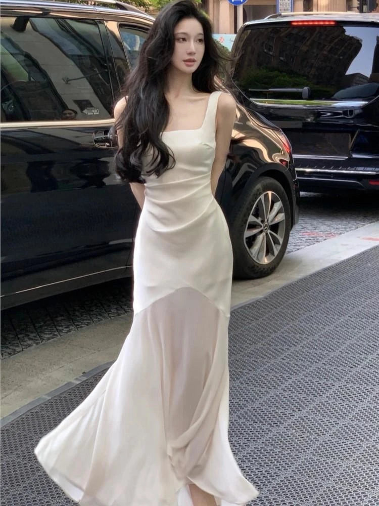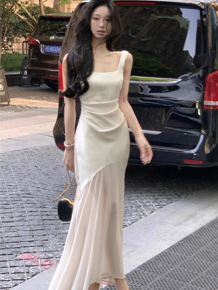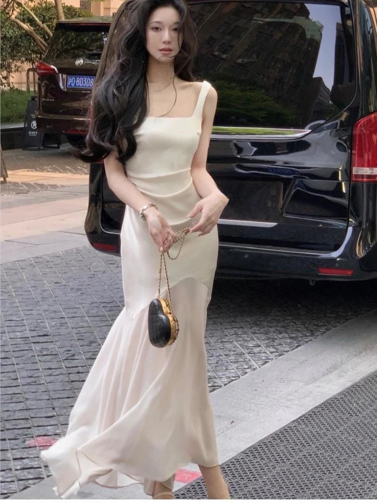 KYLETHOMASW - Women Elegant Mermaid Dress Summer New Fashion Beige Vestidos Female Bodycon Dresses Prom Evening Party Fashion Clothing