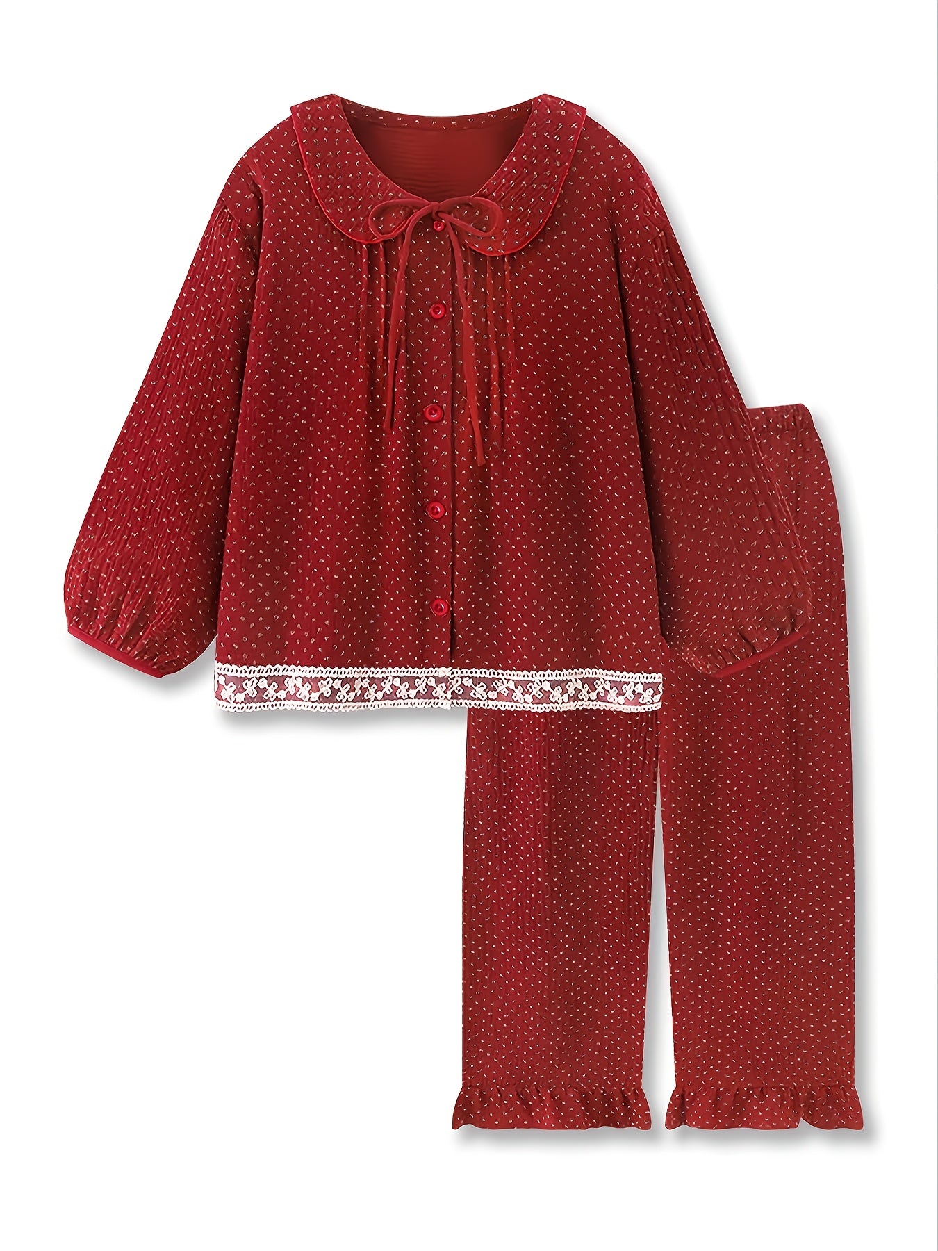 KYLETHOMASW - Women'S Preppy Style Polyester Pajama Set with Contrast Lace Detail, Lapel Collar, Ditsy Floral Pattern, Elastic 5% Comfort Fit, Woven 120gsm Fabric, Spring/Fall Sleepwear