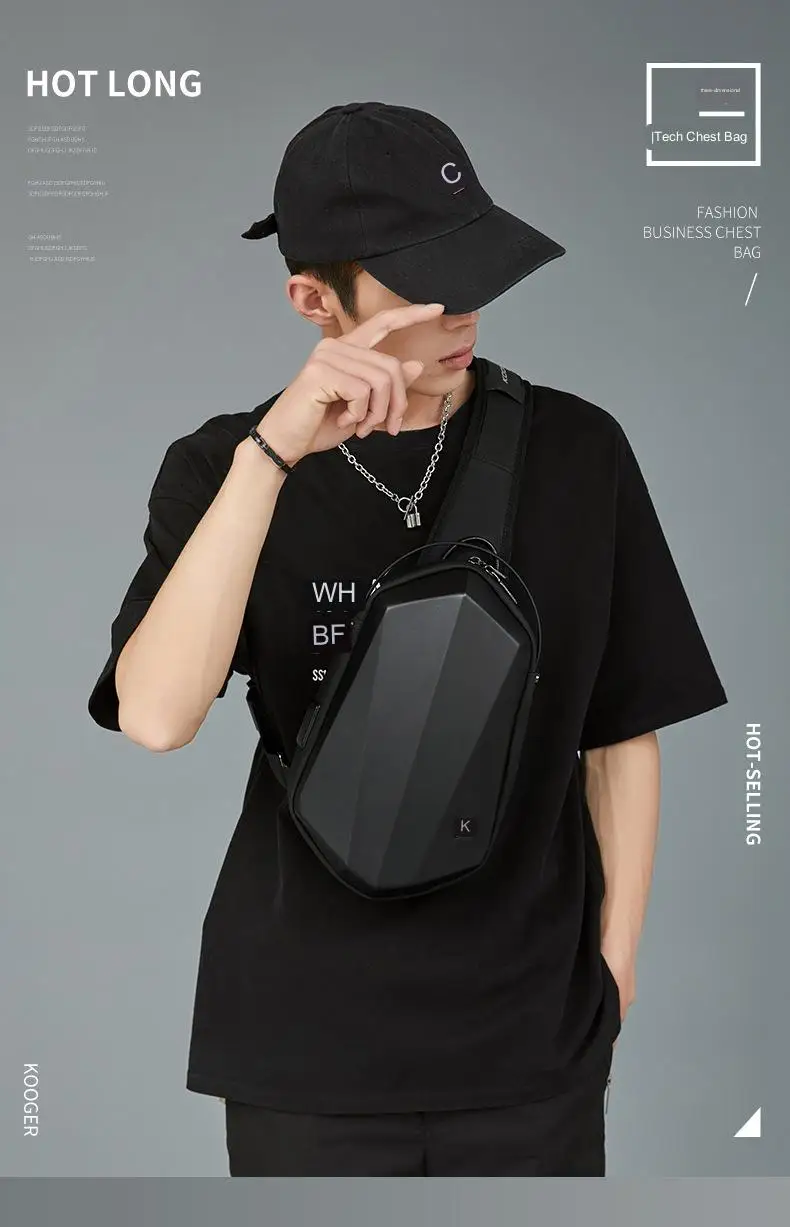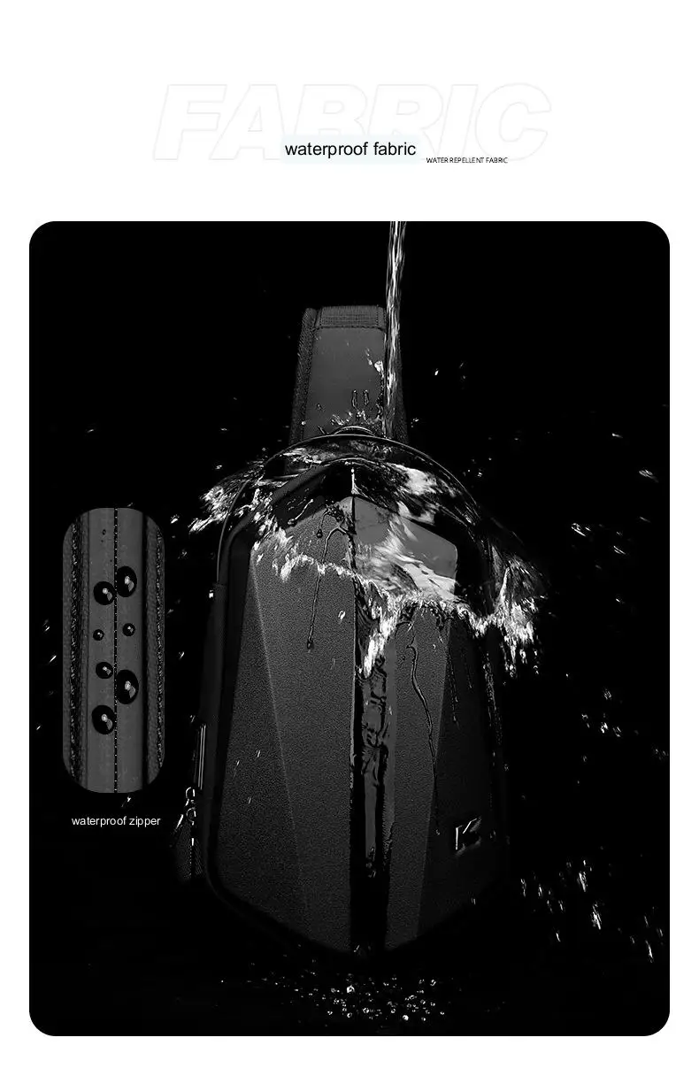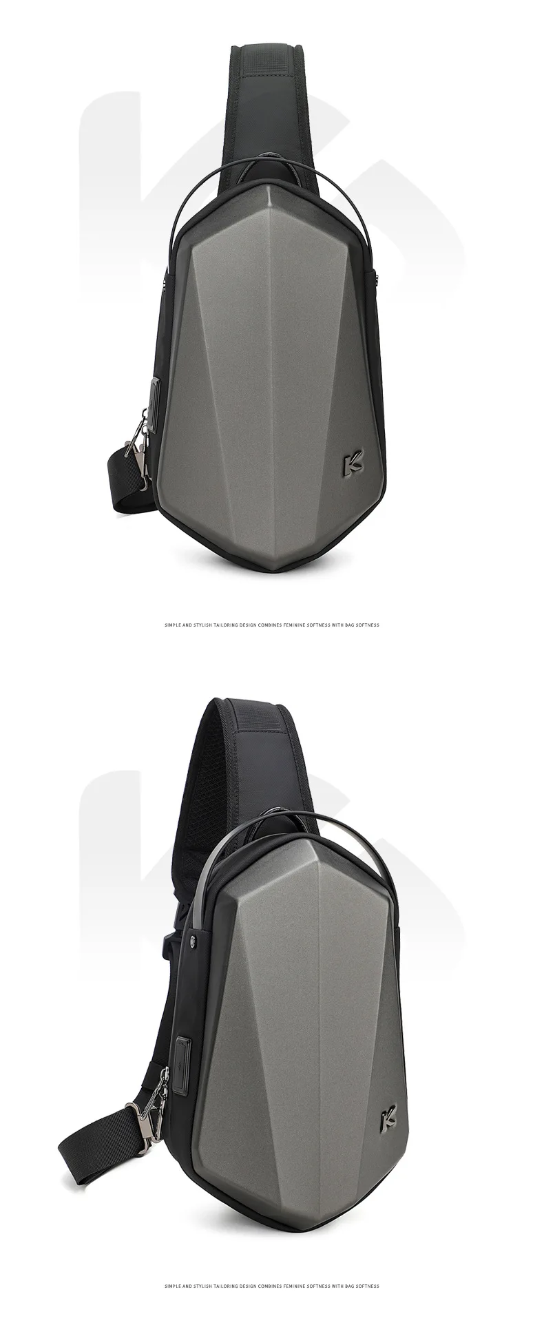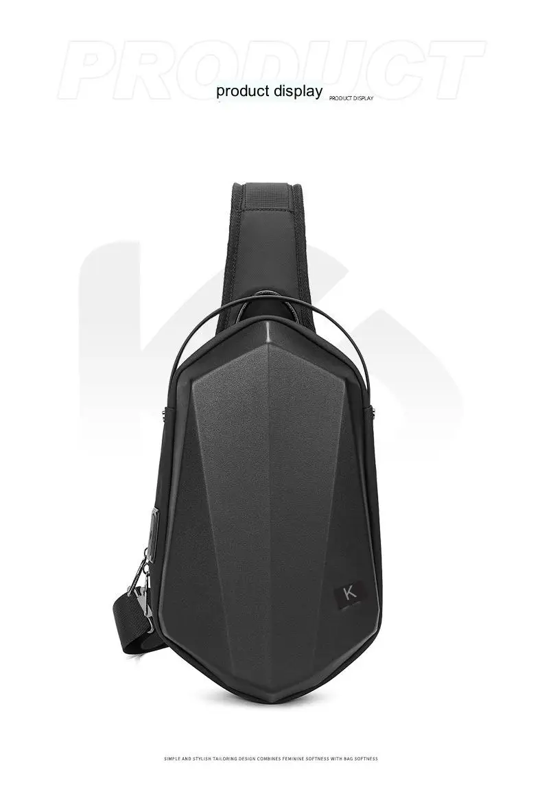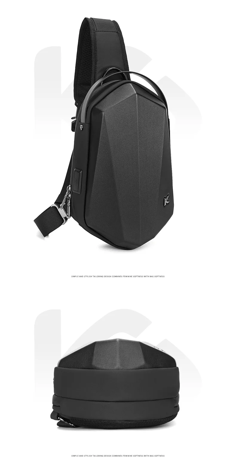 Kylethomasw Hard Shell EVA Men's Bag Shoulder Bag Anti-theft Waterproof Male Crossbody Bag Casual Short Trip Chest Pack USB Charging