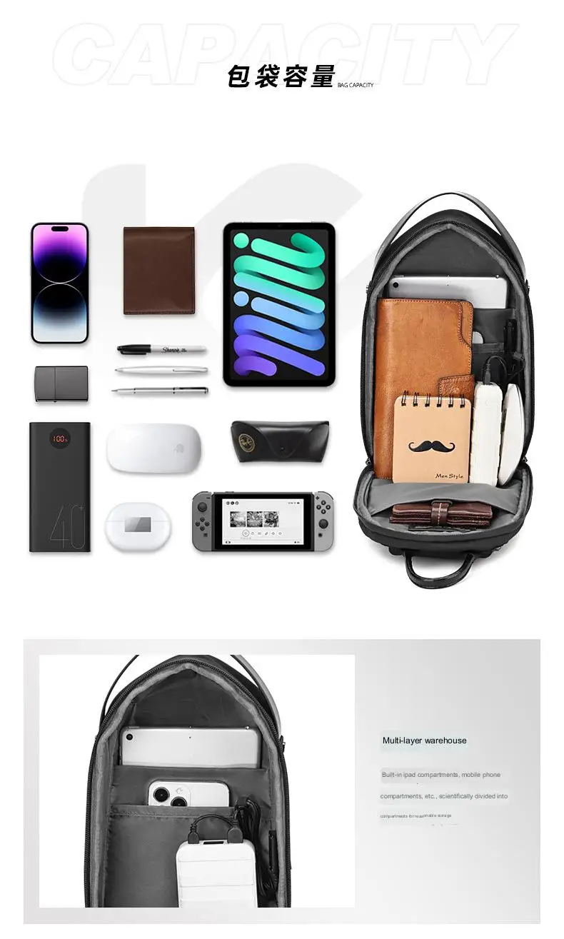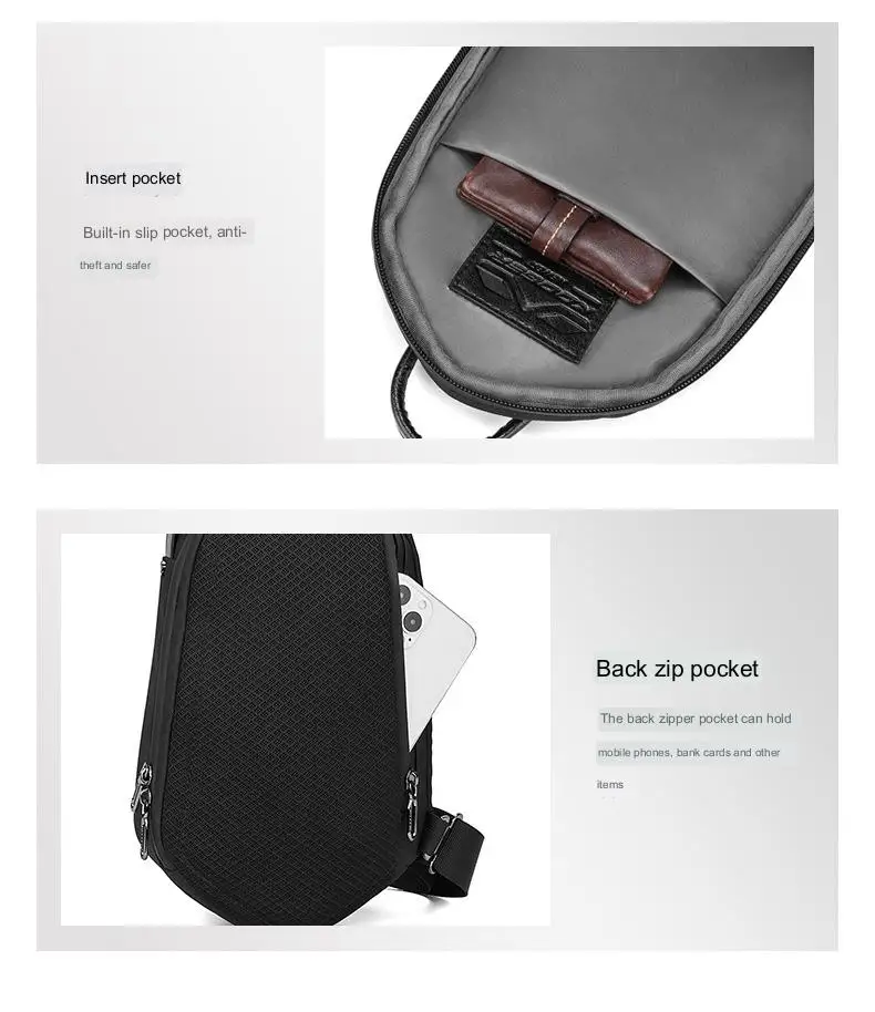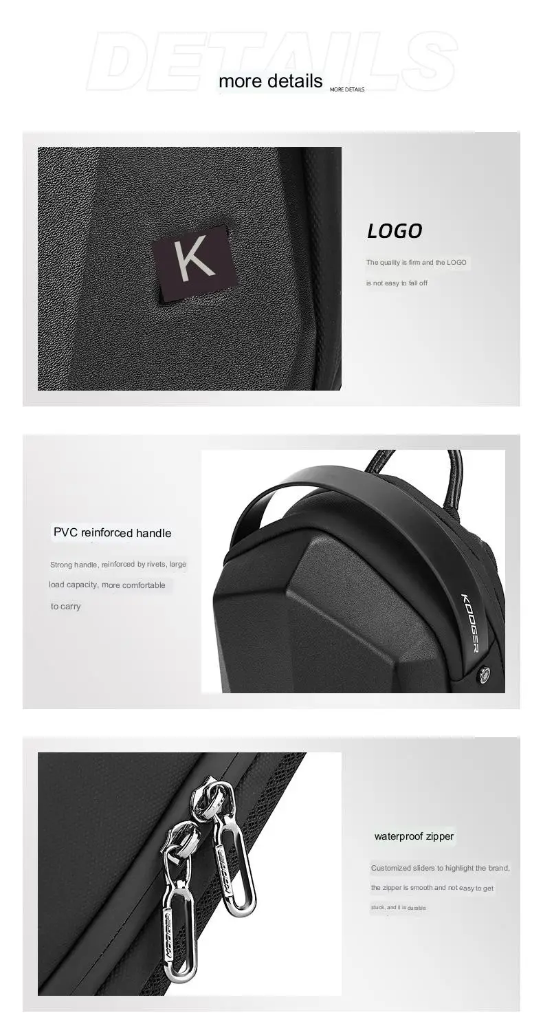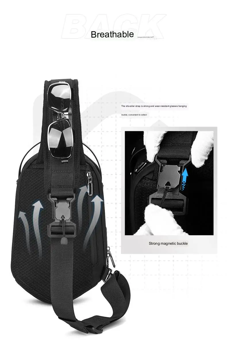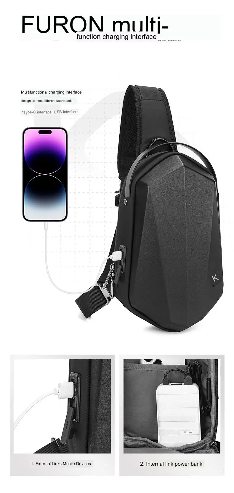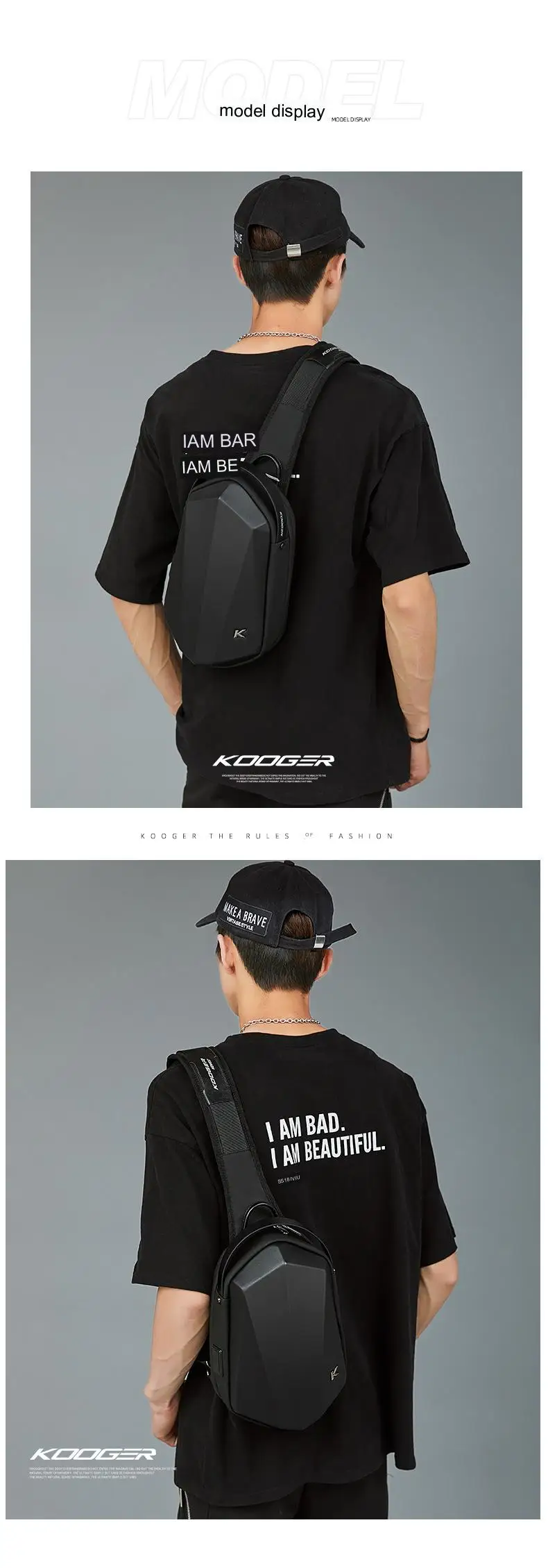 Kylethomasw Hard Shell EVA Men's Bag Shoulder Bag Anti-theft Waterproof Male Crossbody Bag Casual Short Trip Chest Pack USB Charging