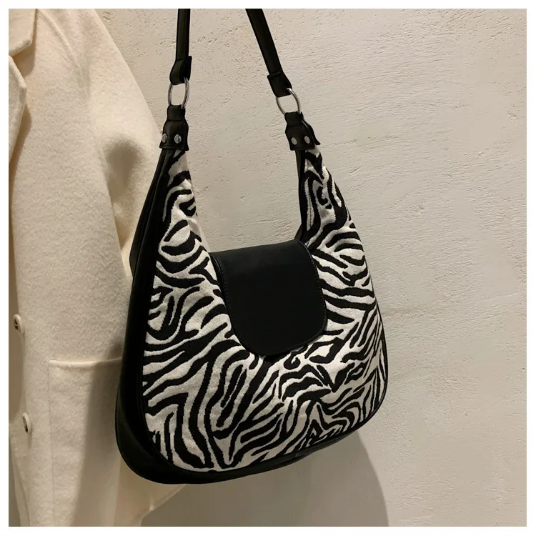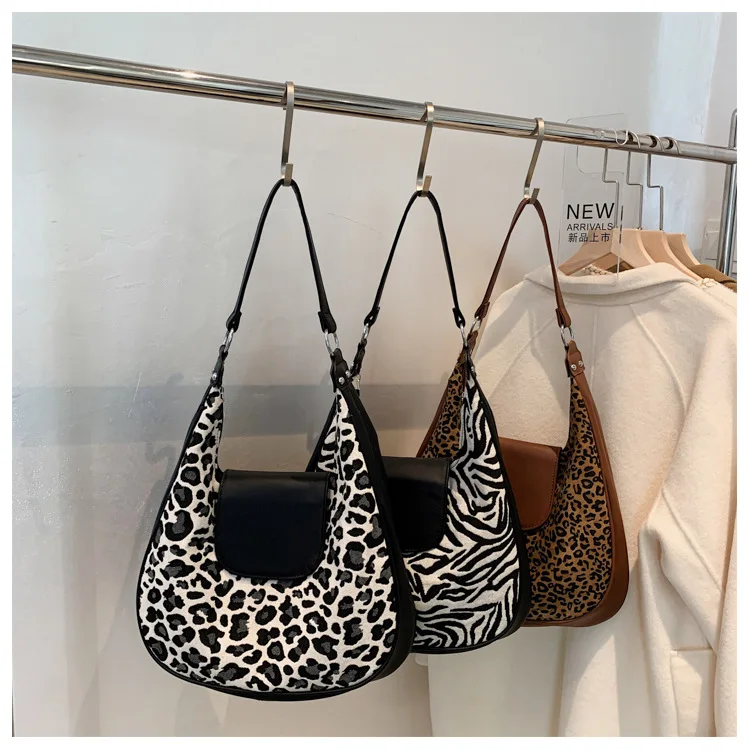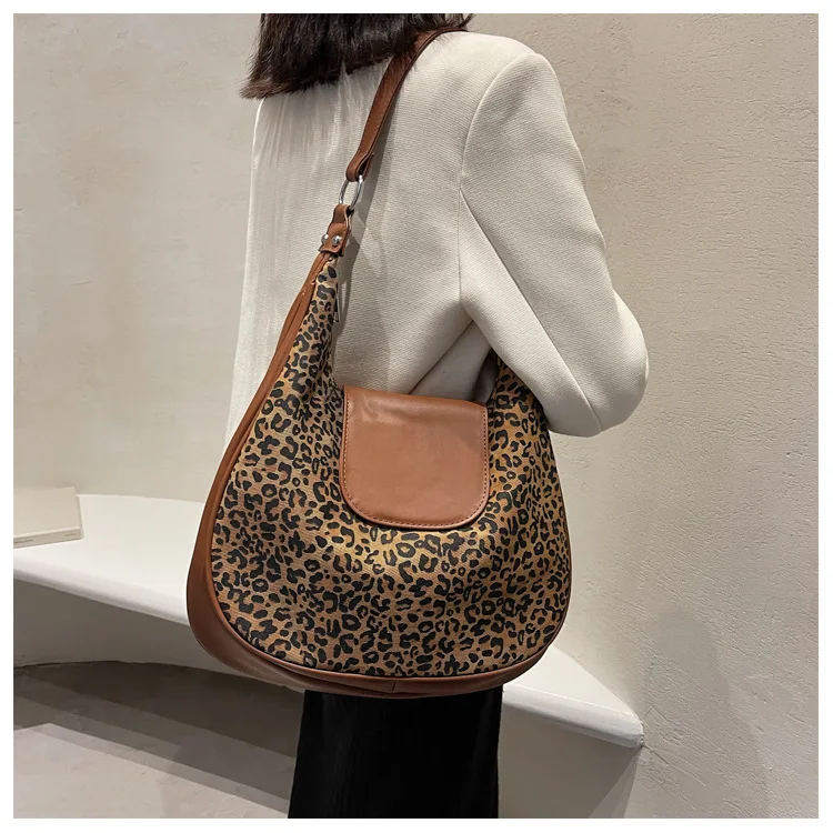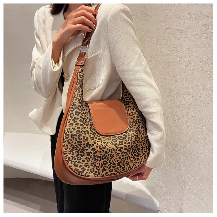 Kylethomasw Retro Leopard Print Handbag Half Moon Shoulder Canvas Casual Women's Crossbody Bag Women's Travel Shopping Messenger Bag