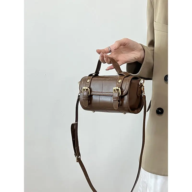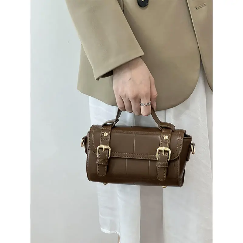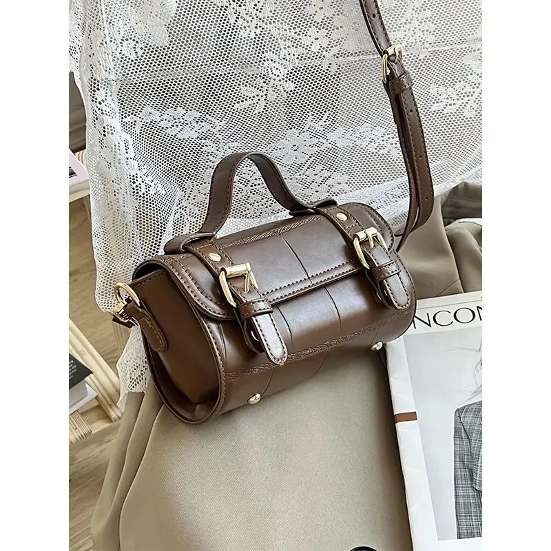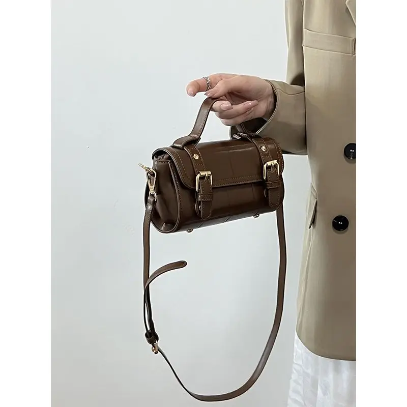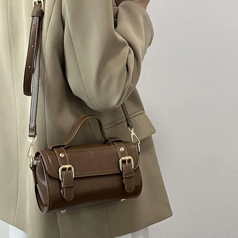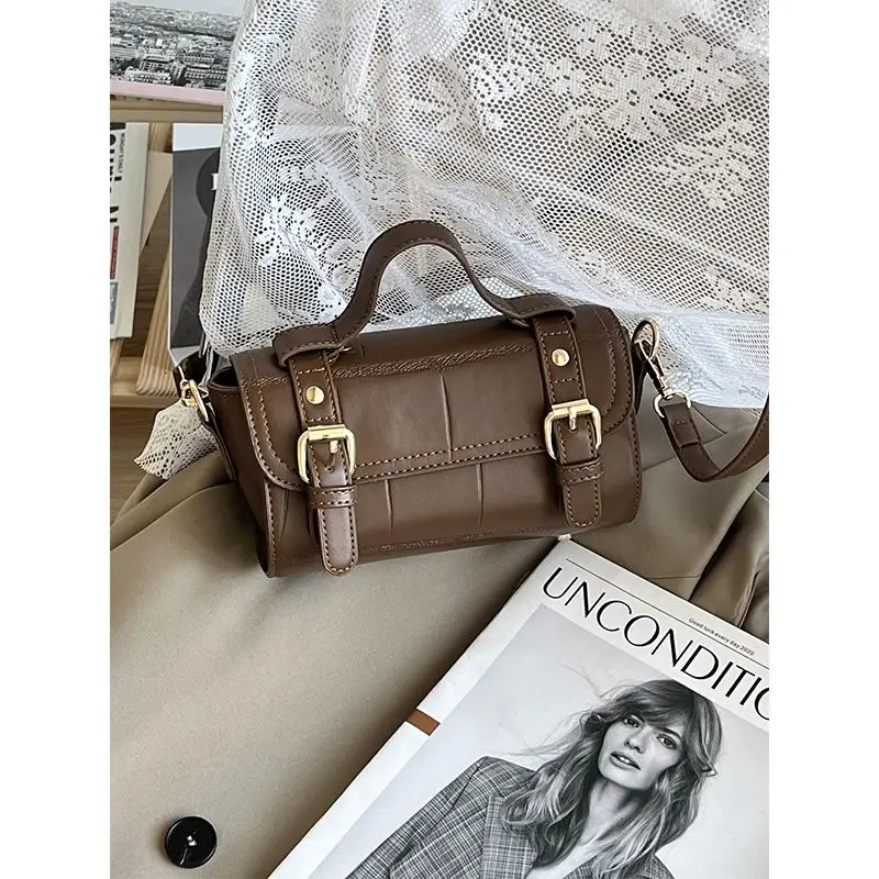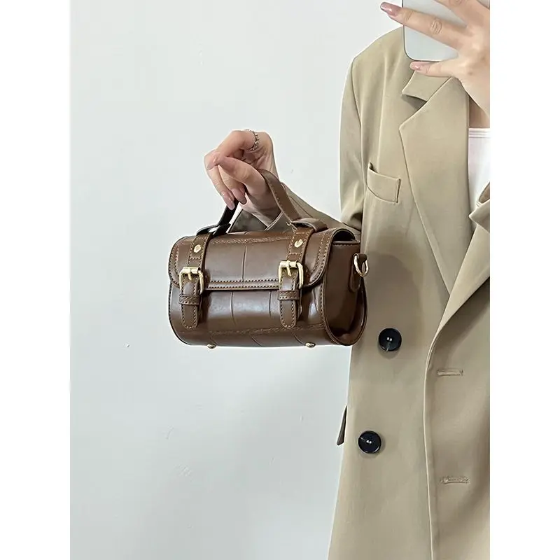 Kylethomasw Vintage Brown Messenger Bag Women Autumn Retro Leather Chic Handle Mini Bag Female Elegance Casual Crossbody Bags Purse
