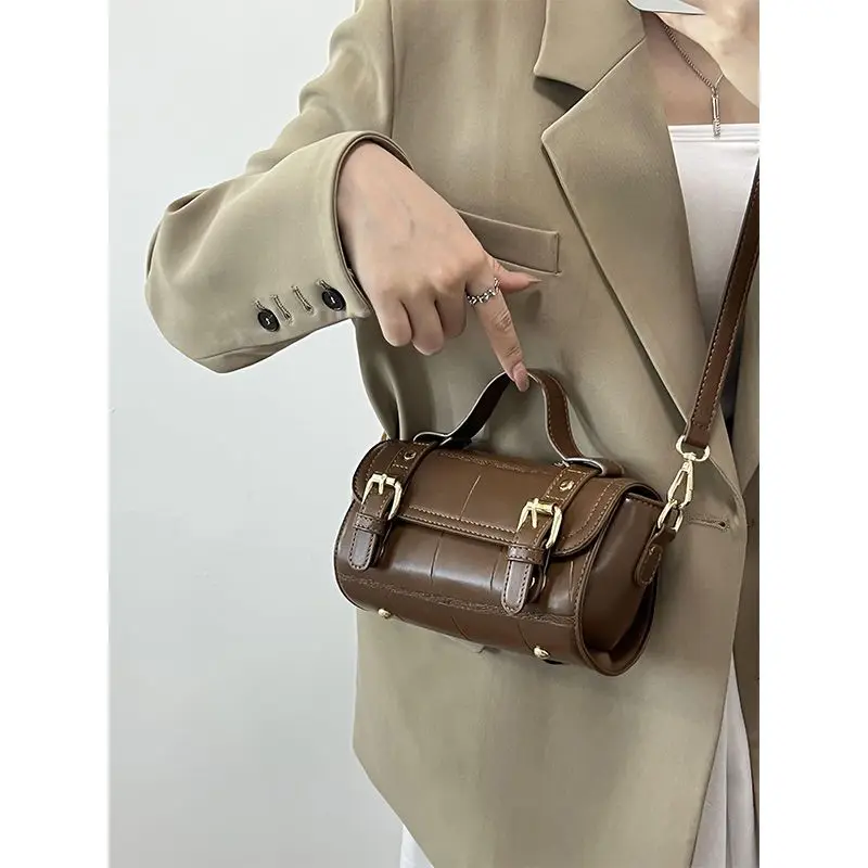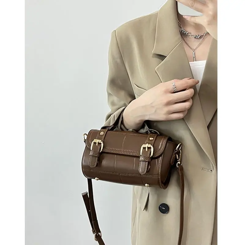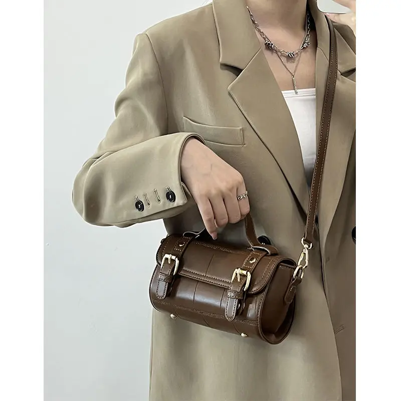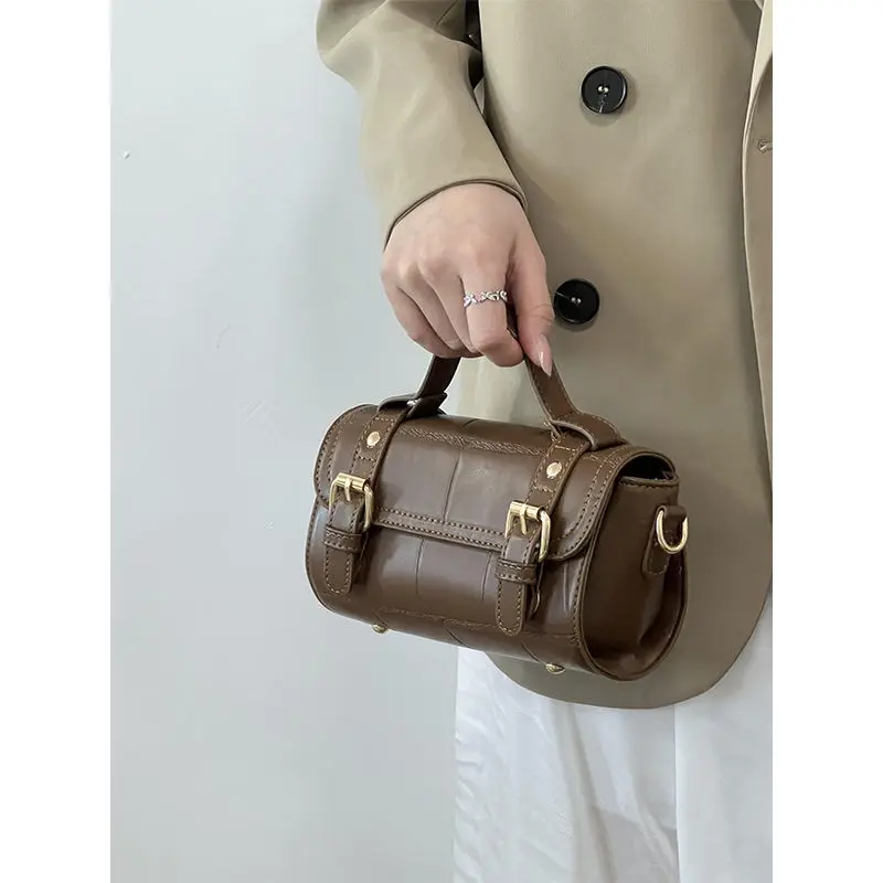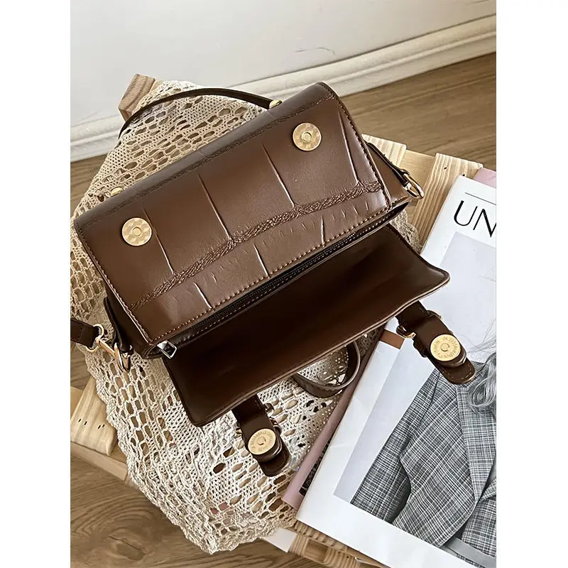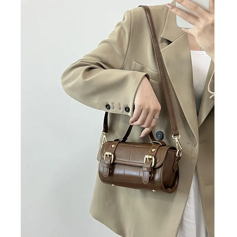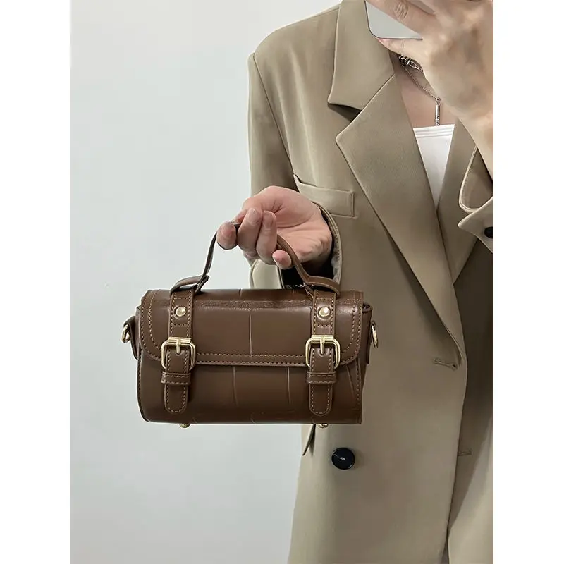 Kylethomasw Vintage Brown Messenger Bag Women Autumn Retro Leather Chic Handle Mini Bag Female Elegance Casual Crossbody Bags Purse