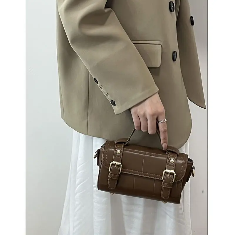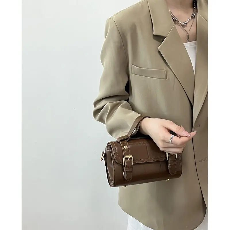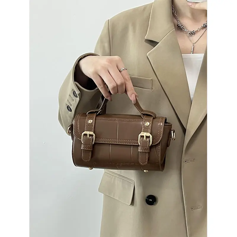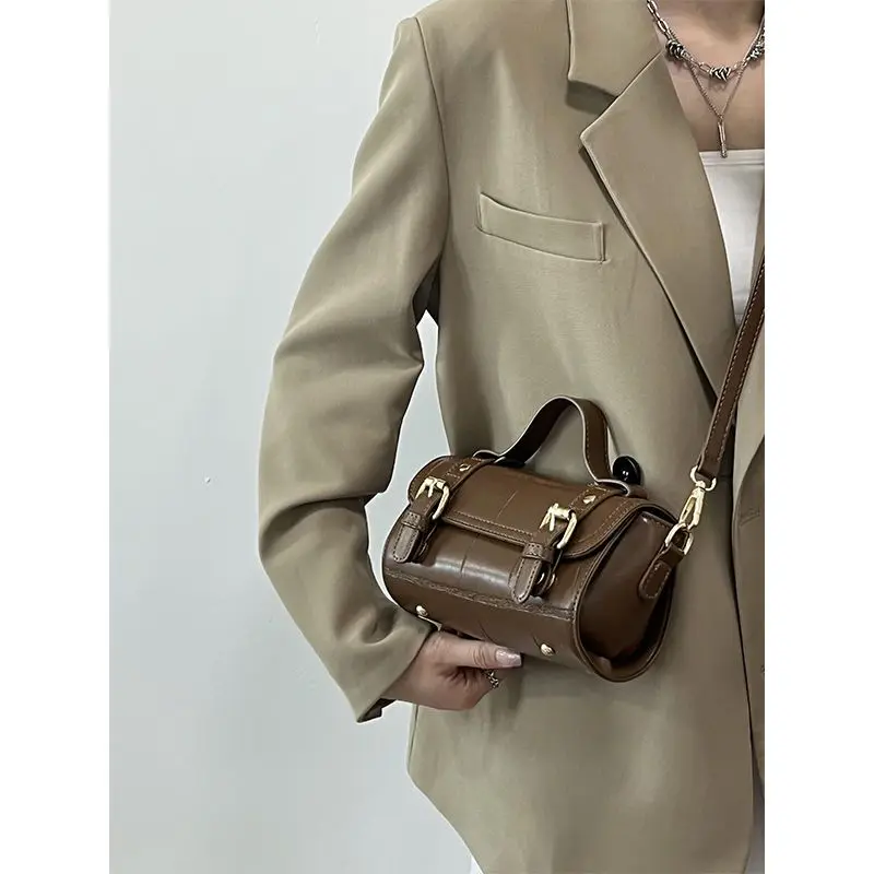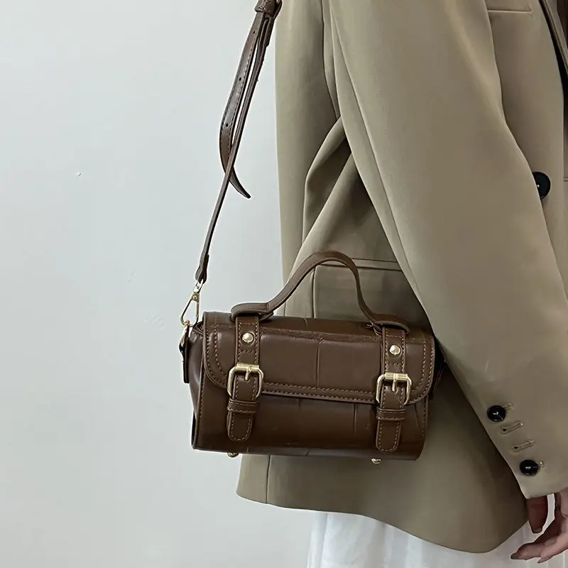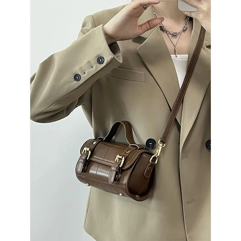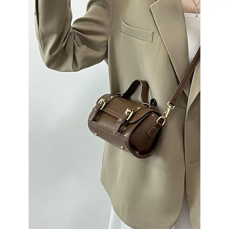 Kylethomasw Vintage Brown Messenger Bag Women Autumn Retro Leather Chic Handle Mini Bag Female Elegance Casual Crossbody Bags Purse
