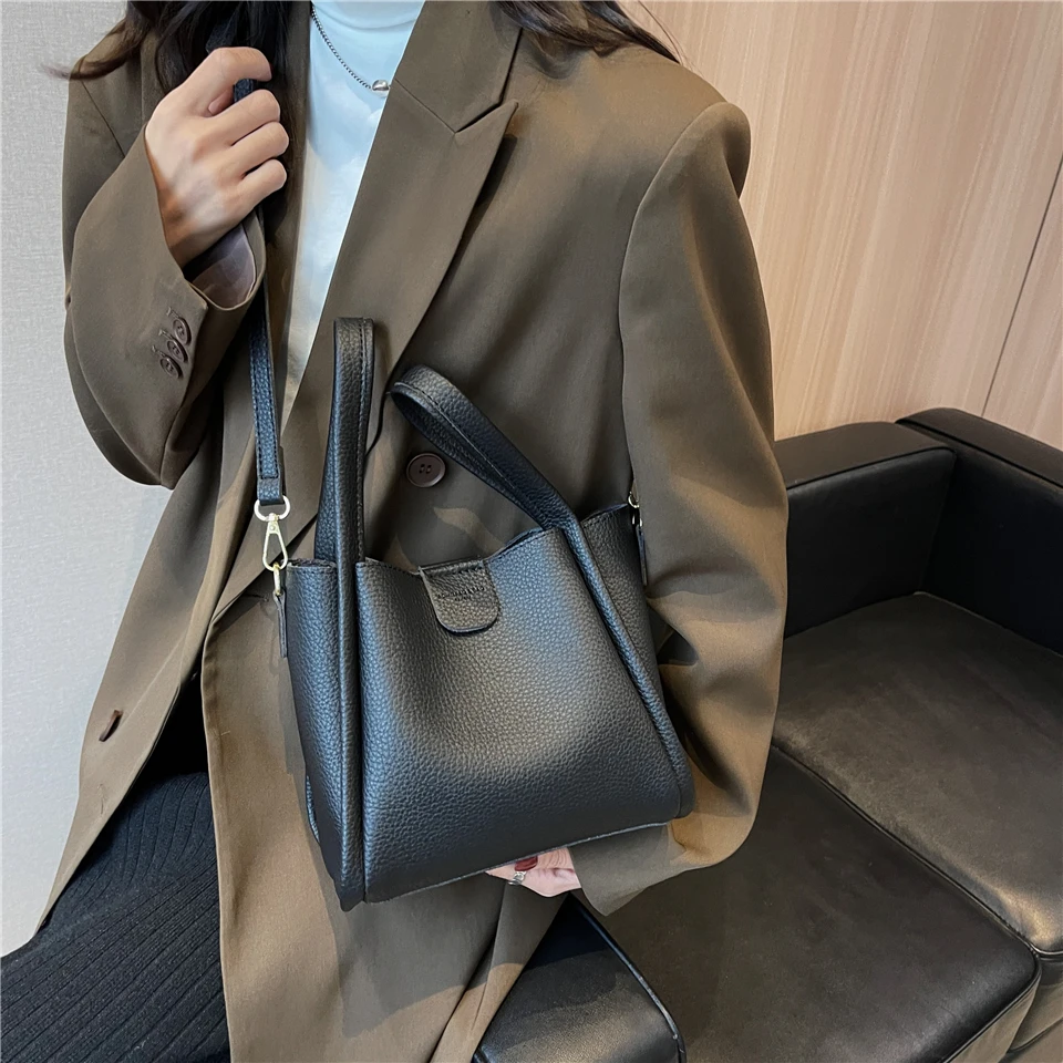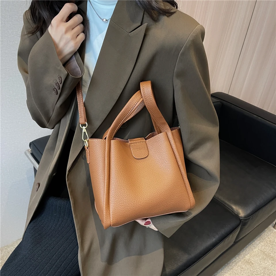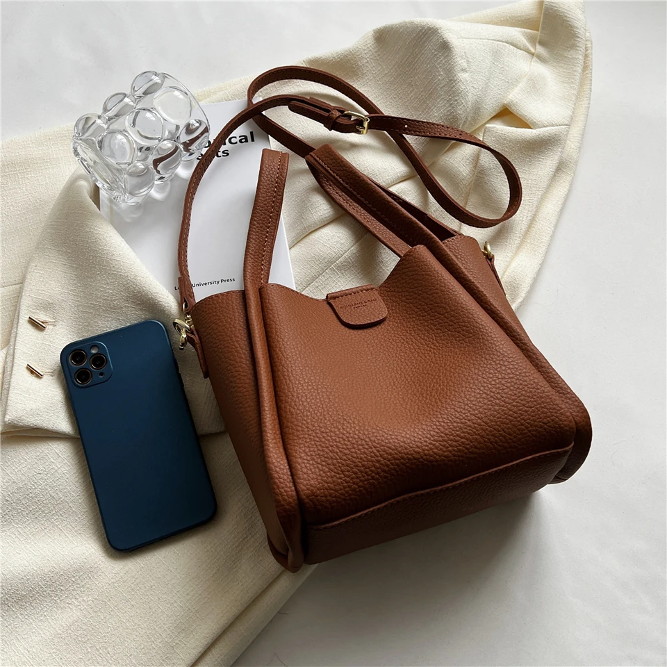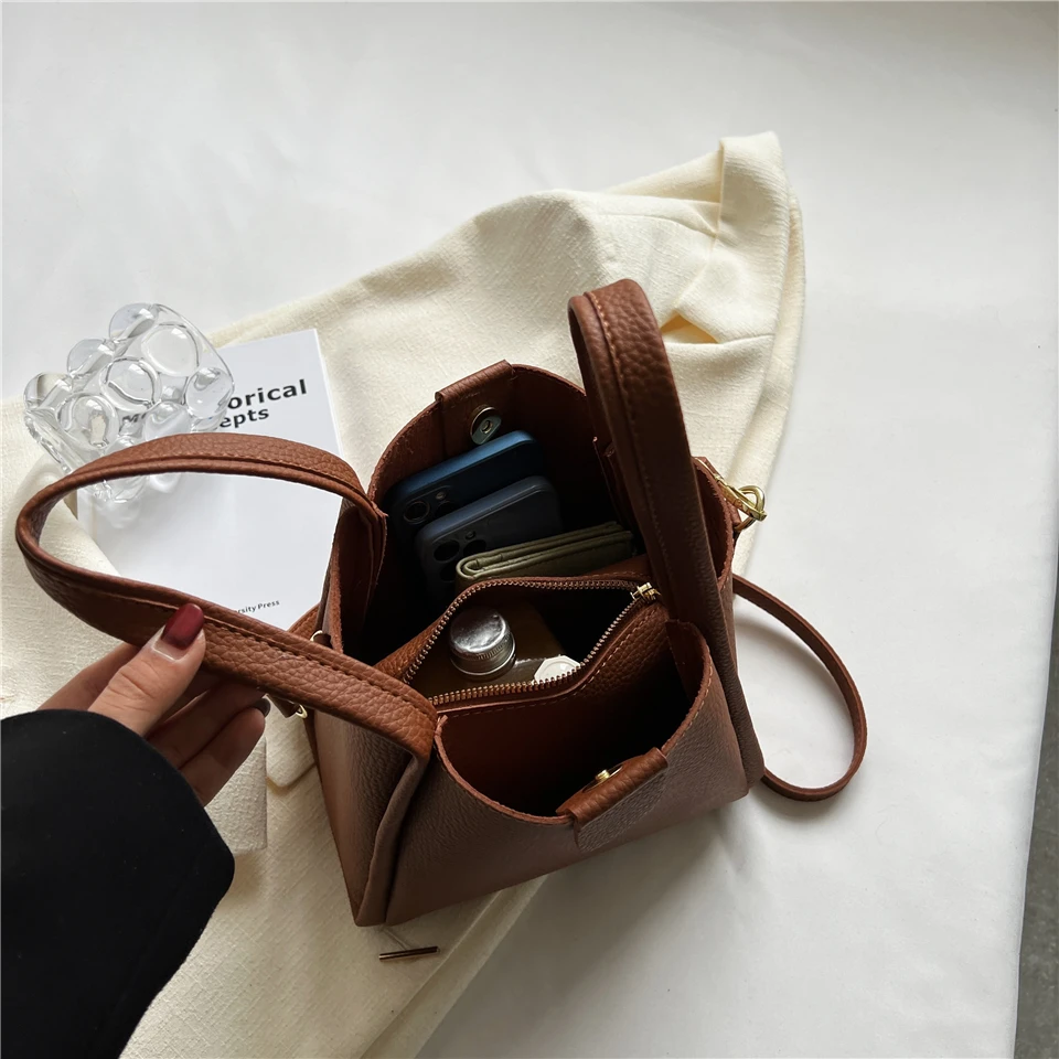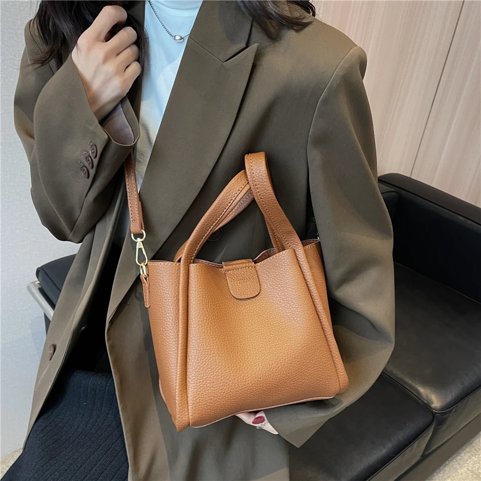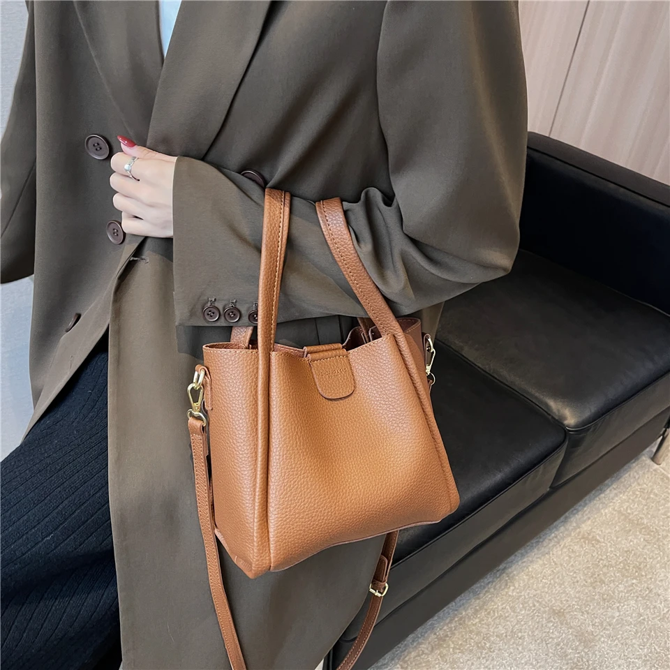 Kylethomasw Burminsa Small Tote Bucket Bags For Women Trend Designer Soft Ladies Shoulder Crossbody Bag PU Leather Handbags And Purses