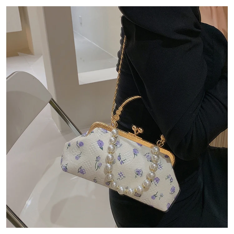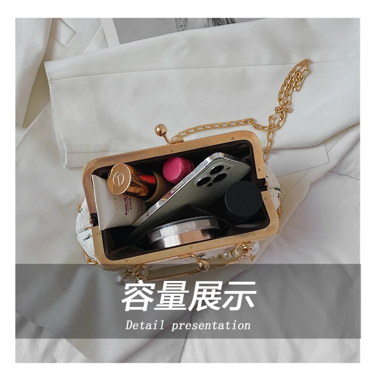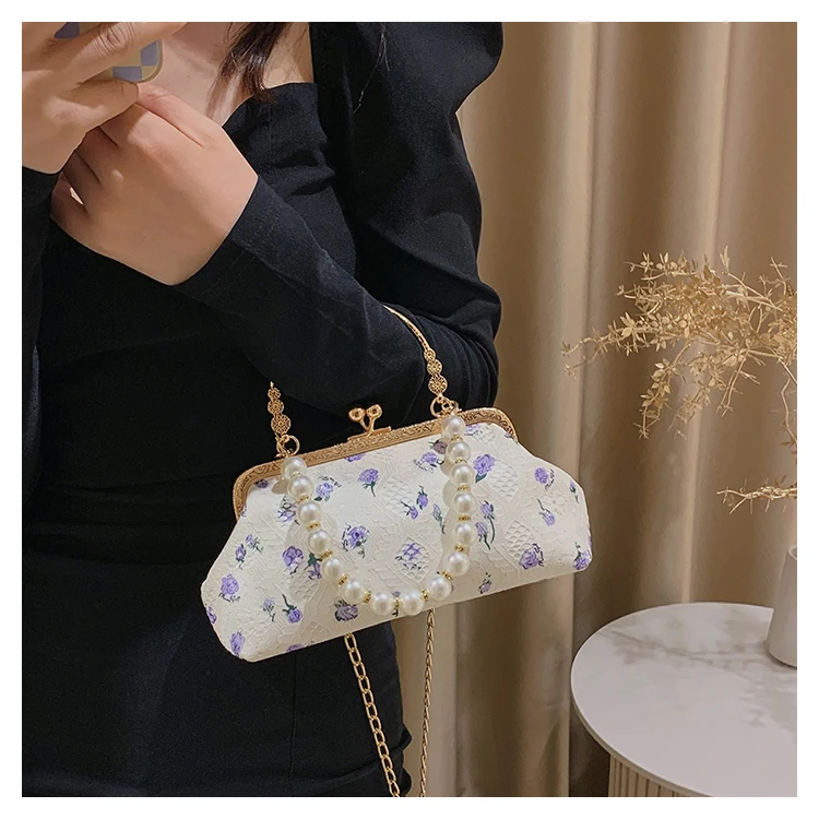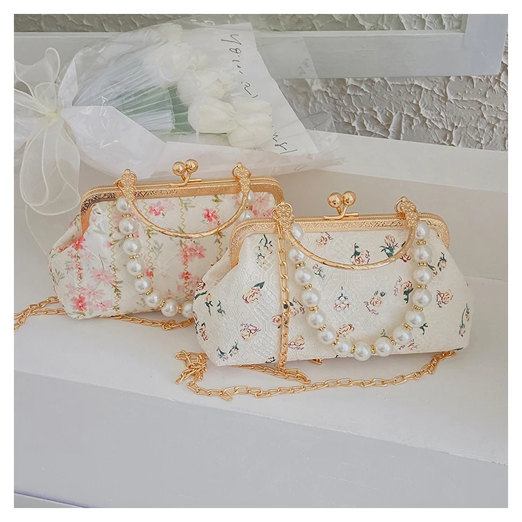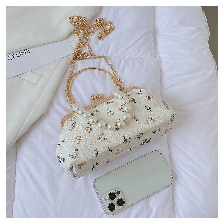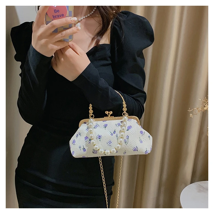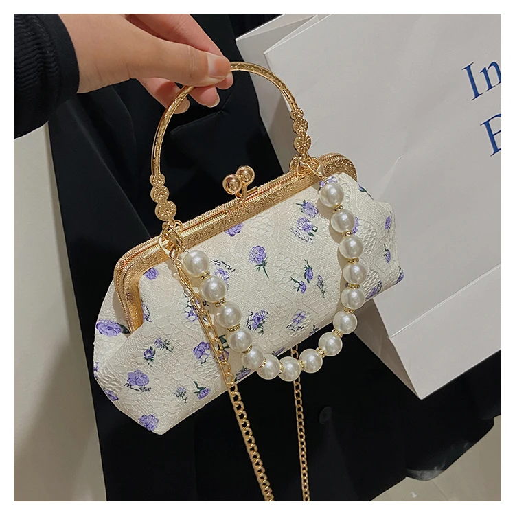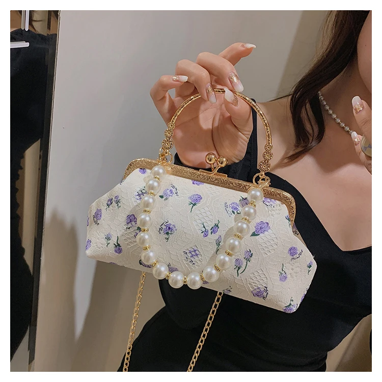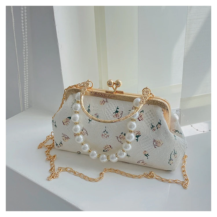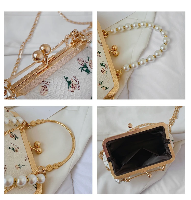 Kylethomasw Lace Evening Clutch Crossbody Bags Pearl Handle Women's Bag Trend Handbags for Women Designer Luxury Banquet Bags for Women