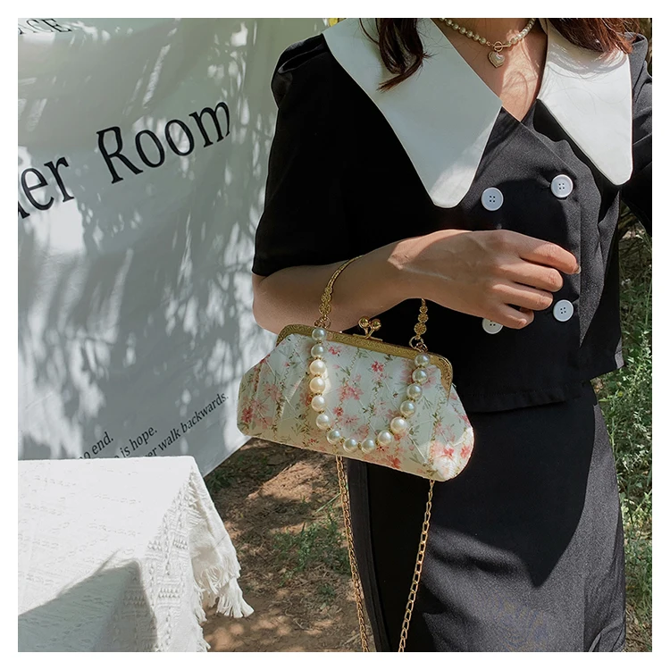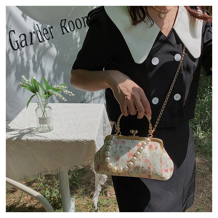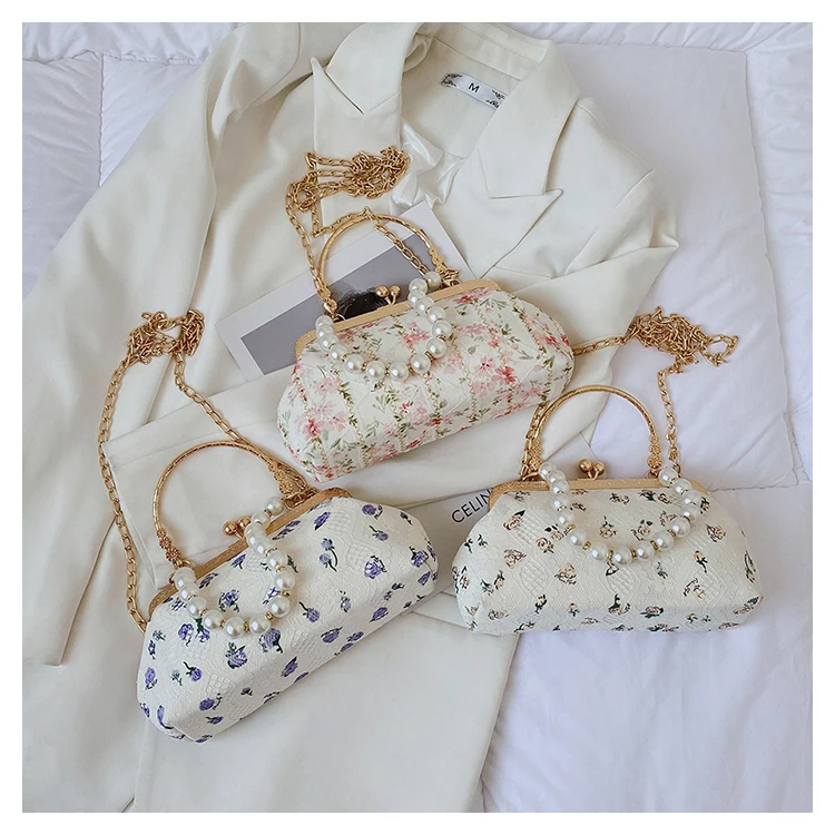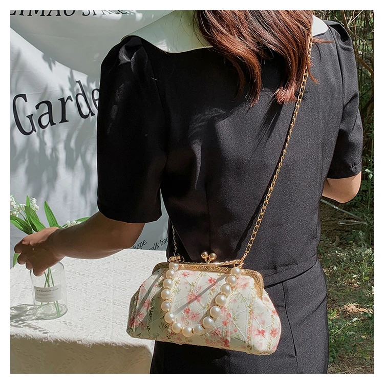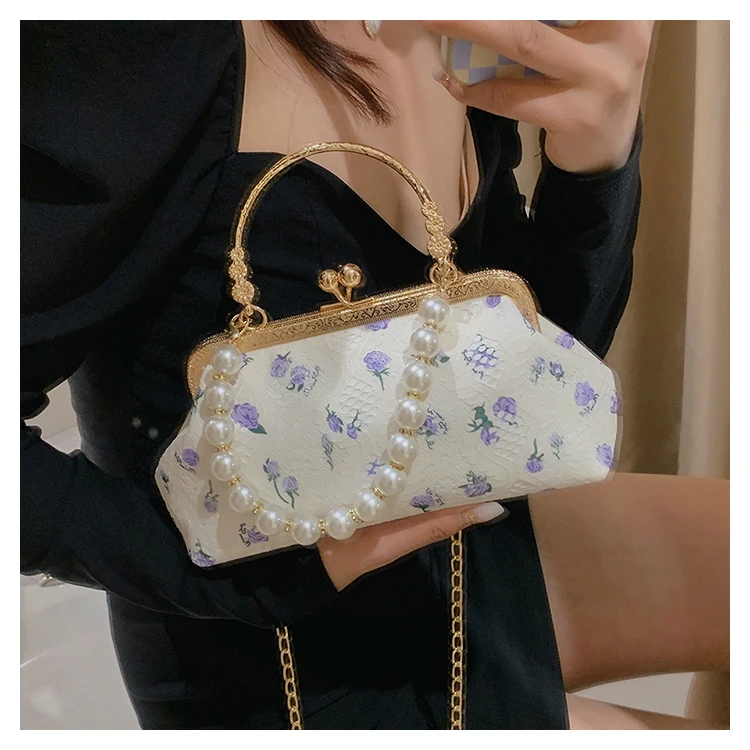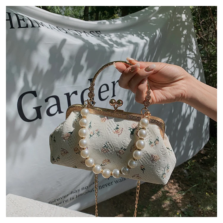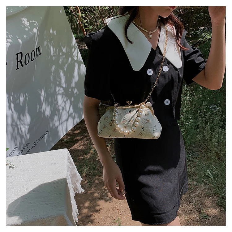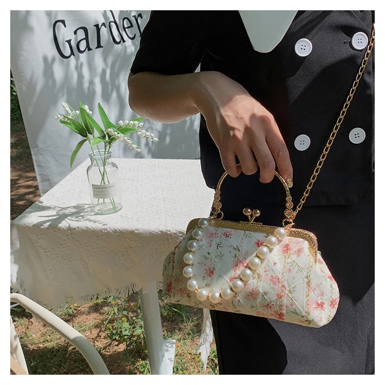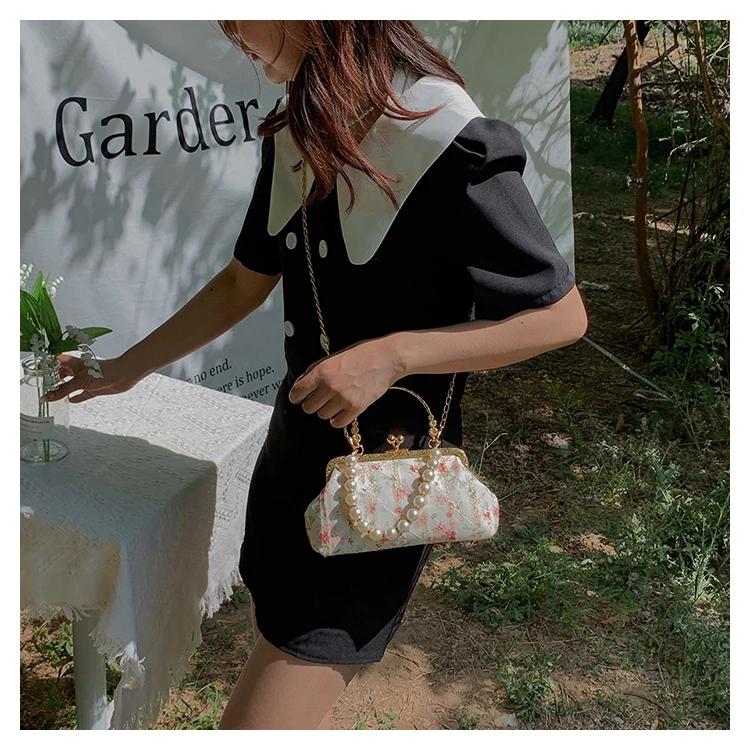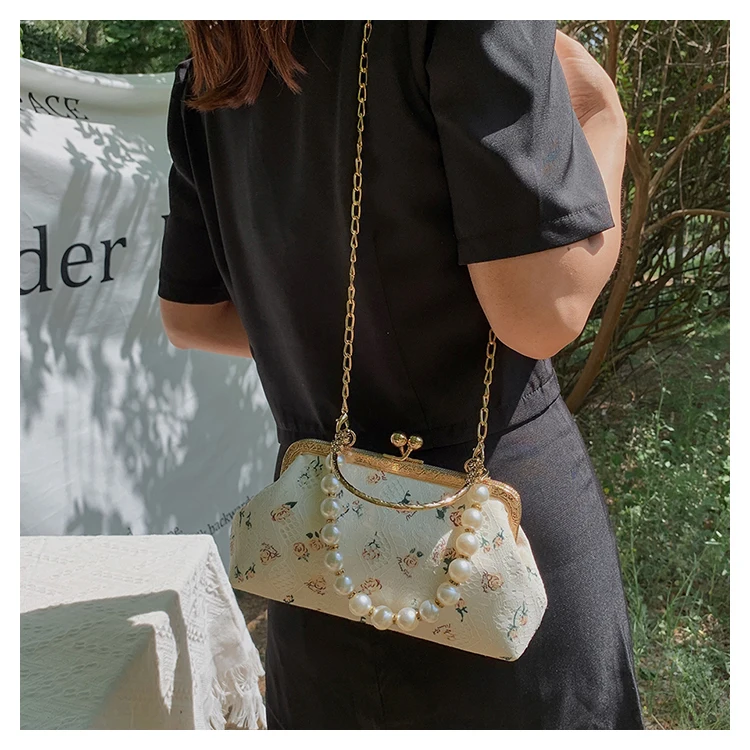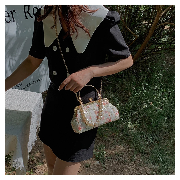 Kylethomasw Lace Evening Clutch Crossbody Bags Pearl Handle Women's Bag Trend Handbags for Women Designer Luxury Banquet Bags for Women