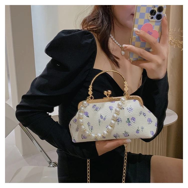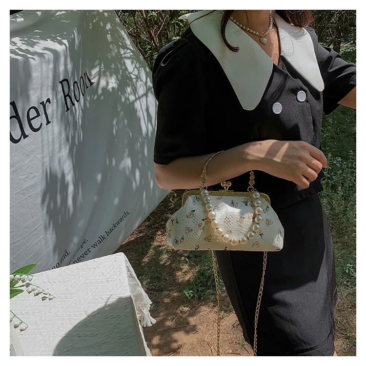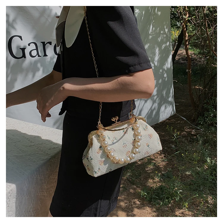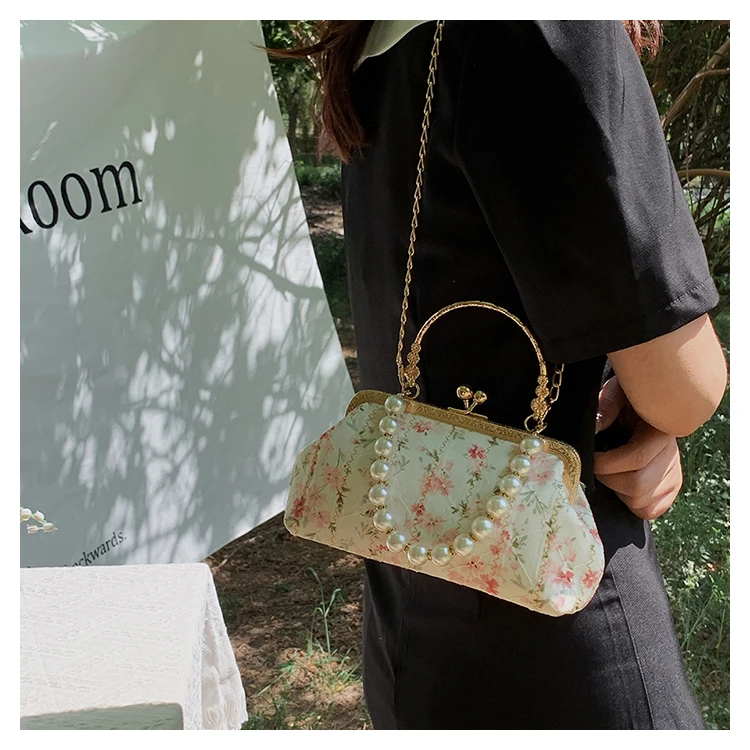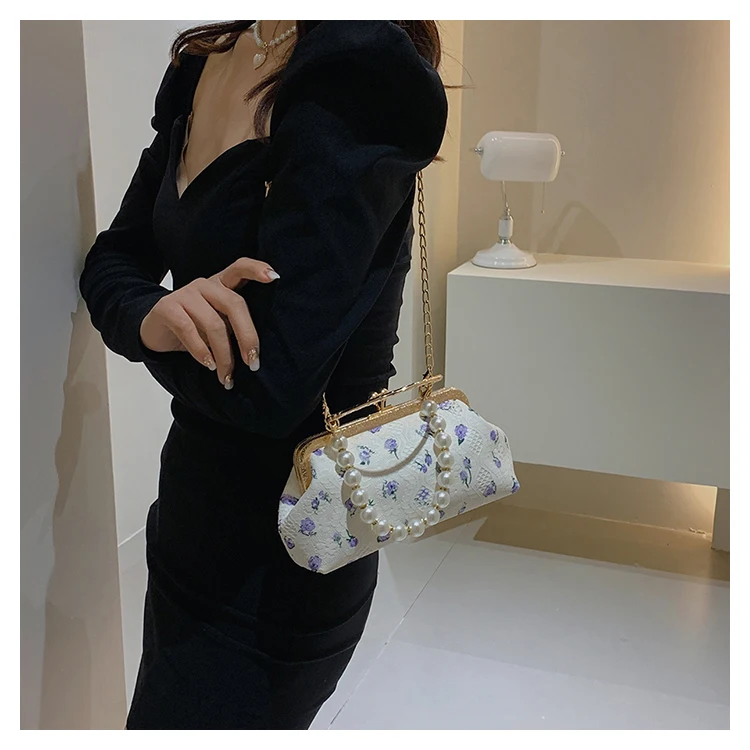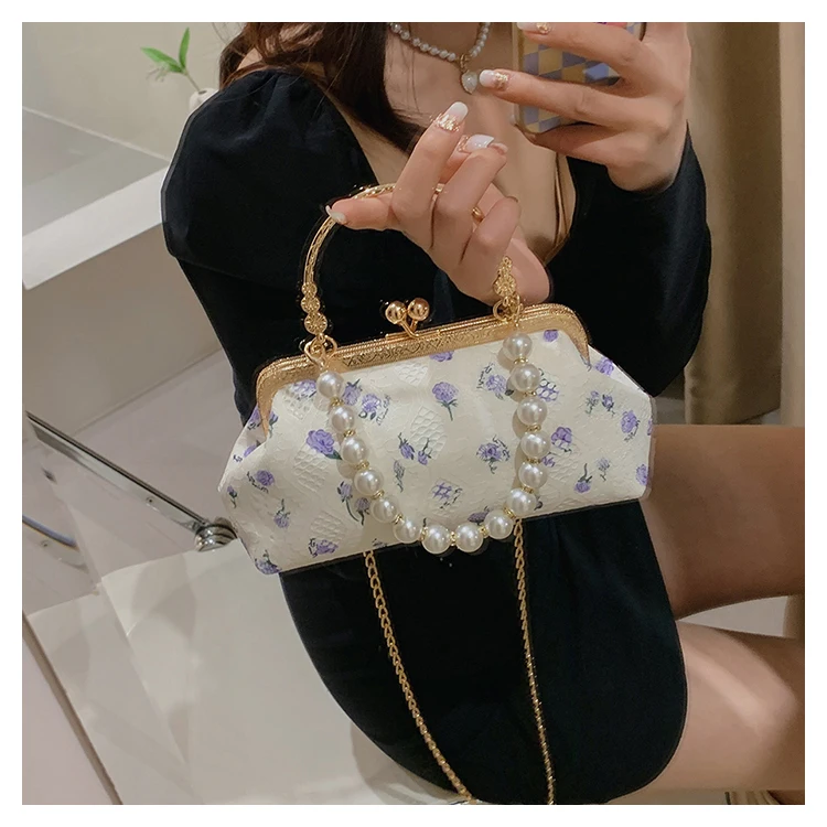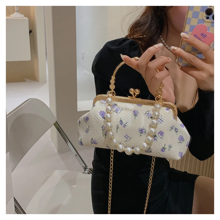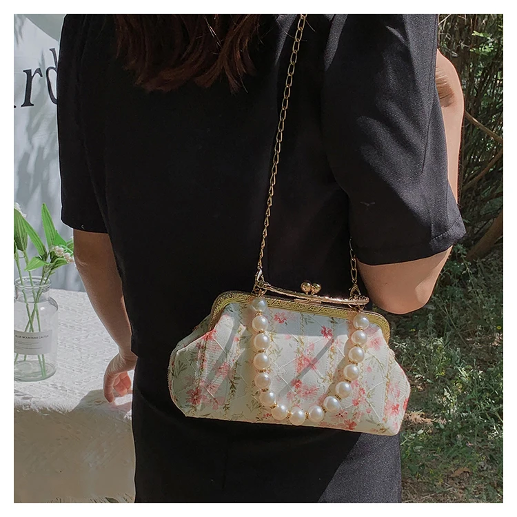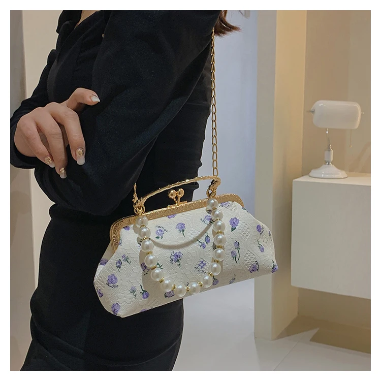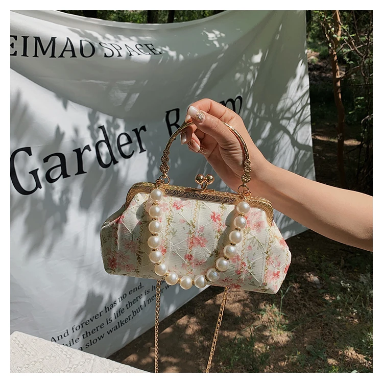 Kylethomasw Lace Evening Clutch Crossbody Bags Pearl Handle Women's Bag Trend Handbags for Women Designer Luxury Banquet Bags for Women