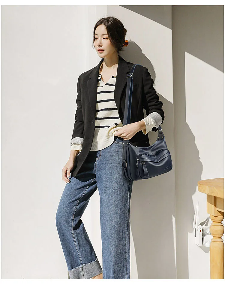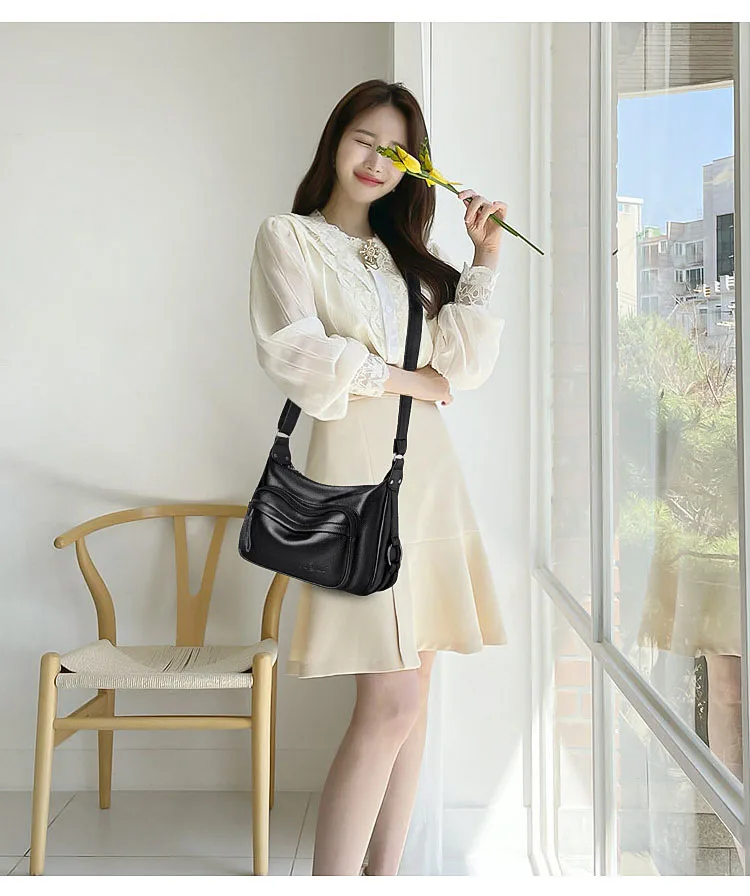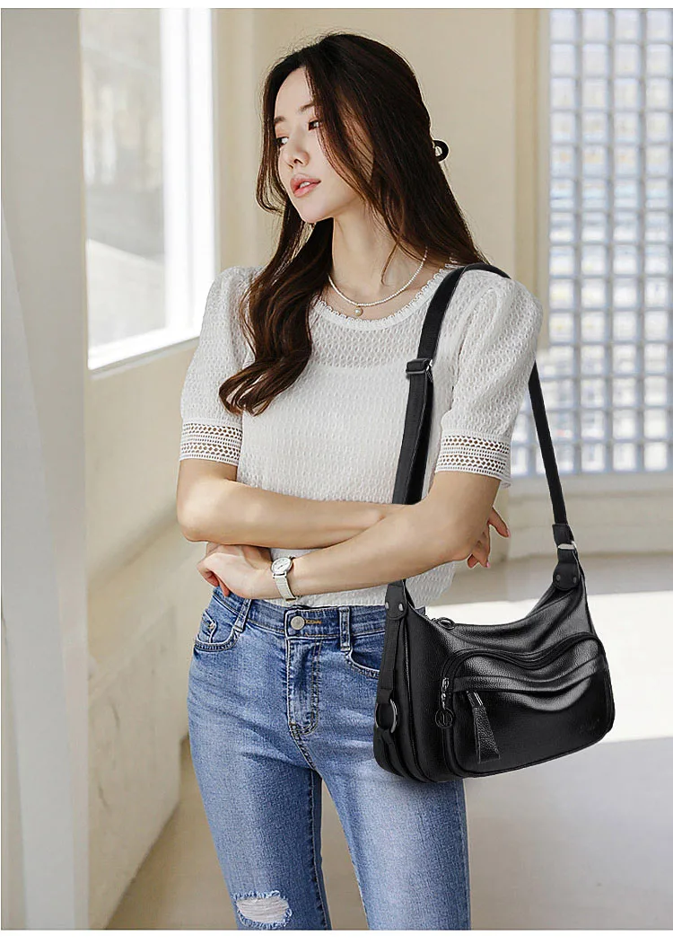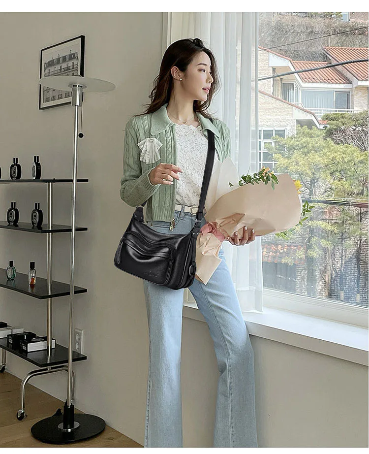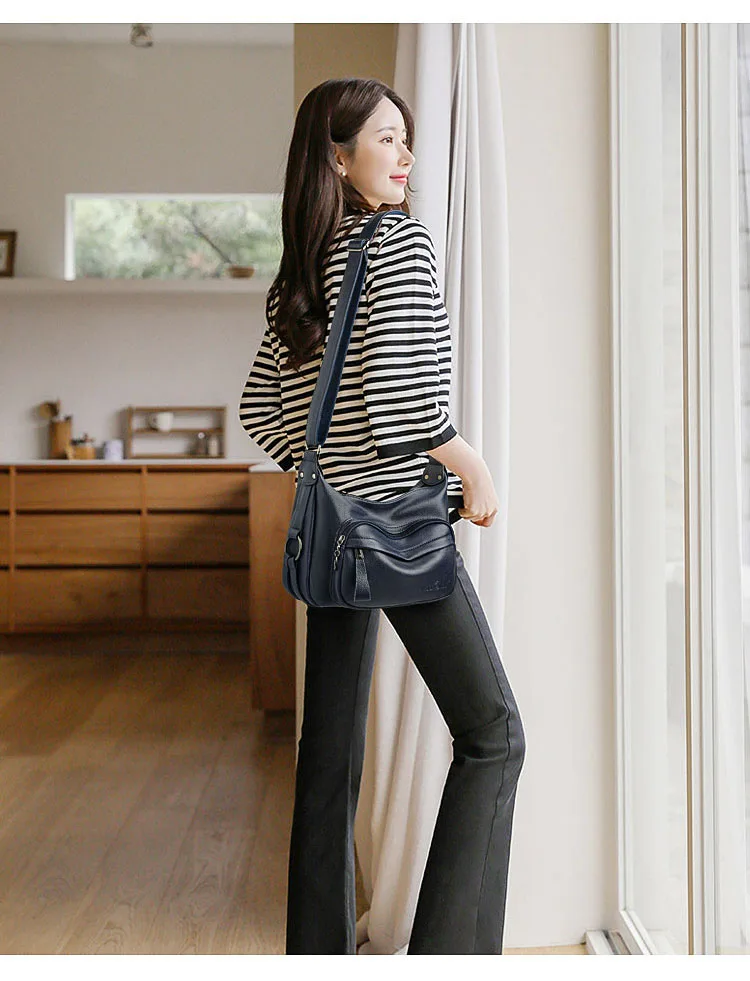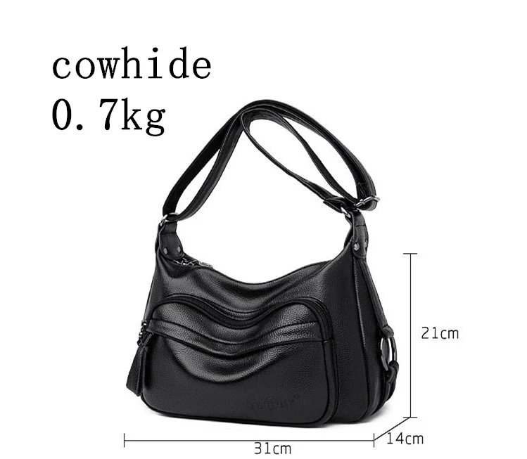 Kylethomasw Multifunction Shopping Handbag Large Capacity Messenger Bag New Cowhide Waterproof Shoulder Bag Women Casual Crossbody Bag