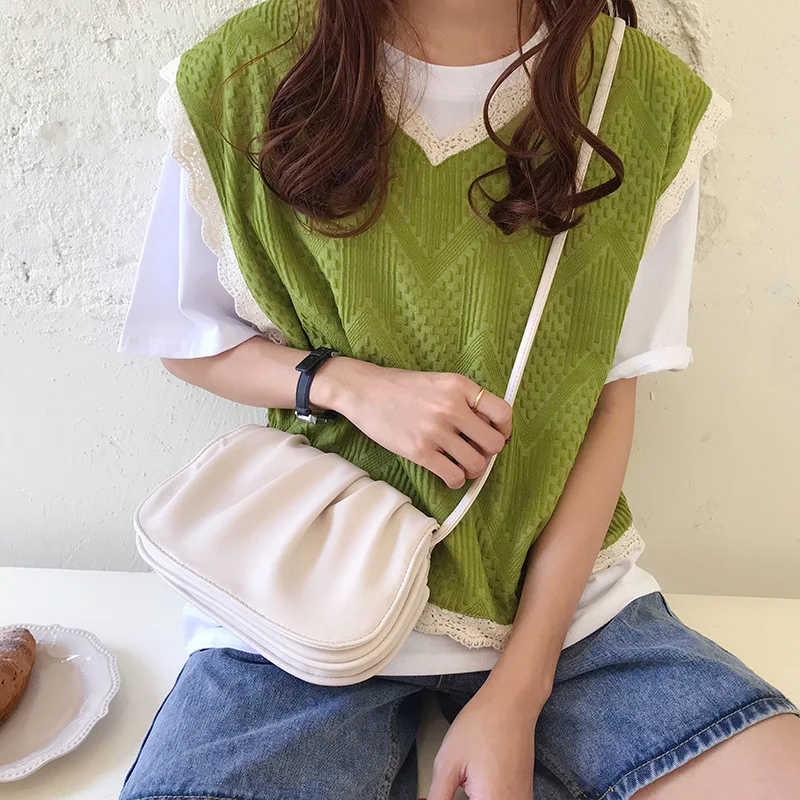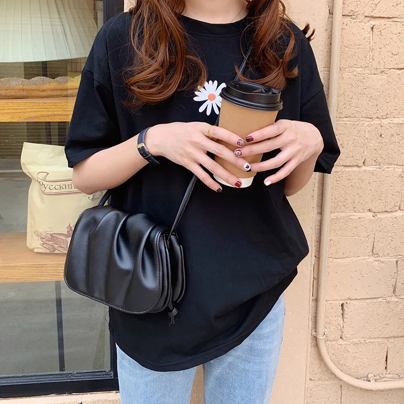 Kylethomasw Small Crossbody Bags for Women Wrinkle Saddle Cloud Bag Fashion Pu Leather Diagonal Bag Ladies