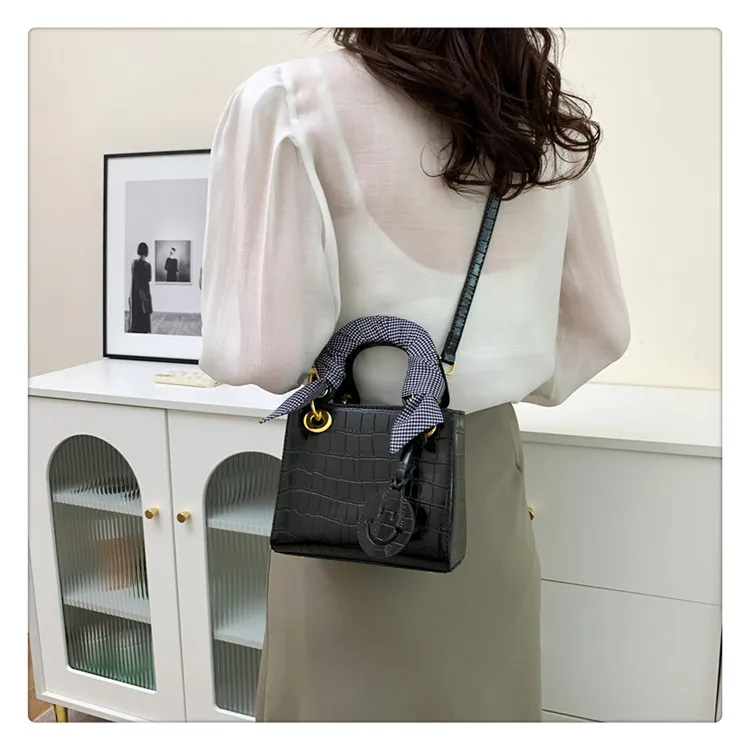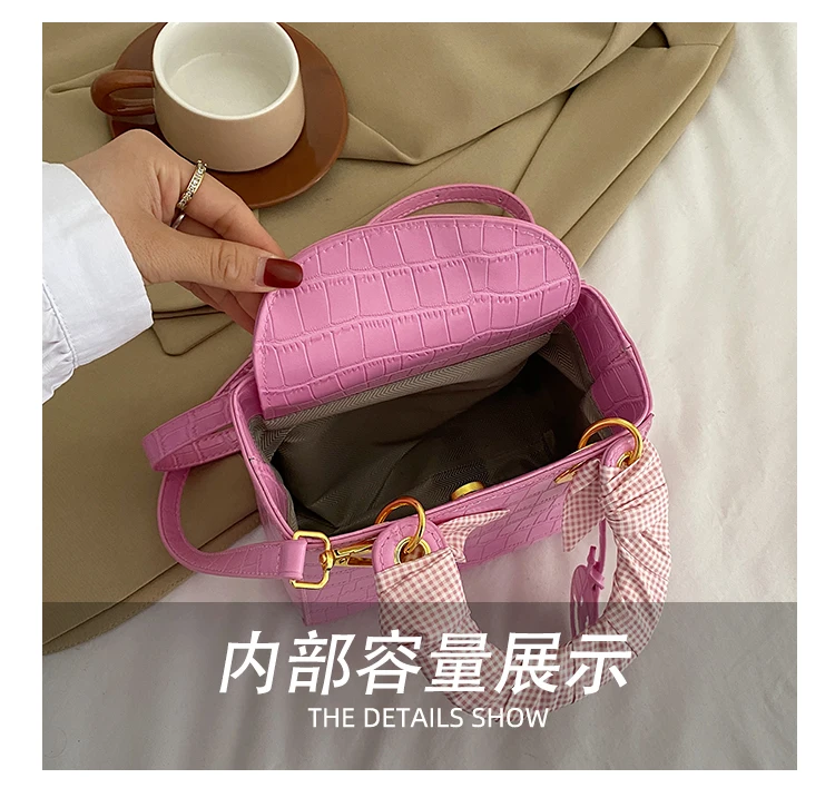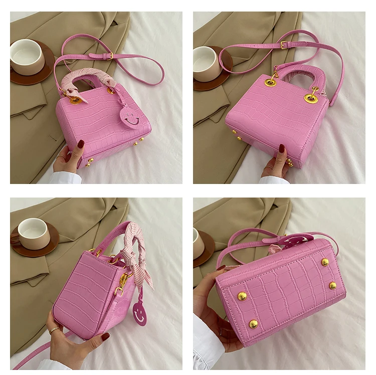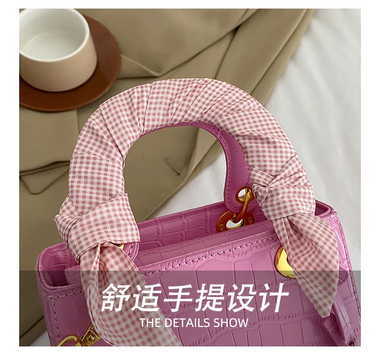 Kylethomasw Square Handbags for Women Stone Pattern Totes Bag Fashion Ribbon Women's Bag Exquisite Female Crossbody Bag for Women Messenger
