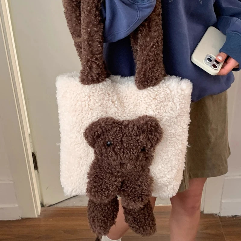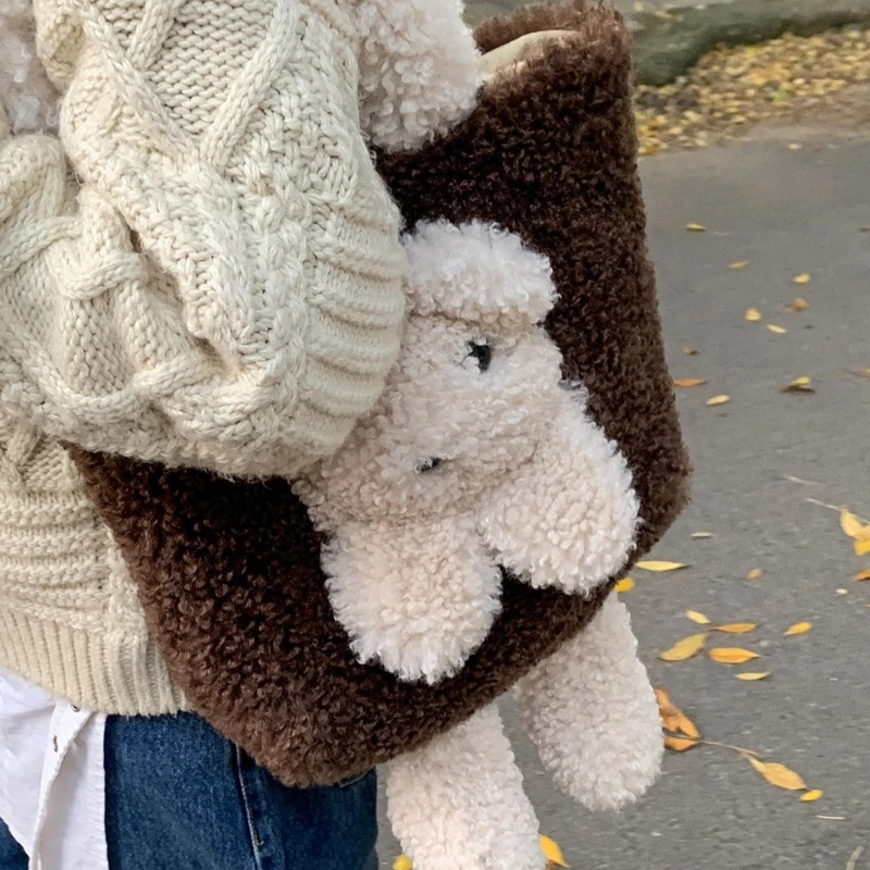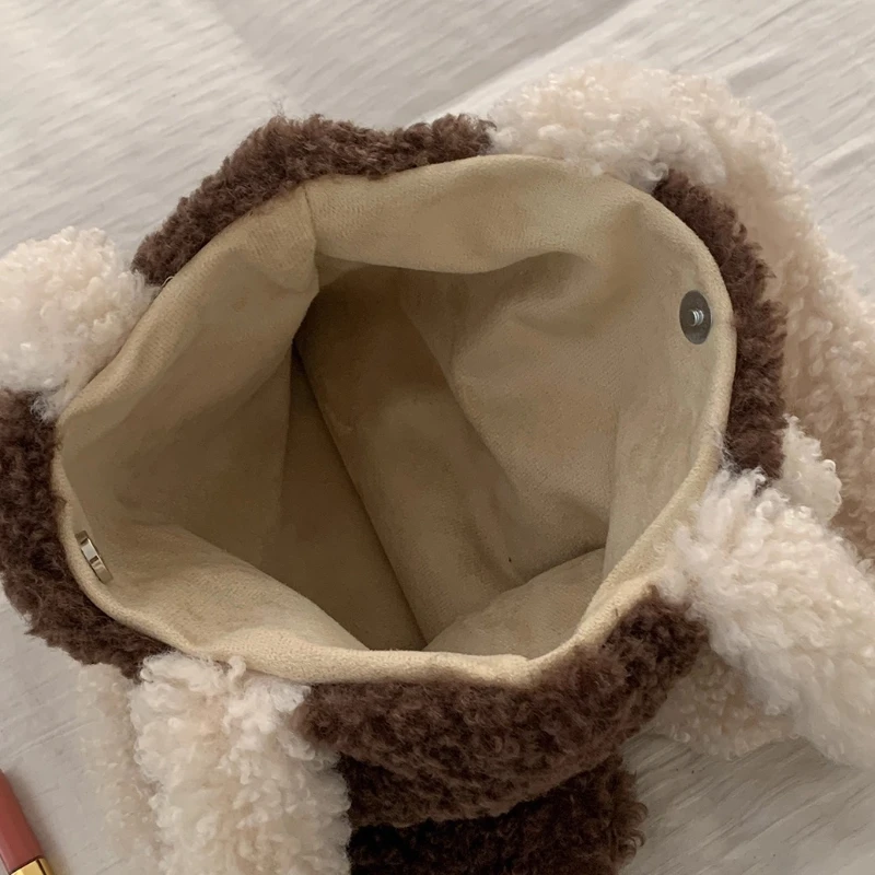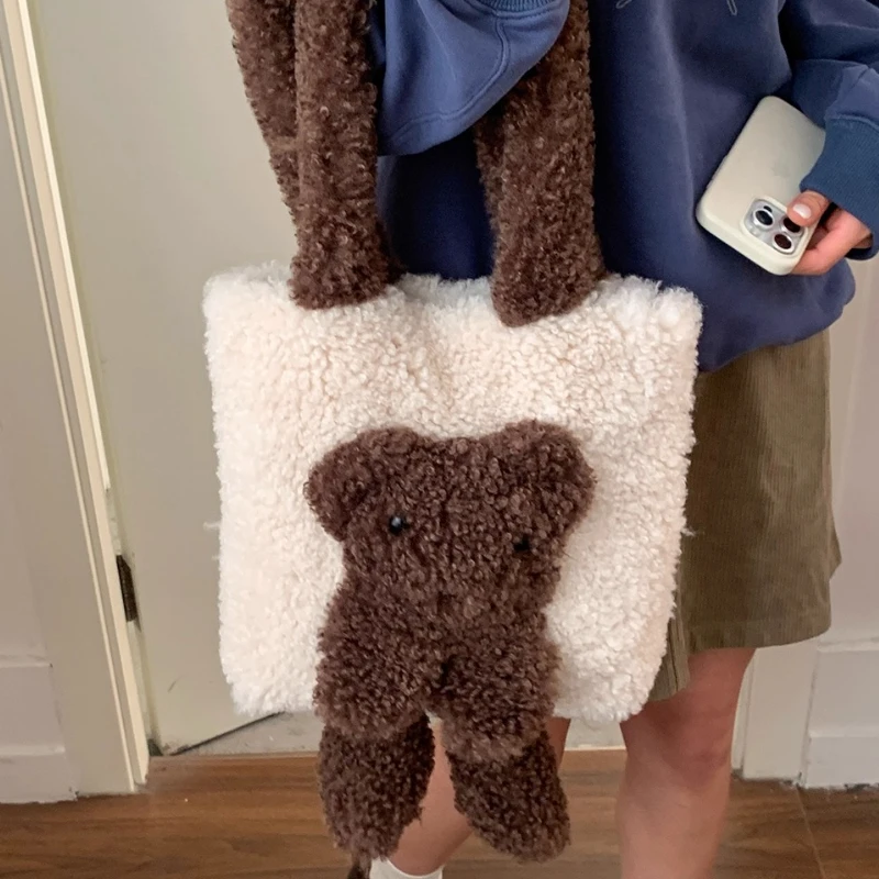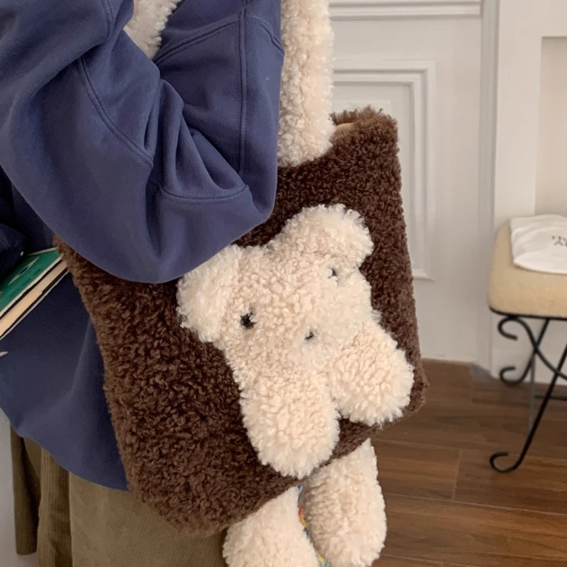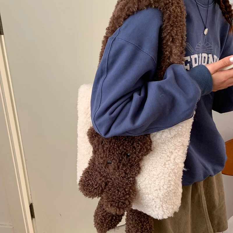 KYLETHOMASW - Cartoon Lamb Wool Women Winter Shoulder Bags Patchwork Kawaii Bear Handbags Y2k Aesthetic Chic Women Sweet Cute Handbags Fashion