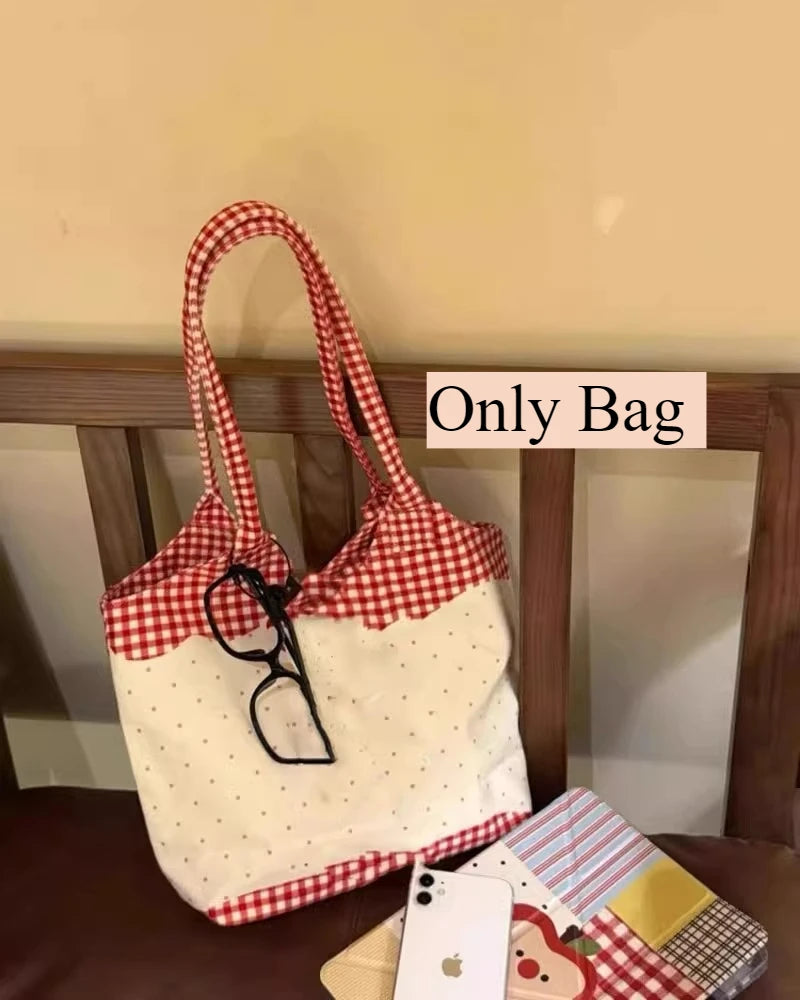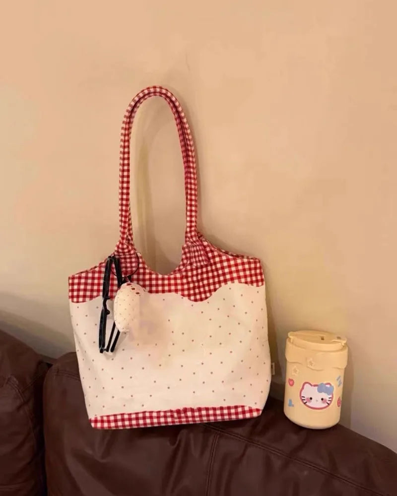 KYLETHOMASW  -  Cute Polka Dot Embroidered Canvas Shoulder Bag 2025 Casual Versatile Large Capacity Tote Commuting Underarm Bags