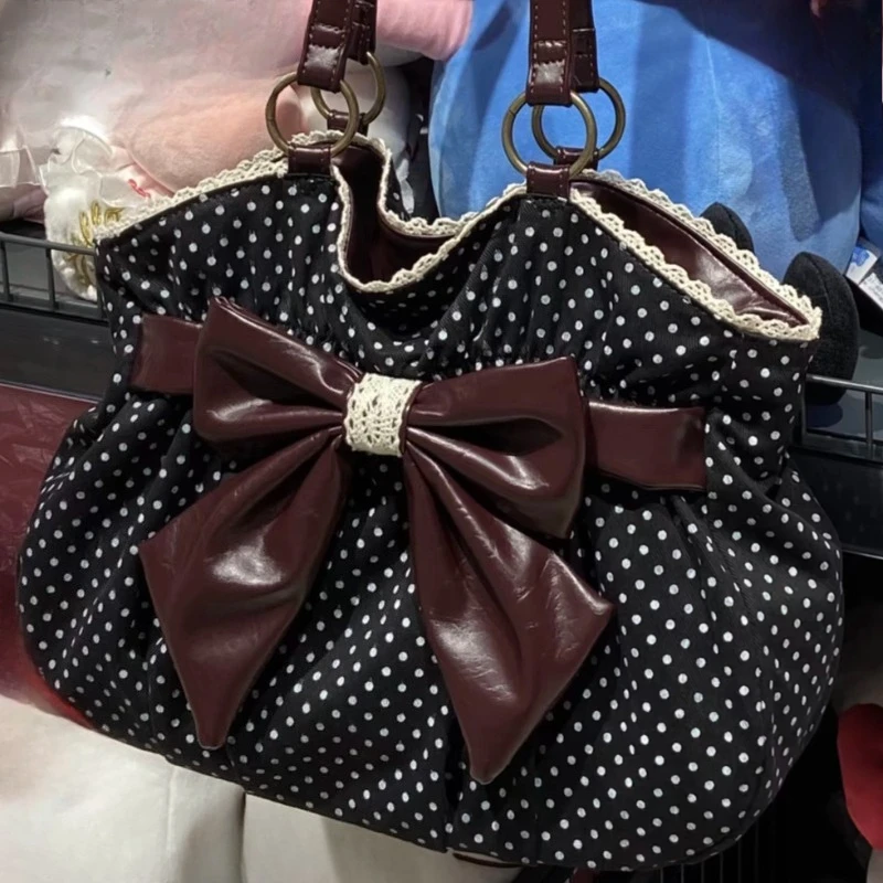 KYLETHOMASW - Luxury Design Fashion Dots Shoulder Bags Y2k Aesthetic Office Lady Elegant Handbags Contrast Color Chic Bow Underarm Bag Women