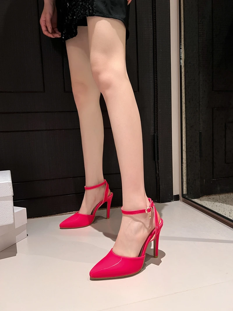 Kylethomasw Summer Pu Leather Women's Ankle Strap Buckle Stiletto Pumps Slingback Pointed Toe Sexy High Heels Sandals Shoes Large Size 33-50