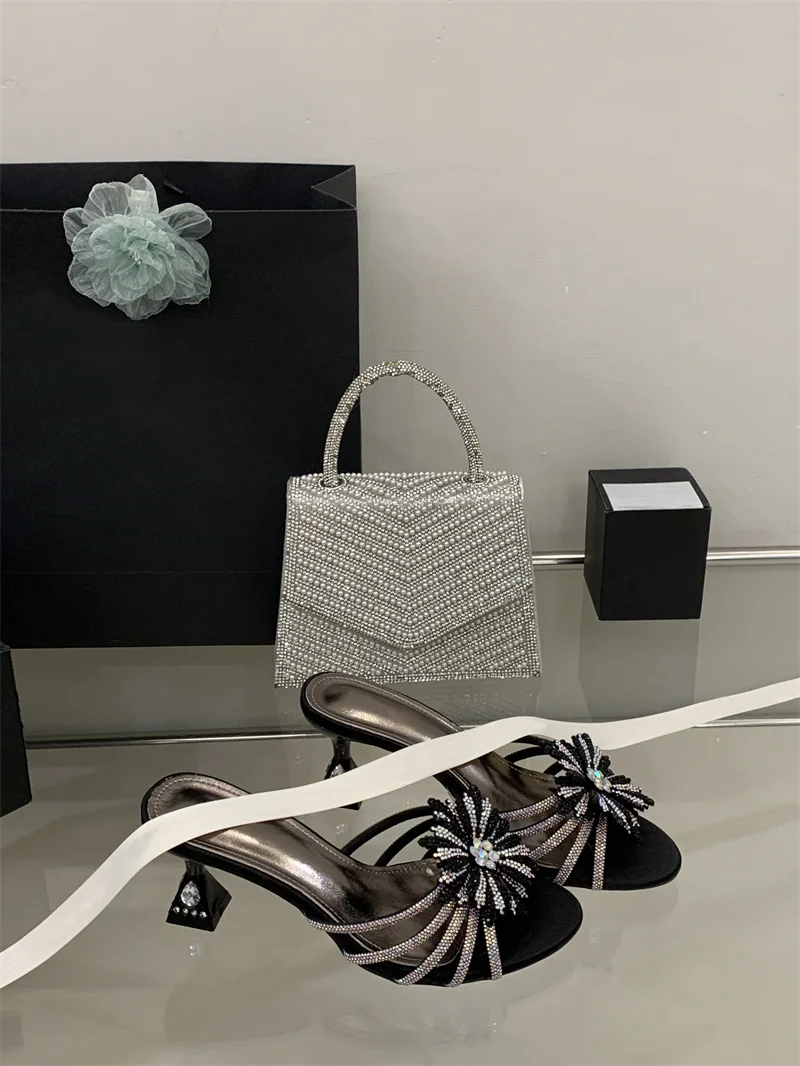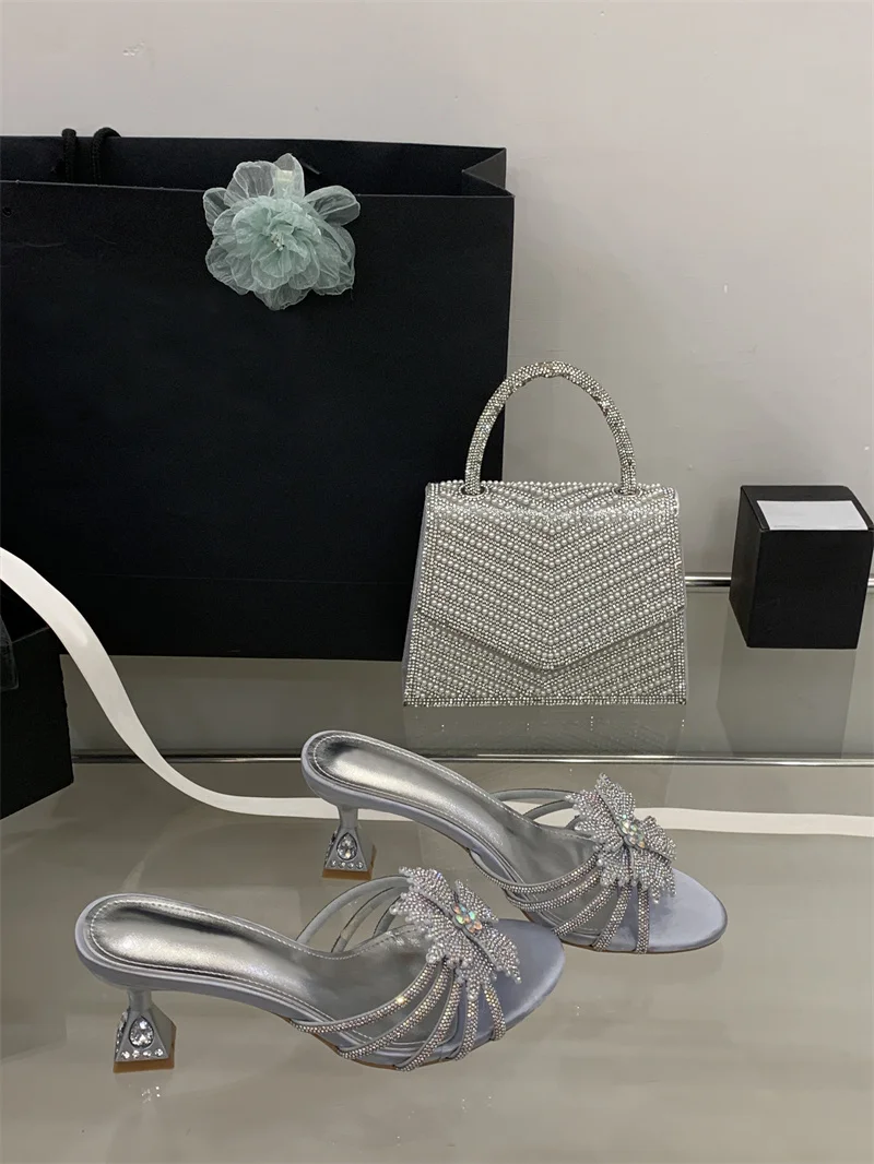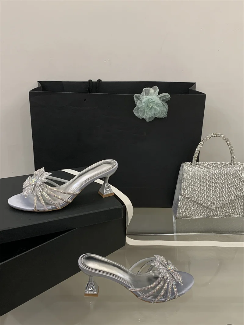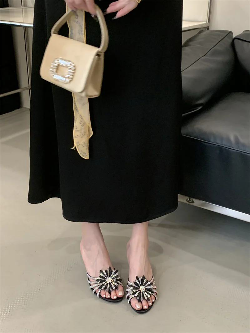 KYLETHOMASW  -  2025 New Gold Silver Crystal Gem Strange Low Heels Slippers Women Rhinestone Flowers Summer Party Prom Shoes Mules Sandals