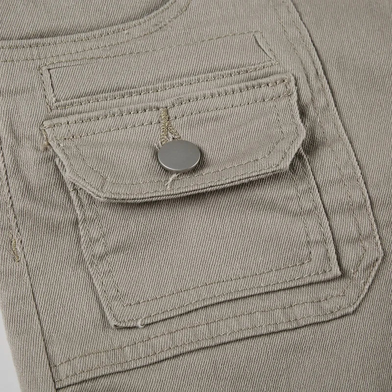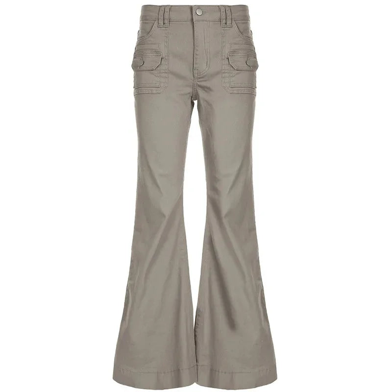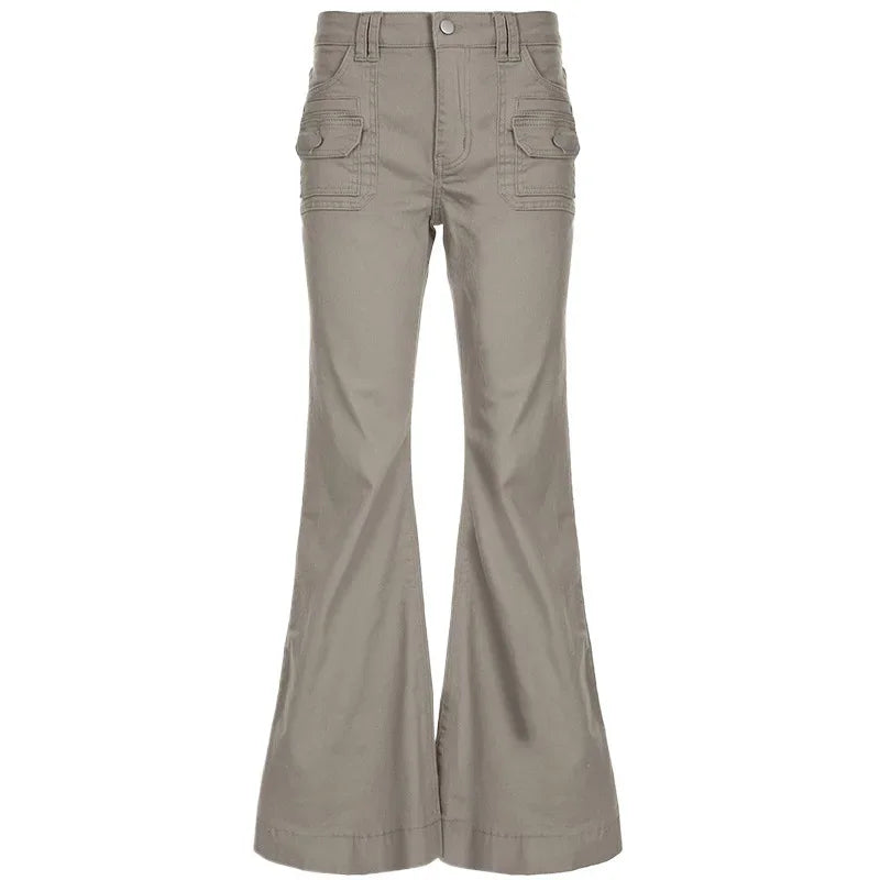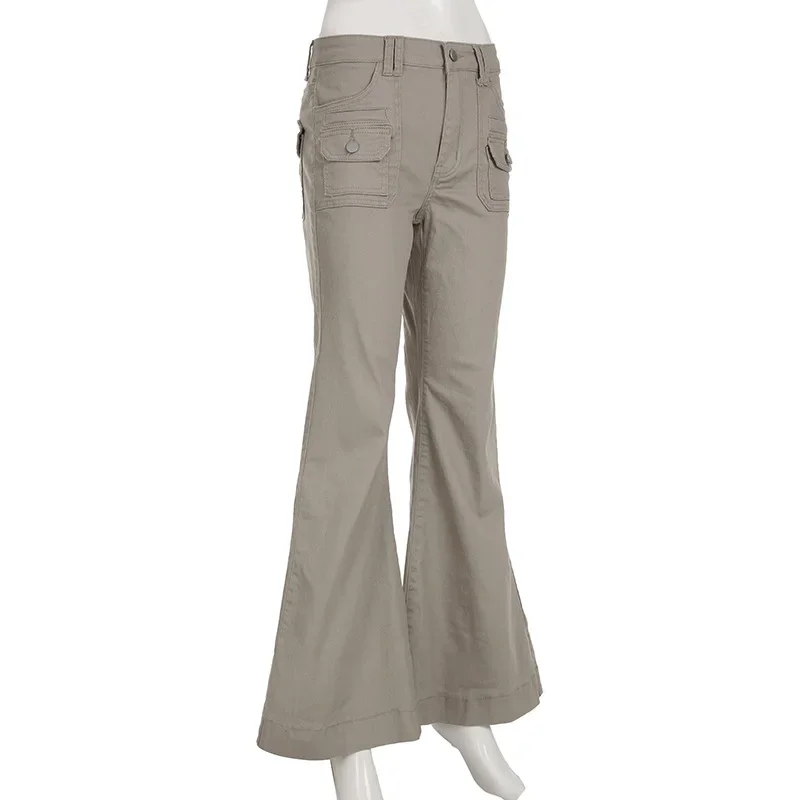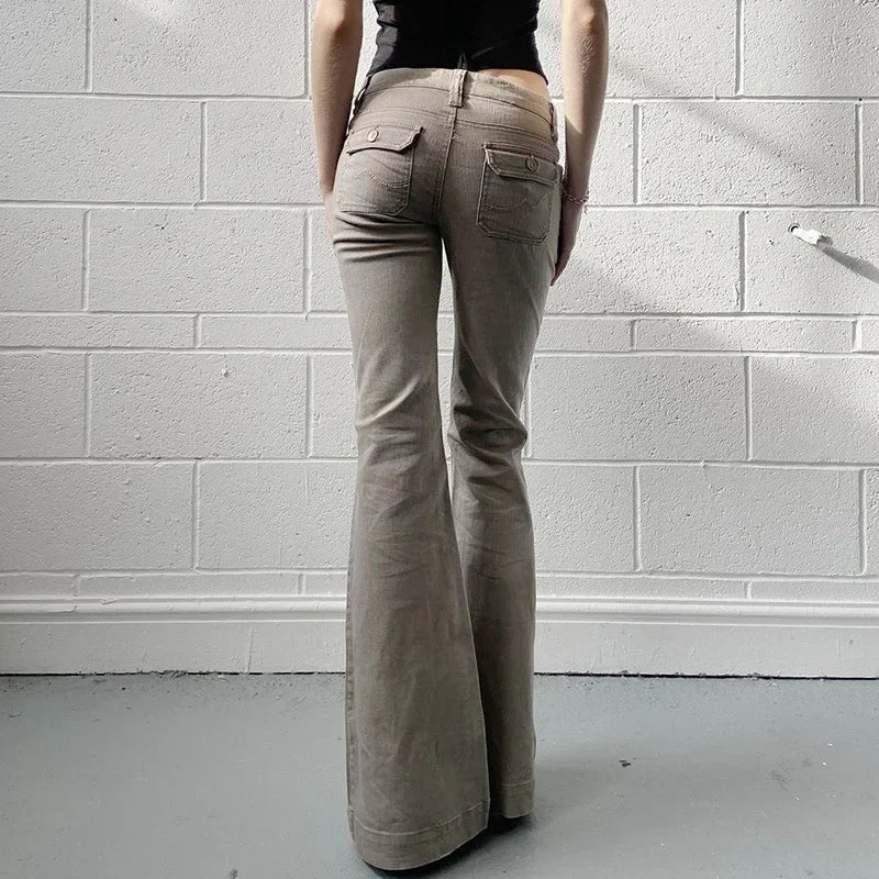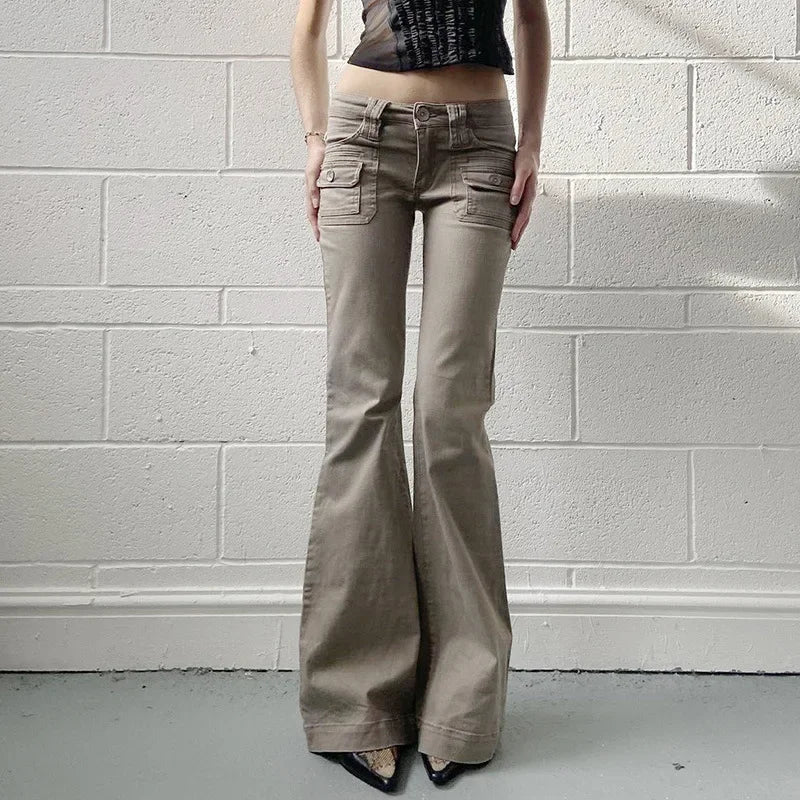 KYLETHOMASW - American Design Pocket Slimming Bell Bottom Jeans Women's Spicy Girl Street Fashion Retro Low Waist Casual Pants