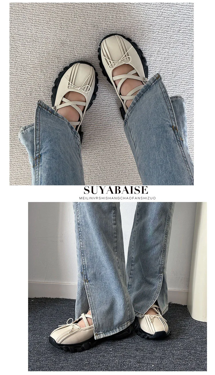 Kylethomasw Autumn Chunky Women Sports Shoes Fashion Shallow Butterfly-knot Platform Sneakers Ladies Casual Flats Outdoor Mary Jane Shoe