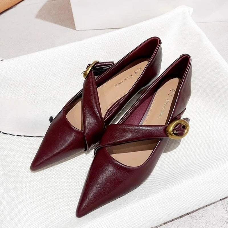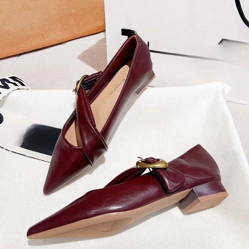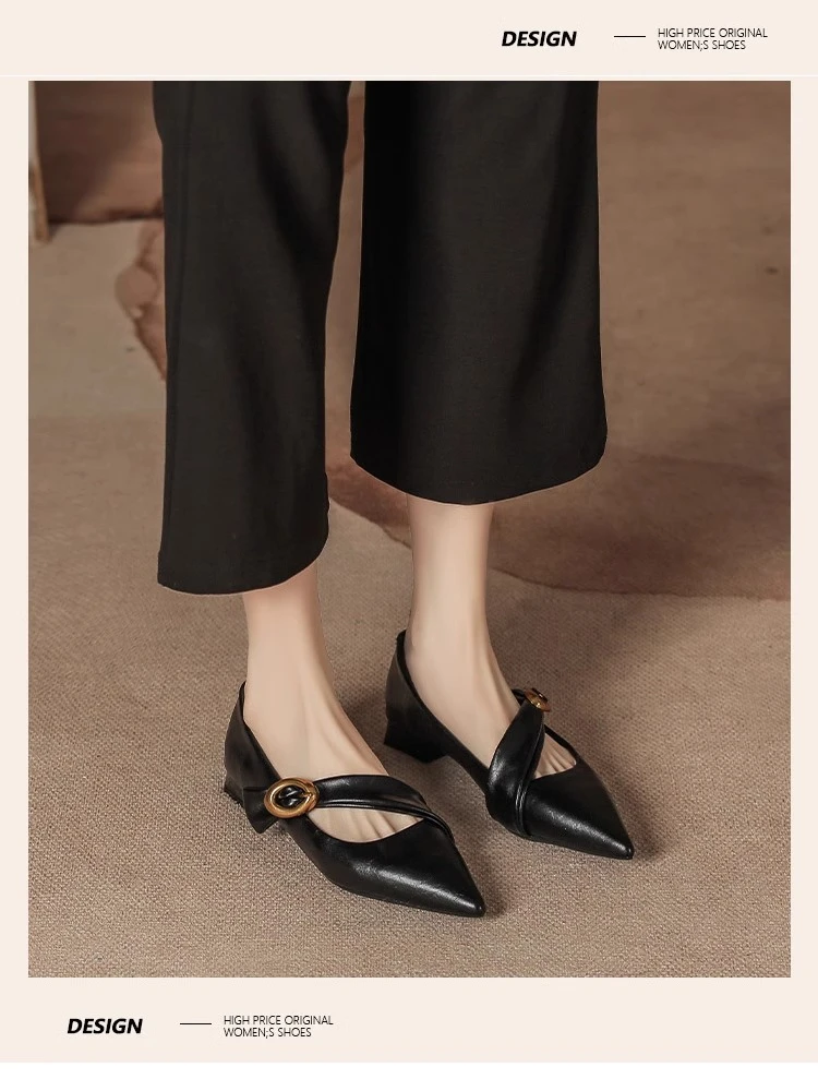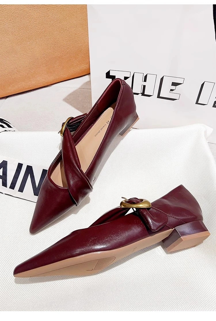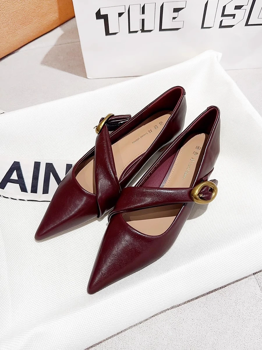 KYLETHOMASW - Autumn New Fashion French retro Elegant pointed toe Shallow mouth versatile one-character flat shoes low-heeled shoes