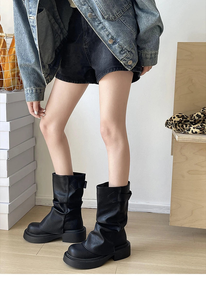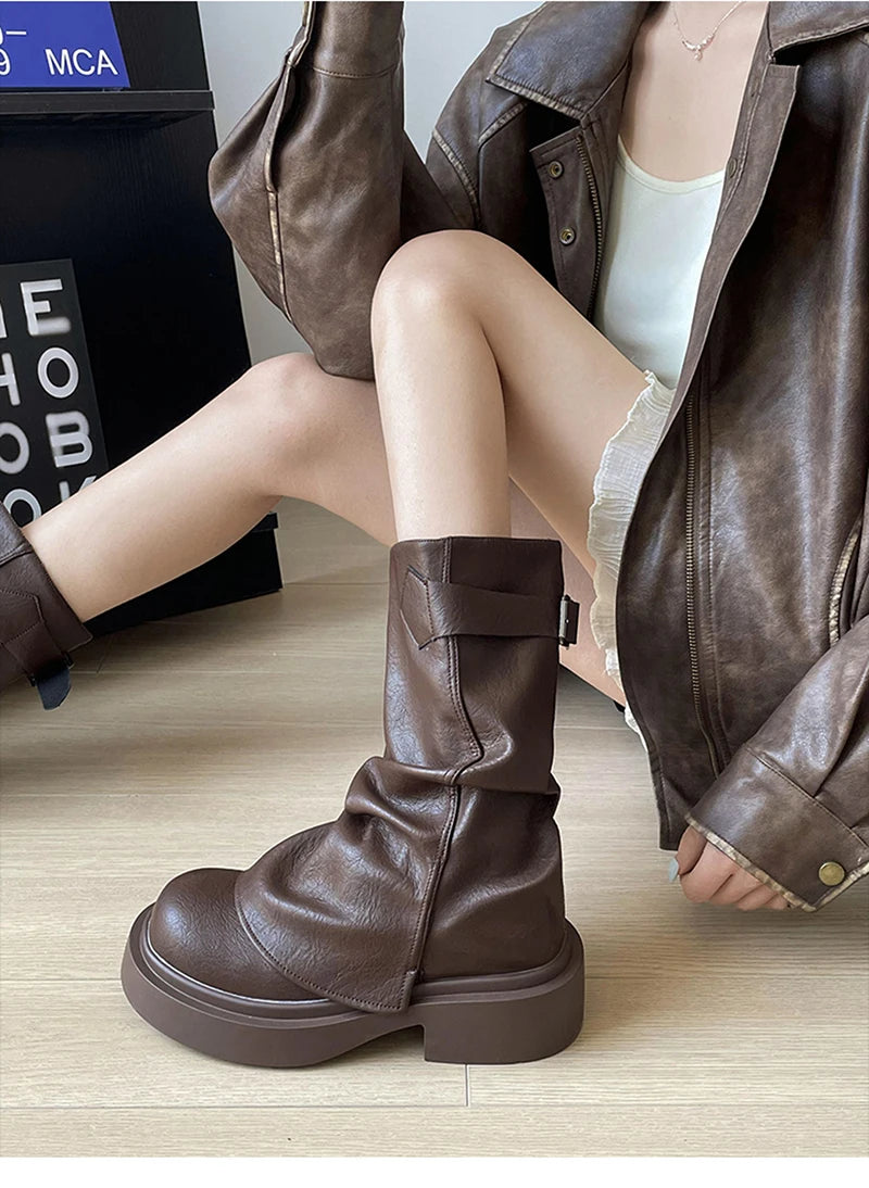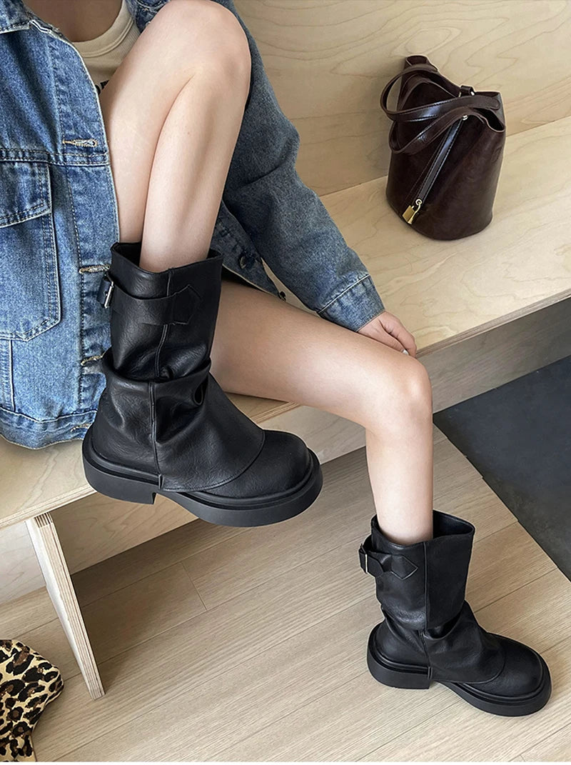 KYLETHOMASW - Autumn Vintage Thick Bottom Woman Knight Boot Fashion Belt Buckle Ladies Concise Slip On Short Booties