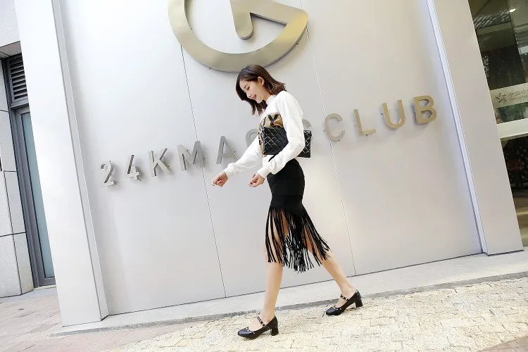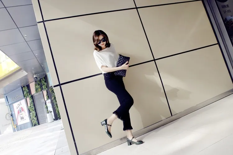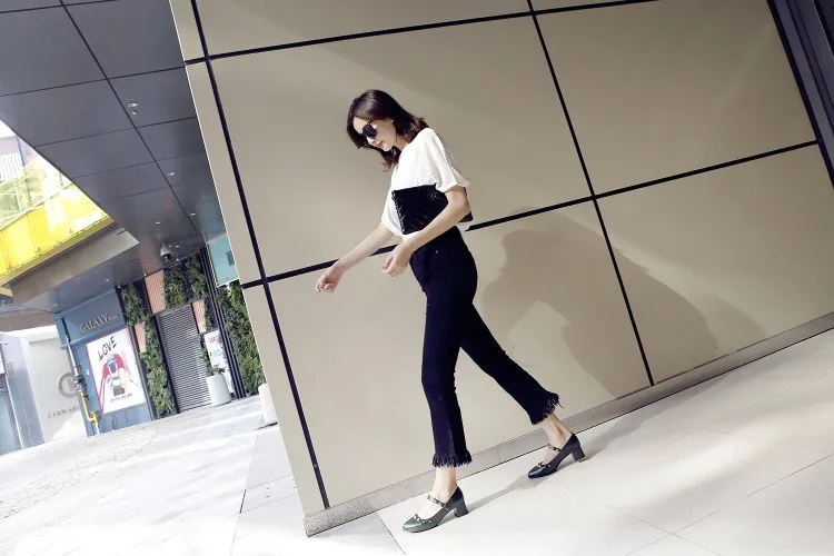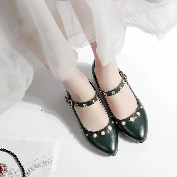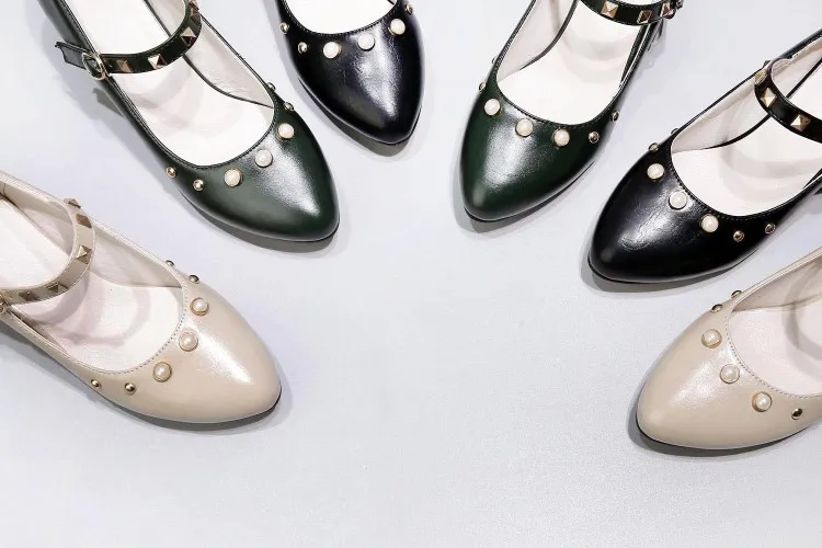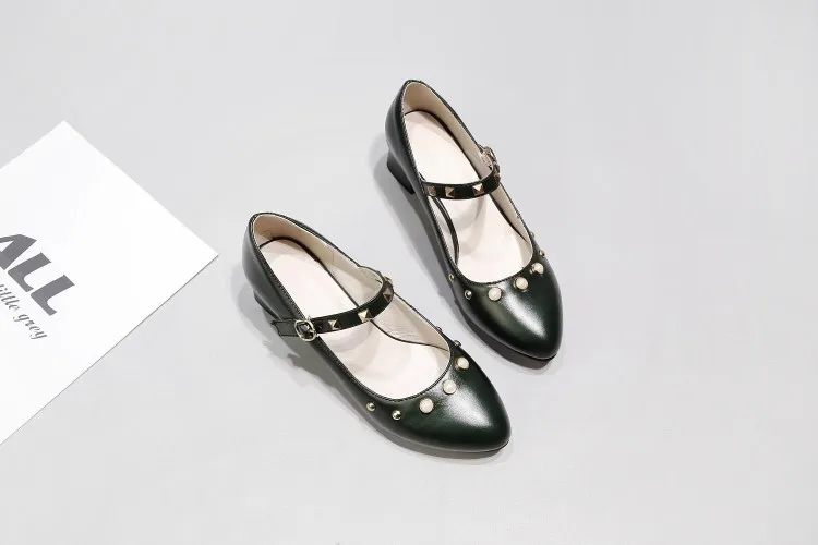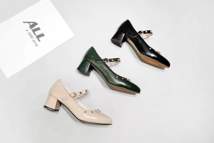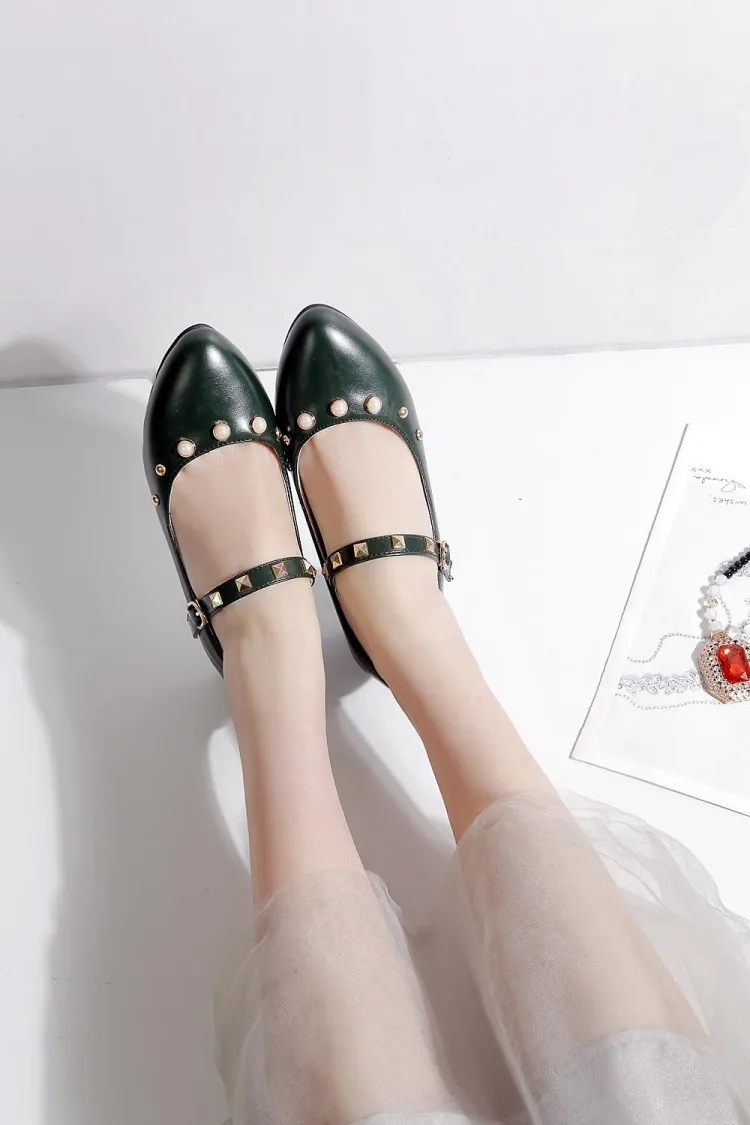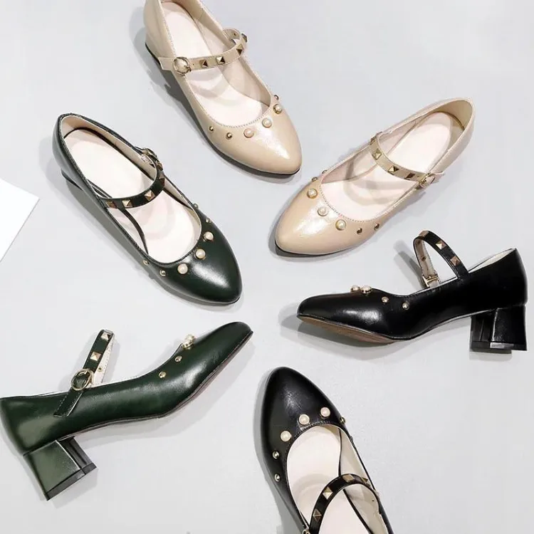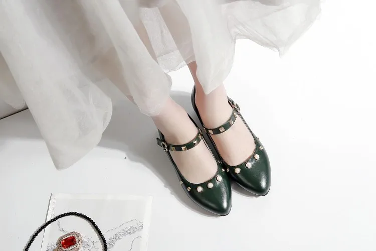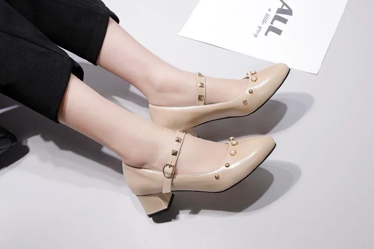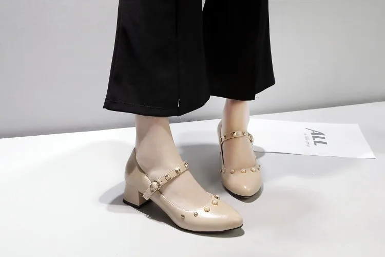 KYLETHOMASW - Big Size Shoes Woman Female Footwear Rivets Studs Large Size Summer Dress PU TPR Med Rome Hoof Heels Rivets Studs Big Size Shoes