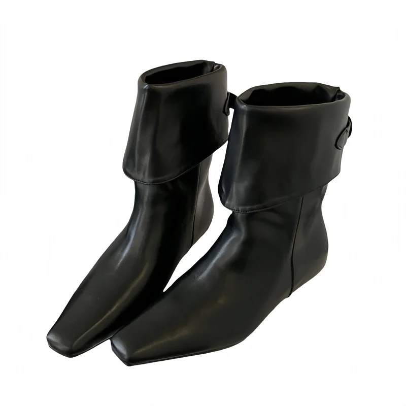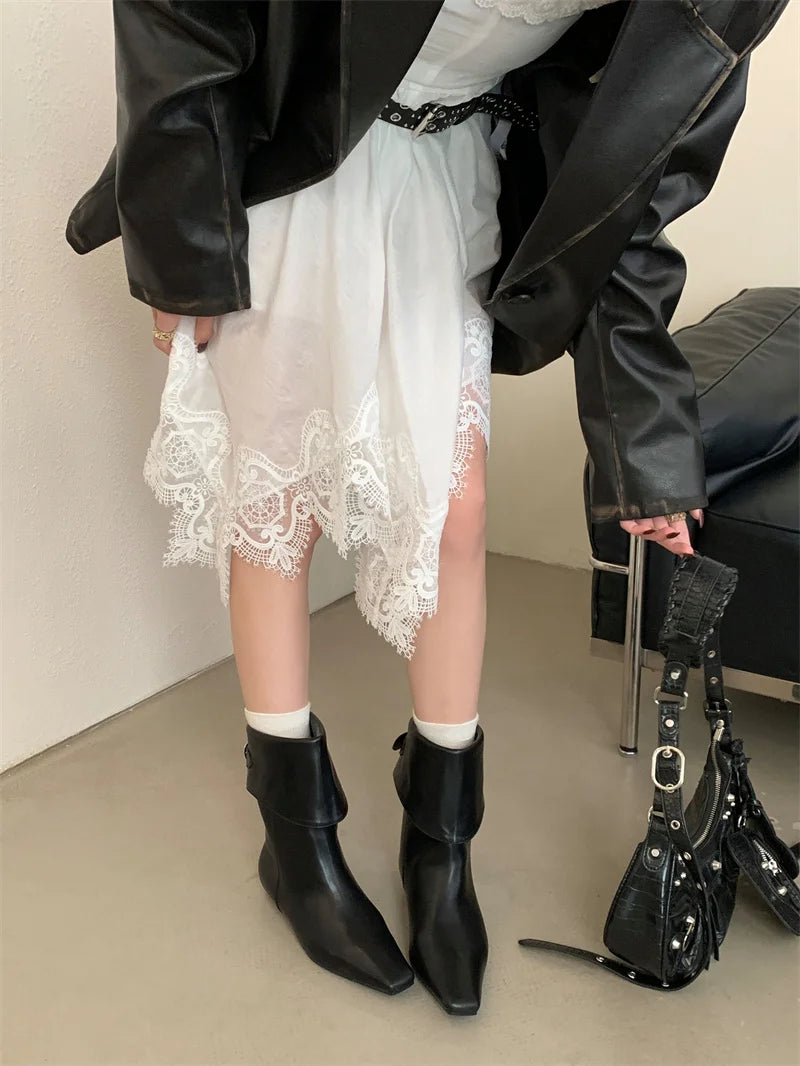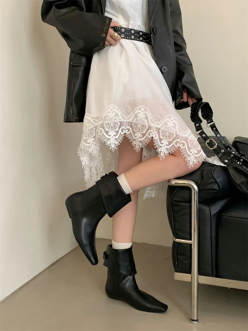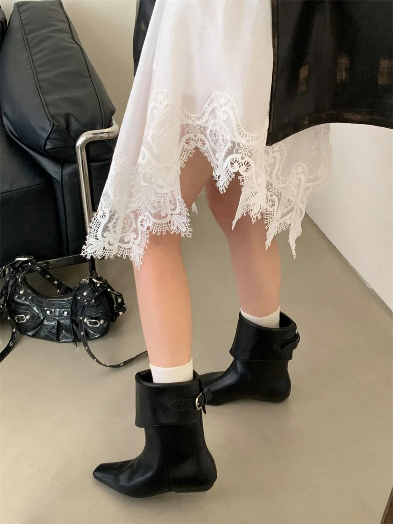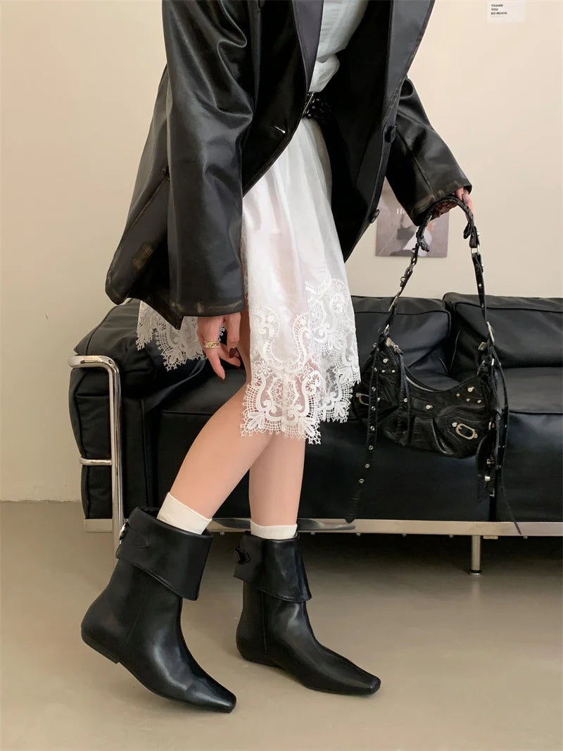 KYLETHOMASW - Black Boots Ladies Round Toe Chunky Heels Fall Shoes Belt Buckle Cowboy Boots For Woman 2025 New Arrivals Botas Vintage