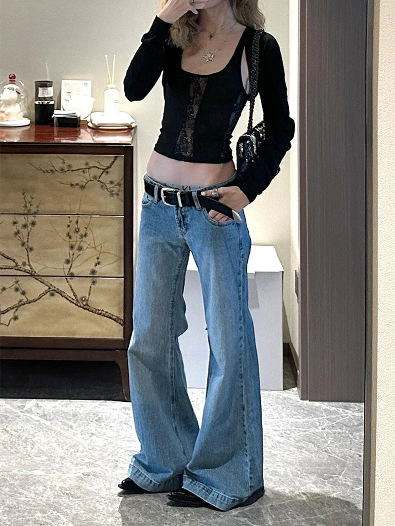 Kylethomasw - Blue Womens Jeans High Waist Vintage Straight Summer Plus Size Y2K Denim Pants Streetwear American Baggy Wide Leg Denim Trouser