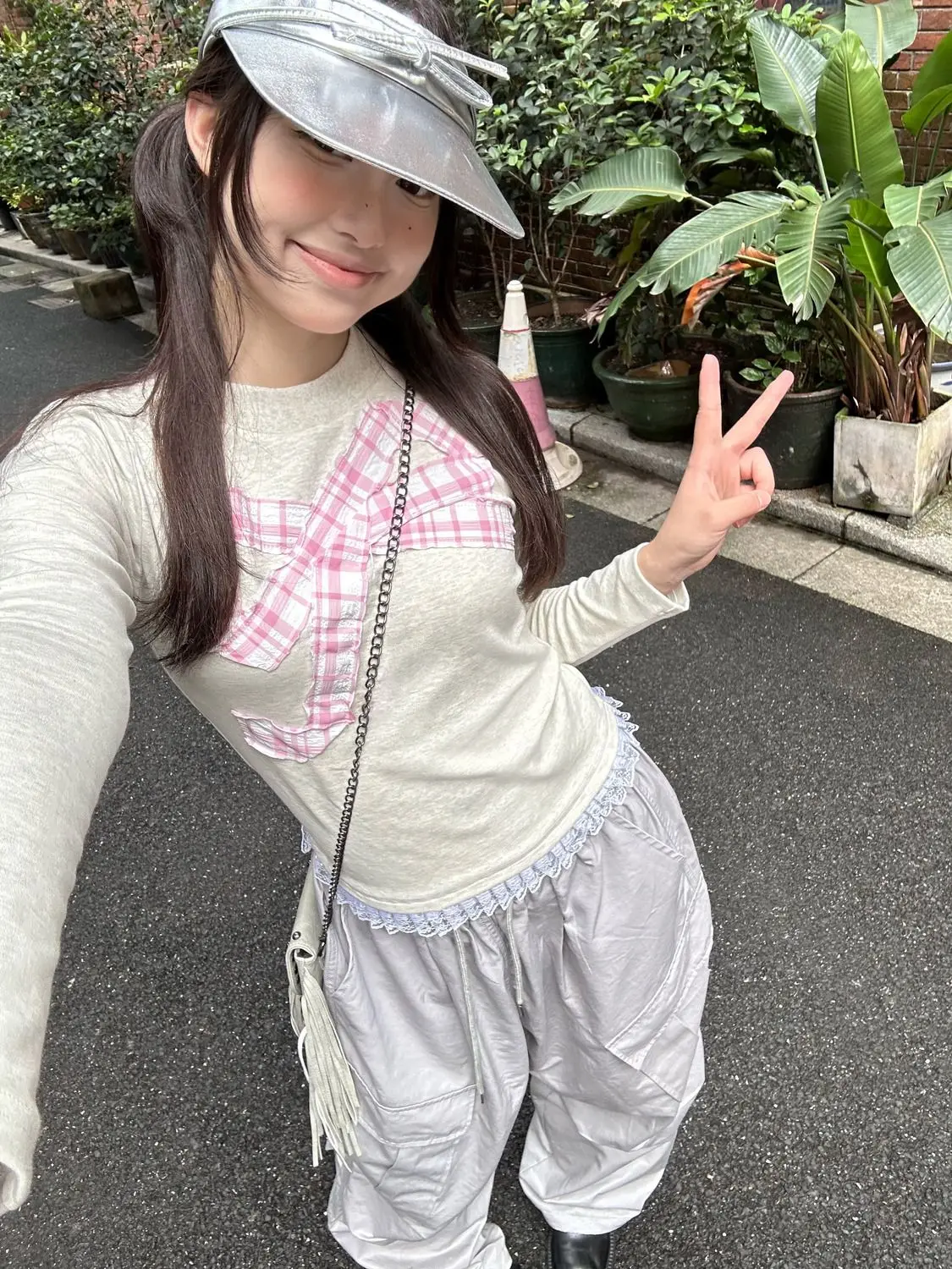 Kylethomasw Bow Patchwork T-shirts for Women Lace Grey Long Sleeve Tee Shirt Female Sweet Girl Slim Autumn Korean Fashion Crop Top
