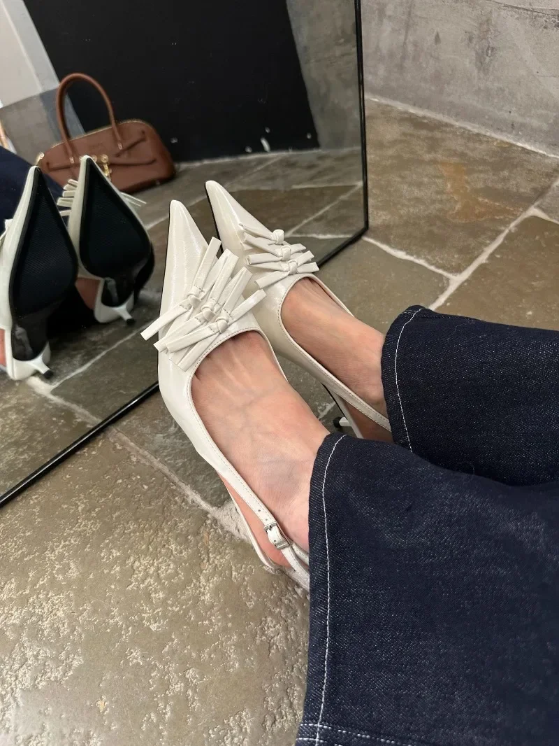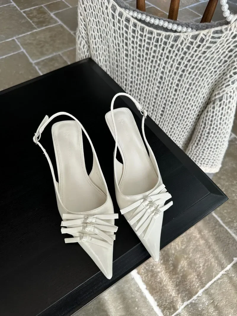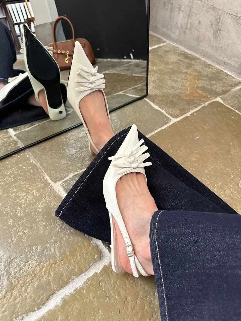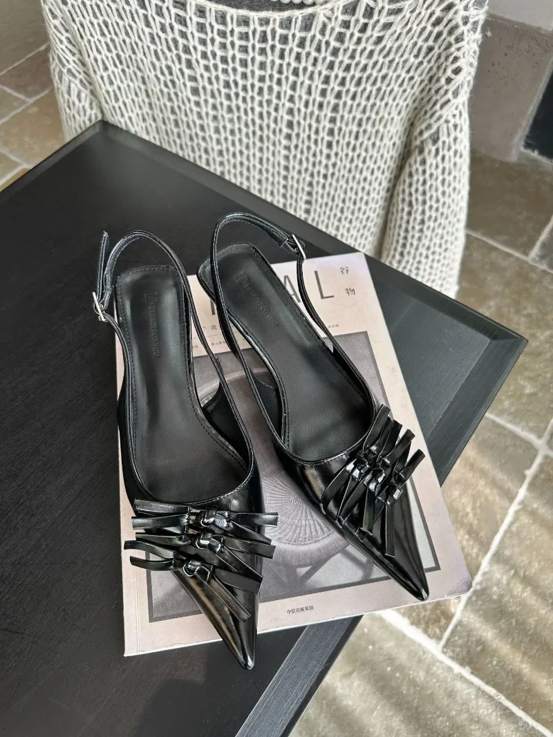 Kylethomasw Bowknot Designer Kitten Heel Sandals Women Summer 2025 Elegant High Heels Female Shallow Pointed Toe Pumps Dress Shoes Women