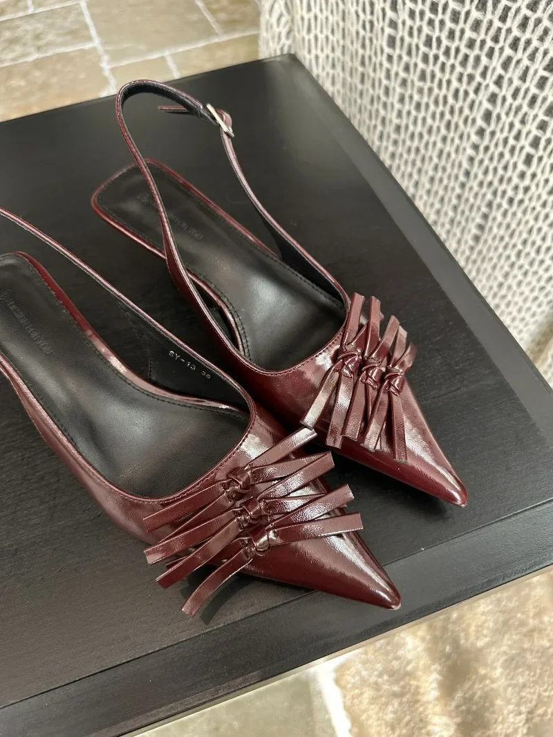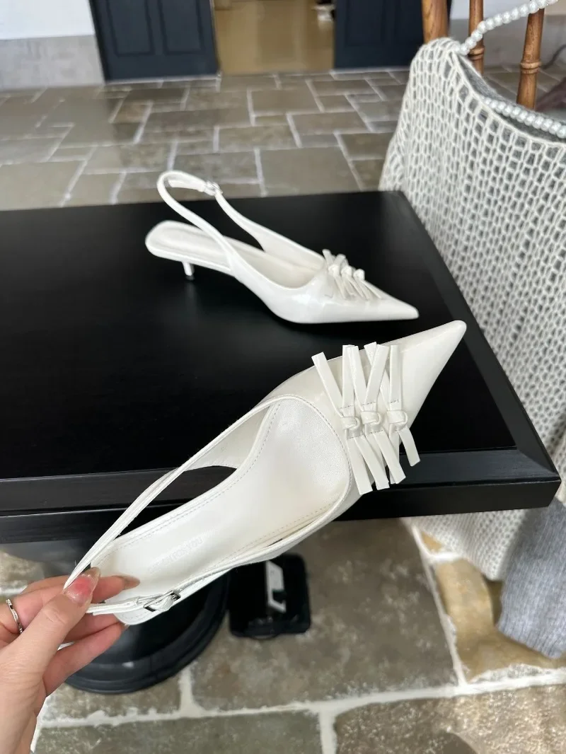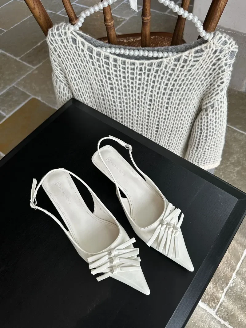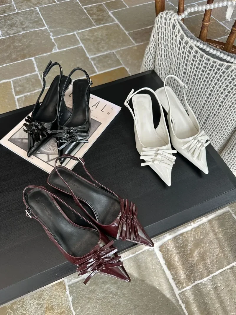 Kylethomasw Bowknot Designer Kitten Heel Sandals Women Summer 2025 Elegant High Heels Female Shallow Pointed Toe Pumps Dress Shoes Women