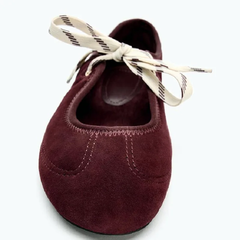 KYLETHOMASW - Brand Faux Suede Lace Up Ballet Flats Women Comfort Round Toe Mary Jane Shoes for Ladies Fashion Designer Soft Sole Casual Shoes