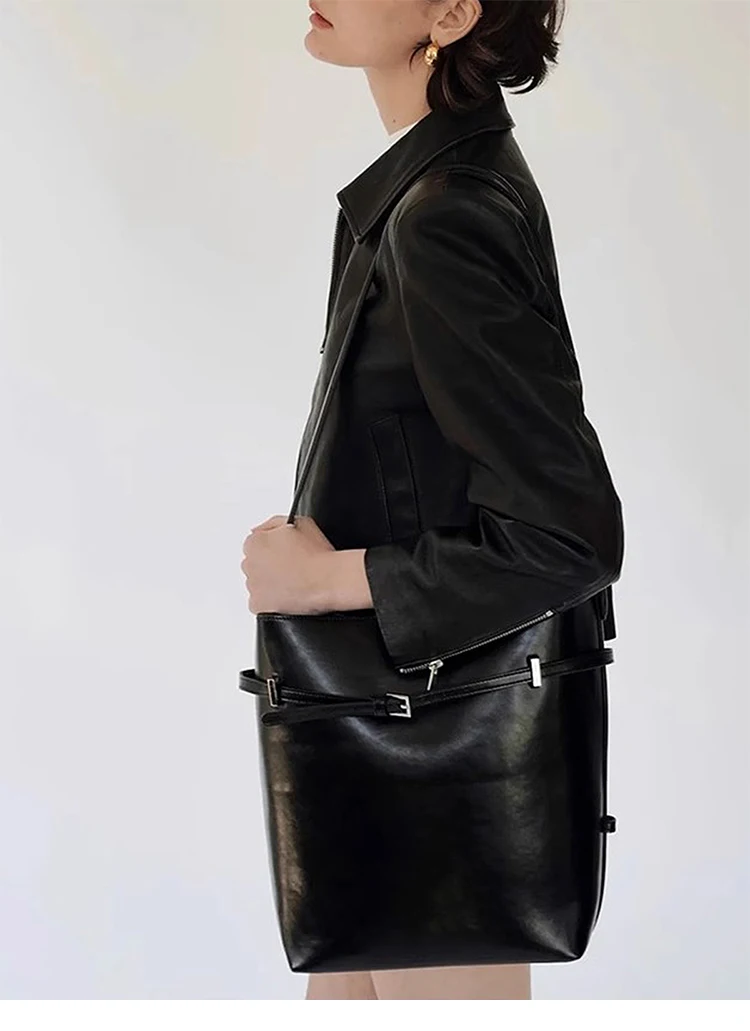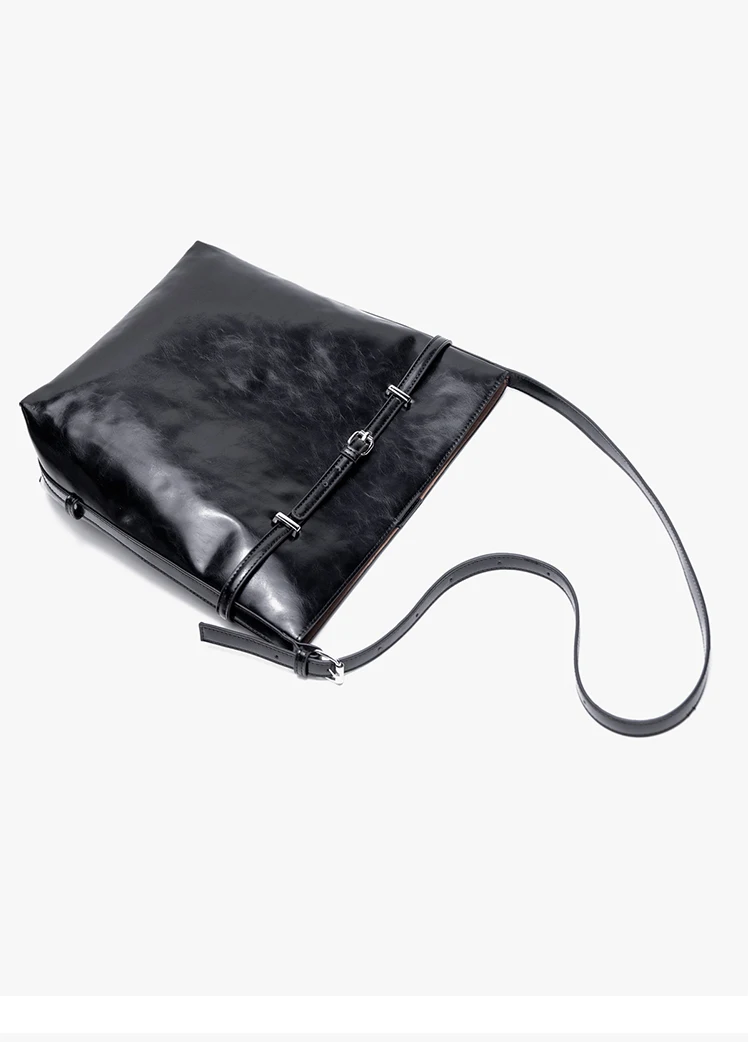 KYLETHOMASW - casual casual black large-capacity bucket bag ins oil wax leather shoulder bag versatile commuter bag