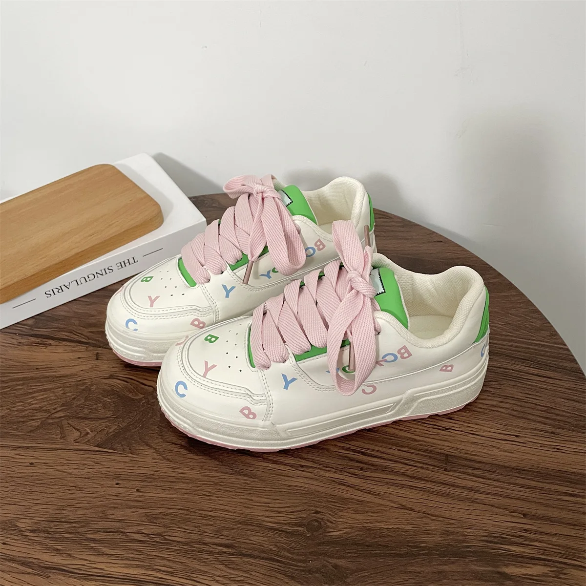 KYLETHOMASW - Casual Low-Top Student Sport Sneakers Fashionable All-Match New Arrival Letters Graffiti Thick Bottom Women Shoes Tenis De Mujer