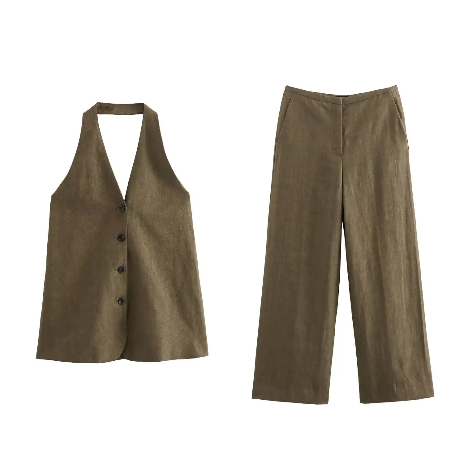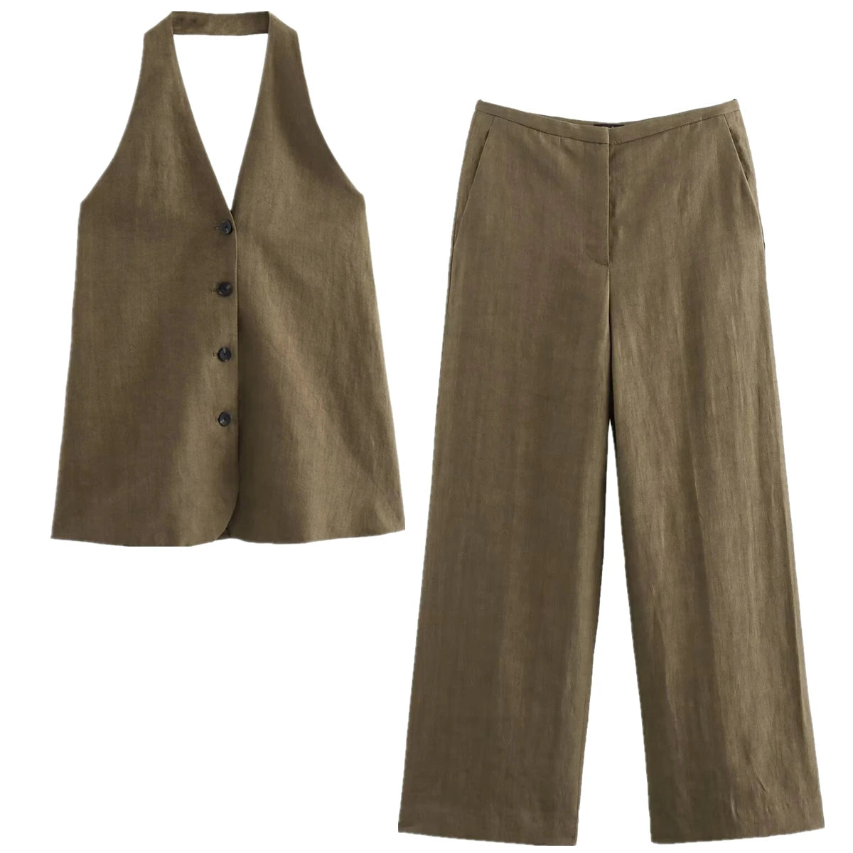 KYLETHOMASW - Color Single Breasted Vest Minimalist Casual Pants Retro Linen Texture Coffee Two Pieces Set Women Straight Leg