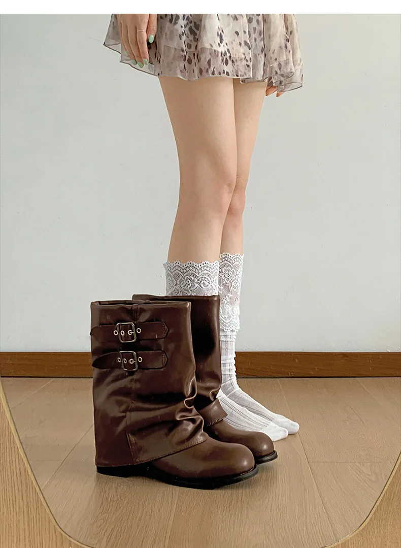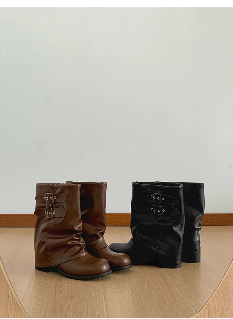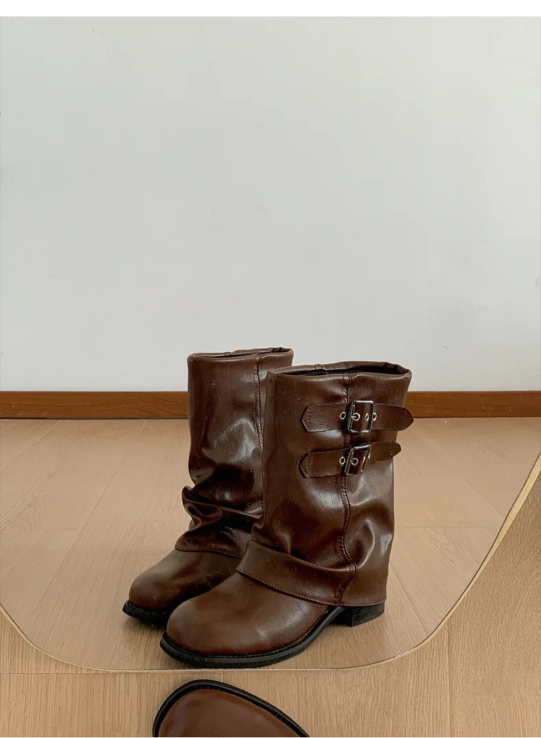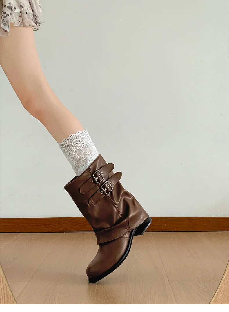 KYLETHOMASW - Cowgirl Boots 2025 Autumn Vintage Western Thick Heels Women Boots Fashion Belt Buckle Slip On Mordern Short Boots Mujer