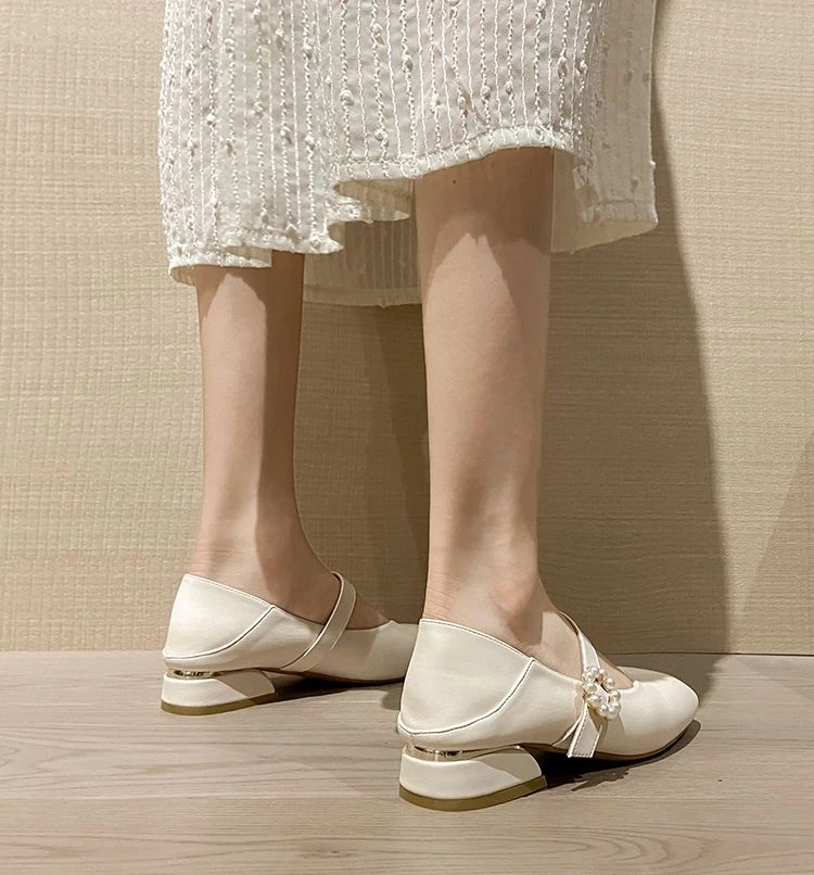 Kylethomasw Cute Kawaii Mary Jane Shoes for Women 2024 White Ladies Summer Footwear Gothic Square Heels Low Heel Elegant Popular E Young 39