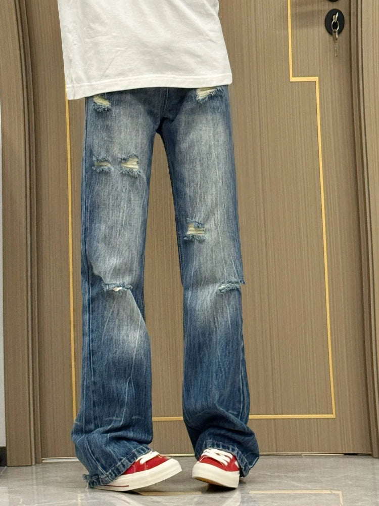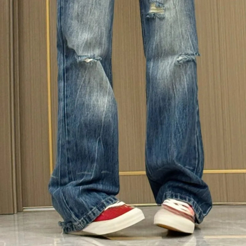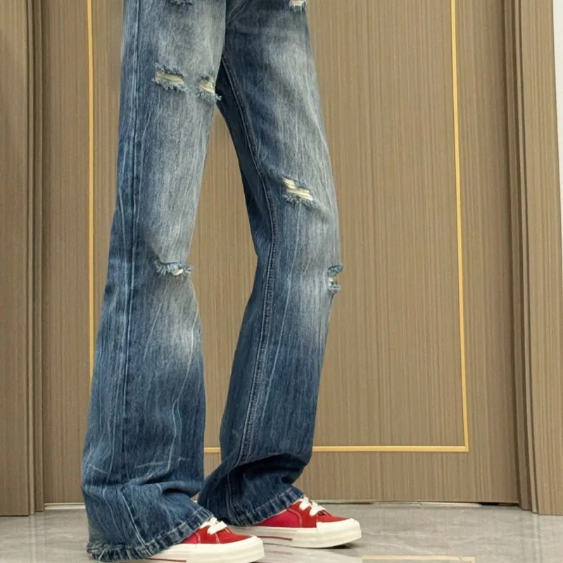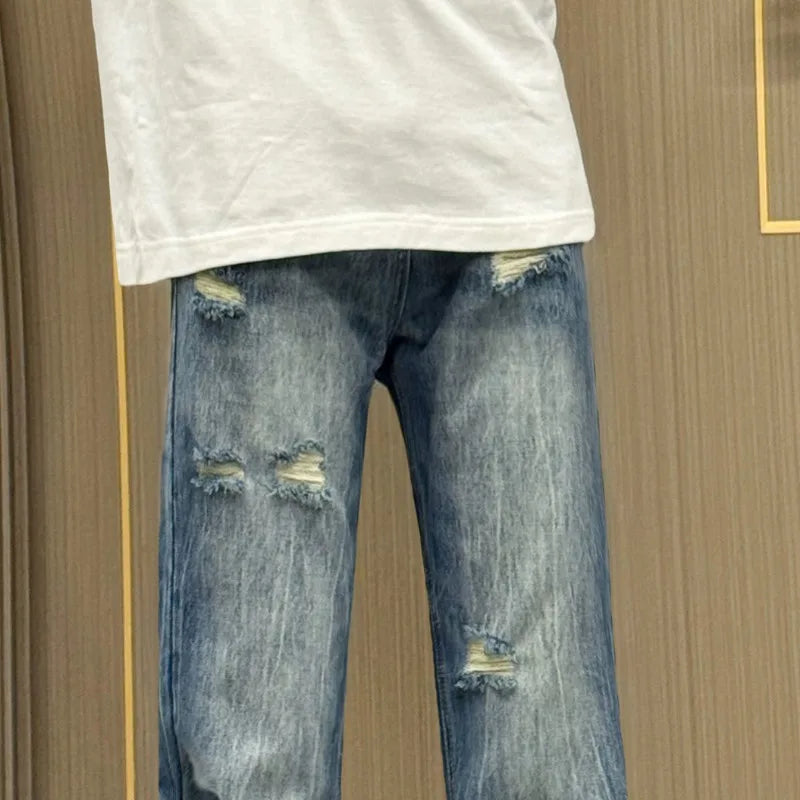KYLETHOMASW - Denim Pants Women Streetwear Blue Holes Spring Autumn Y2k Pantalones De Mujer Korean Fashion Vintage Trousers