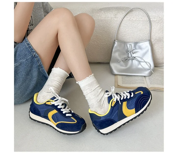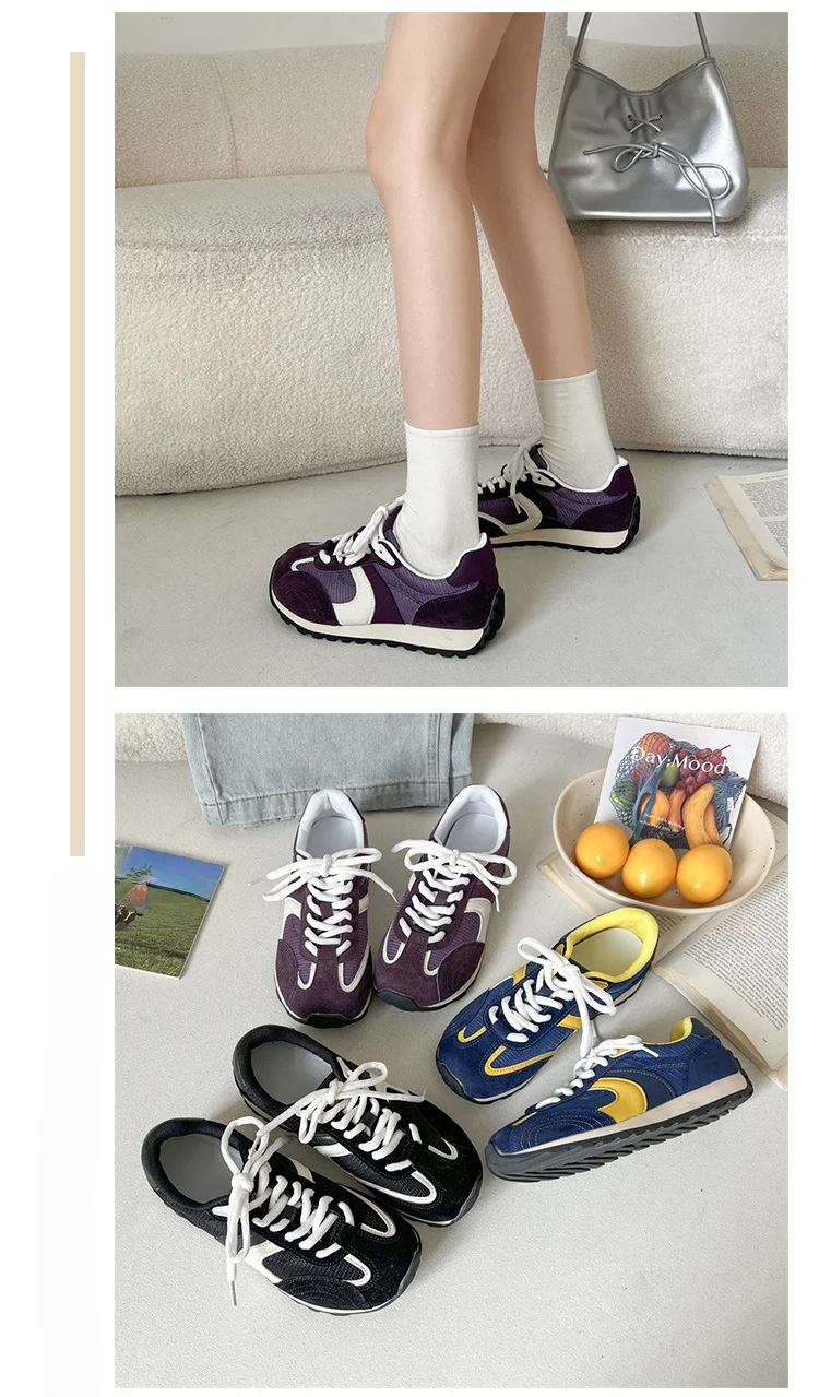 KYLETHOMASW - Designer Forest System Round Toe Sneakers Women 2025 Trendy Mix Color Flat Shoes New Retro Sports Shoes Casual Soft Sneakers