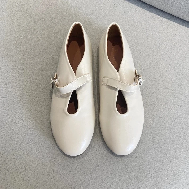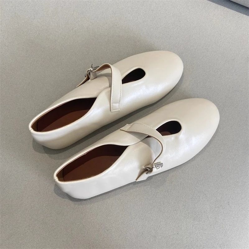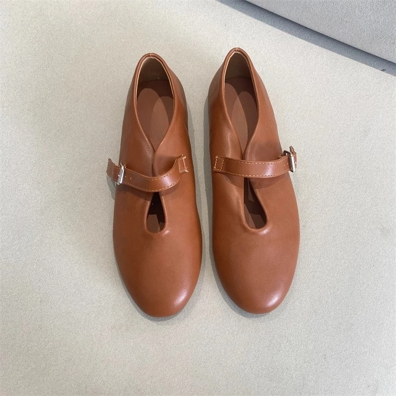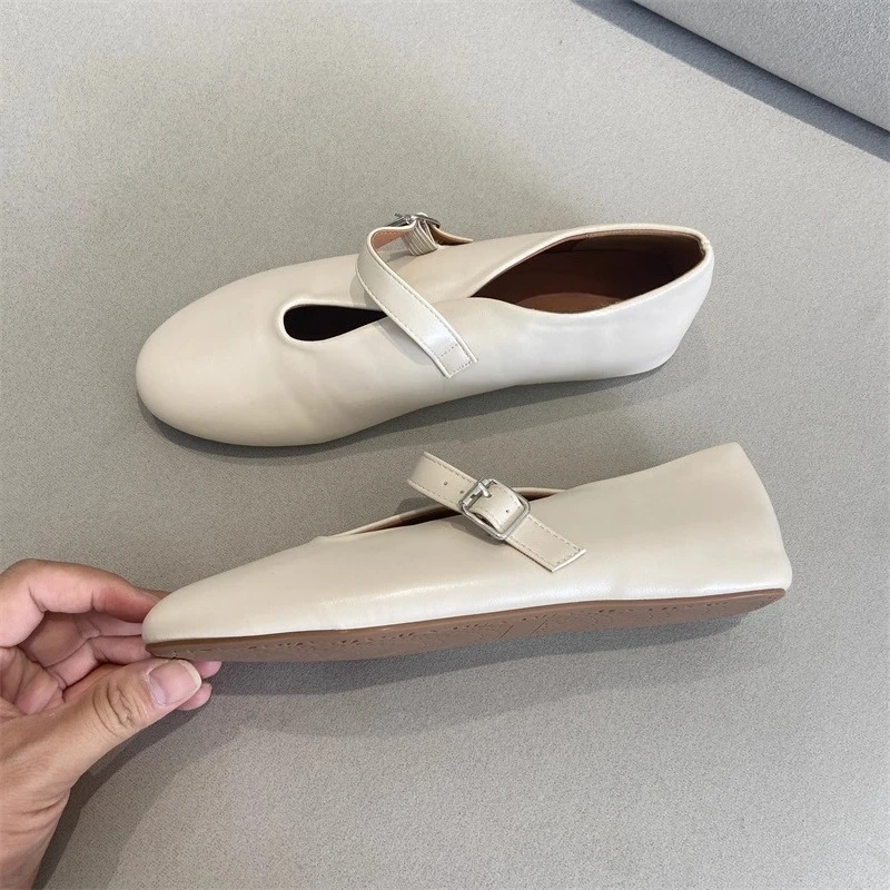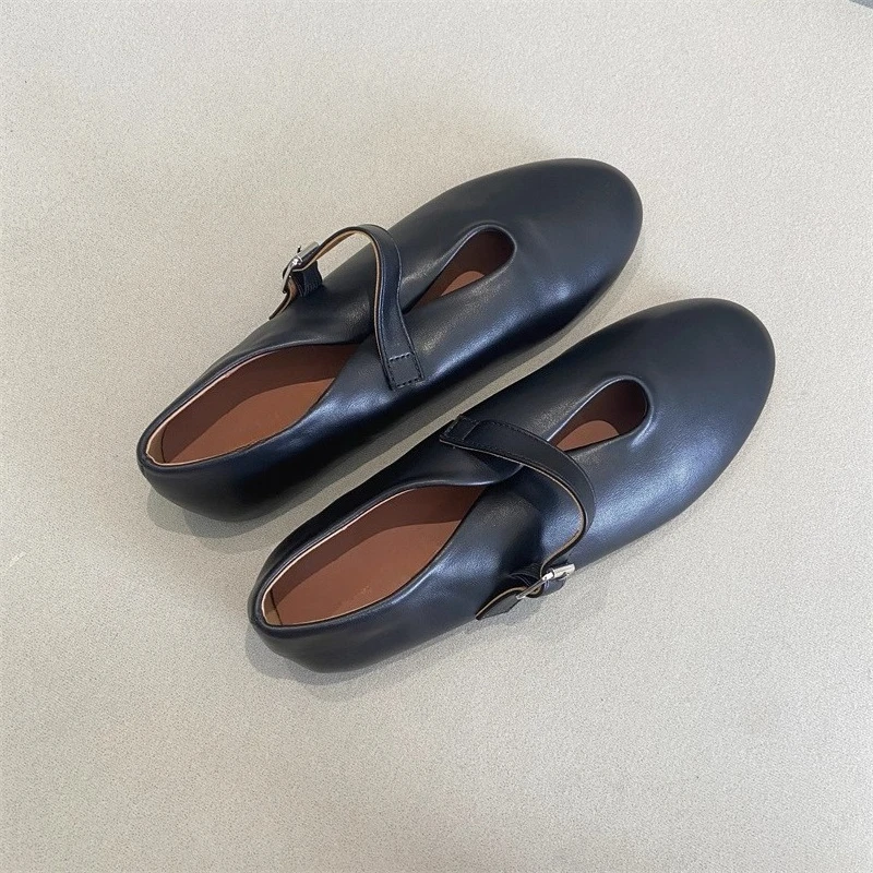 KYLETHOMASW - Elegant Ballet Flats Shoes for Women Soft PU Leather Mary Janes Shoes Ladies Spring Autumn Casual Streetwear Comfortable Loafers