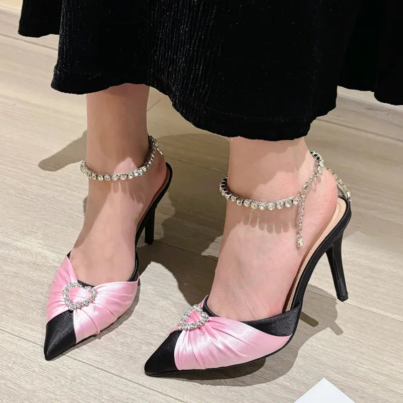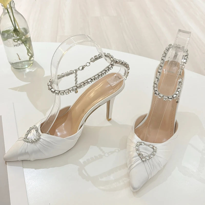 KYLETHOMASW - Elegant Crystal Buckle Strap Pointed Toe Women Pumps Sexy Prom Thin Heels Sandals Mule Ladies Party Shoes